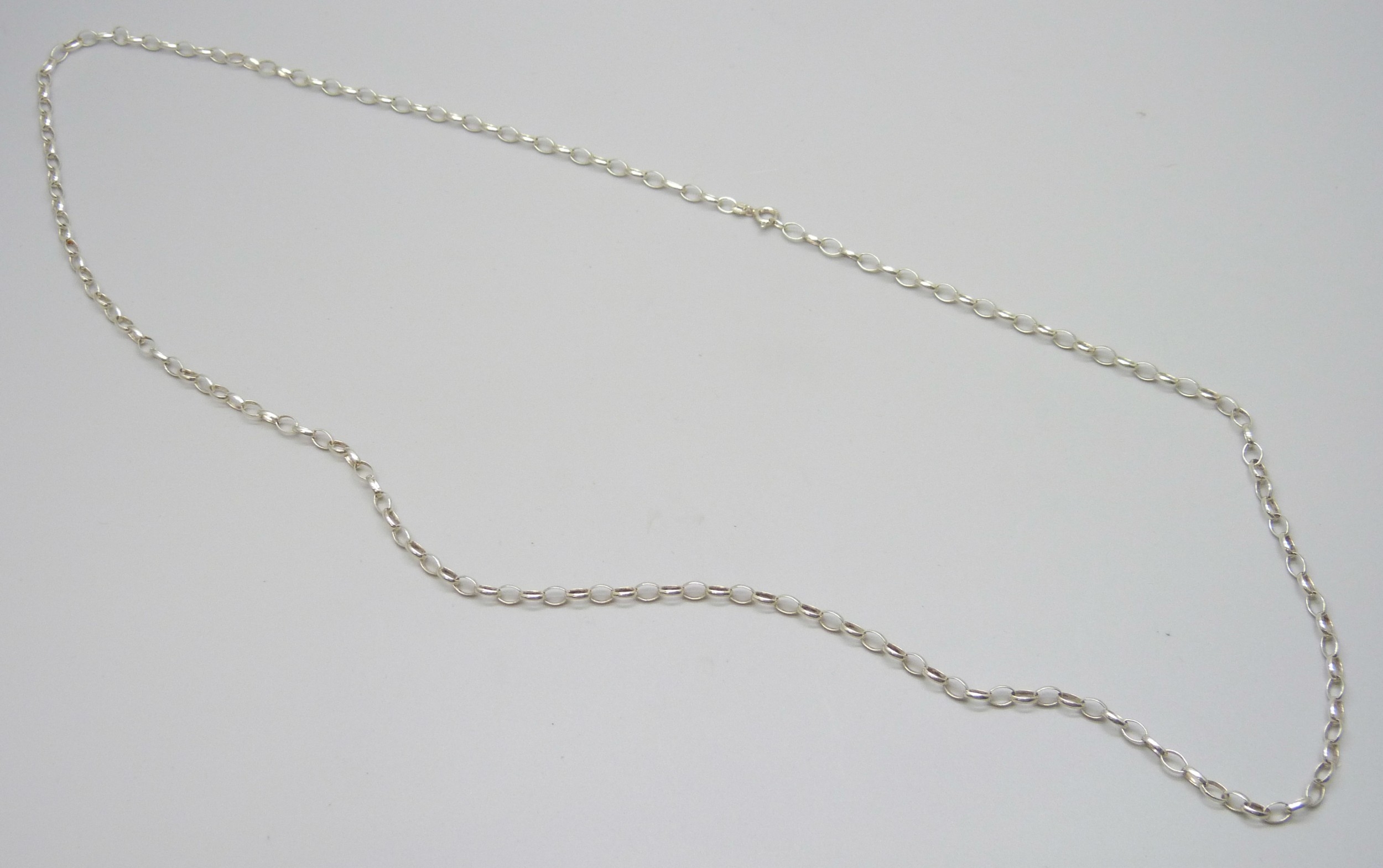 A long silver belcher chain necklace, 9g, 75cm