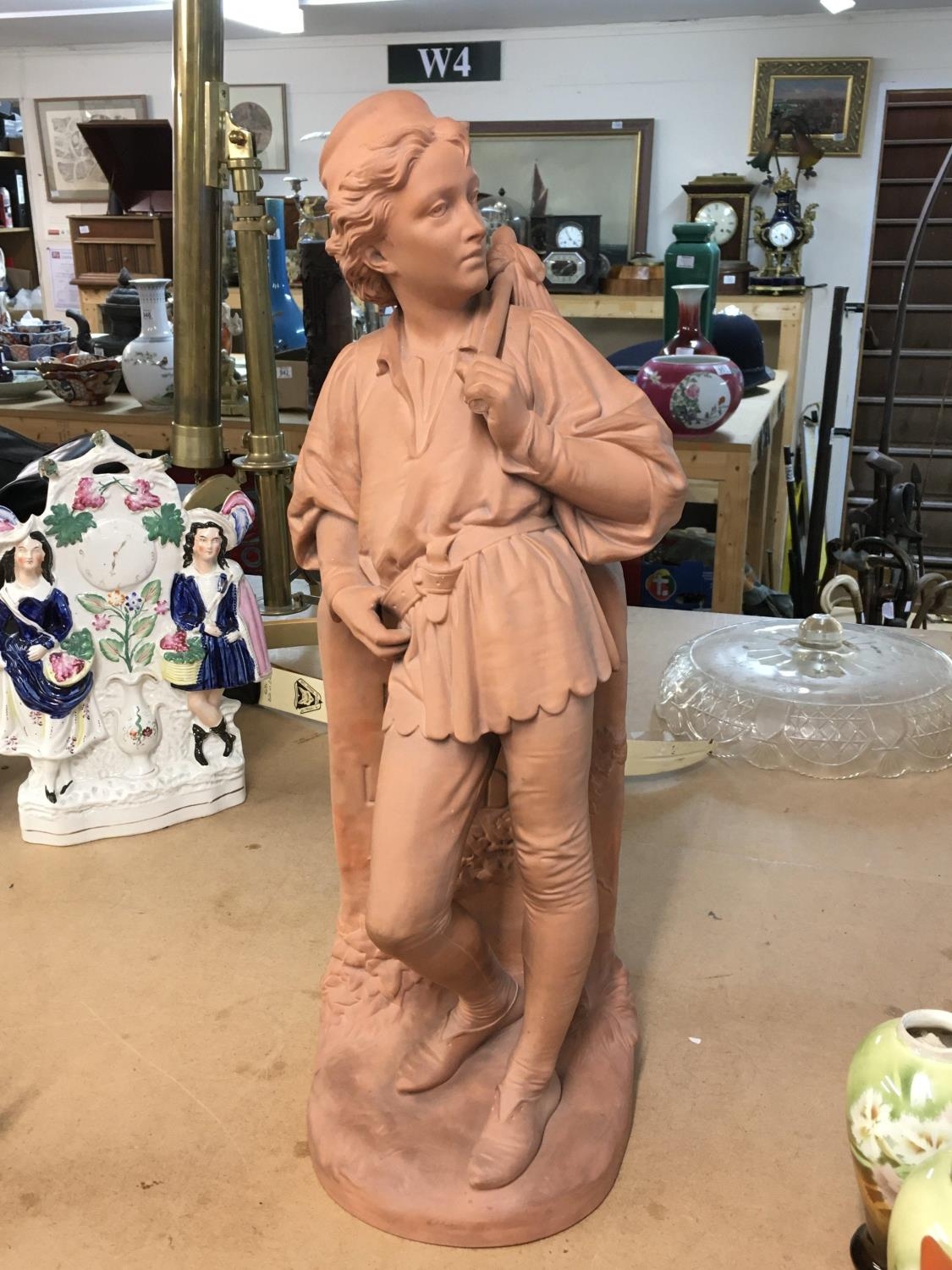 A terracotta figurine stamped art Union of London. 53cm tall.