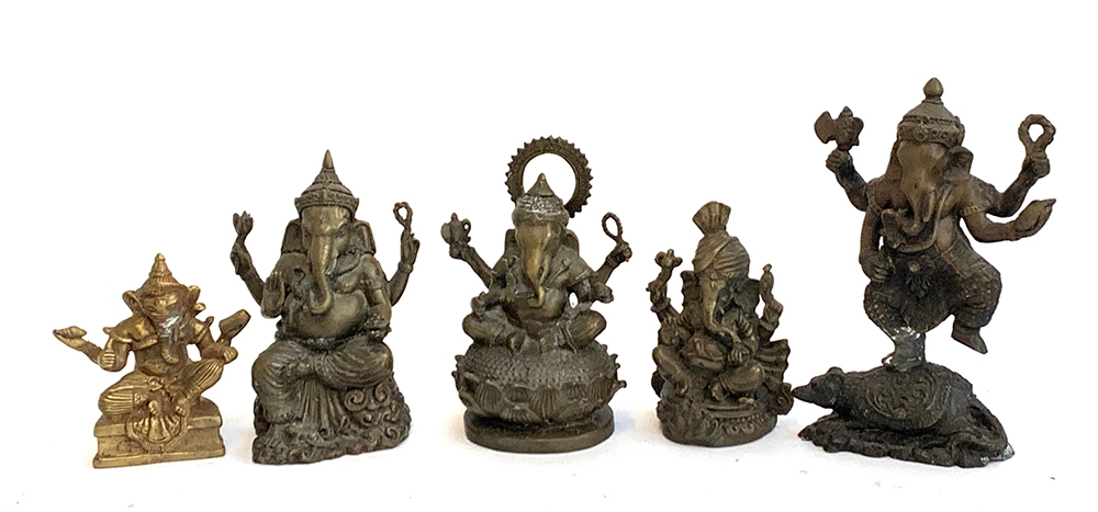 Five cast metal figures of Ganesha, the tallest 18cmH