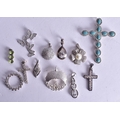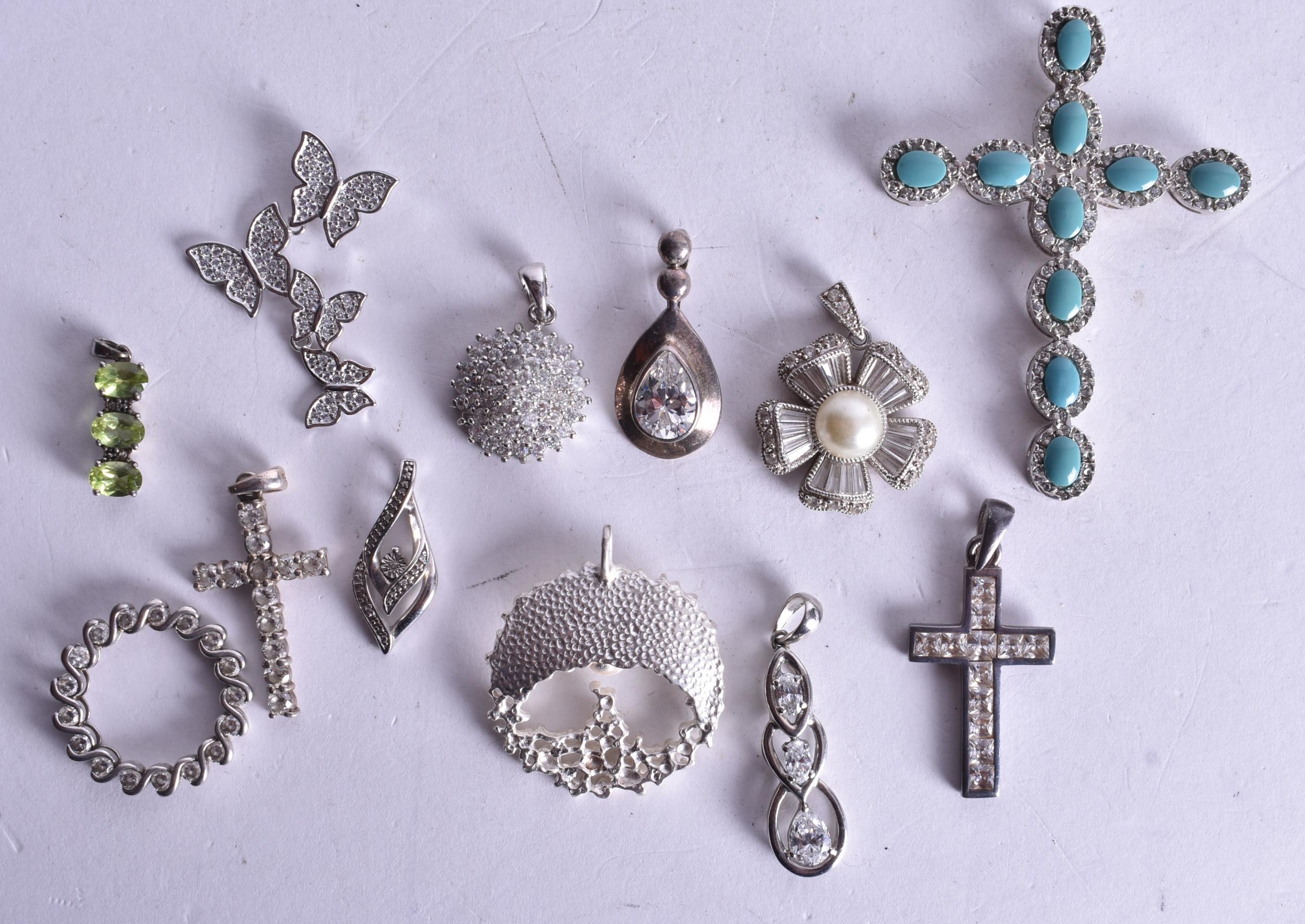 Collection of Sterling Silver Pendants inc. Stone Set, Cross x 12 (44g).