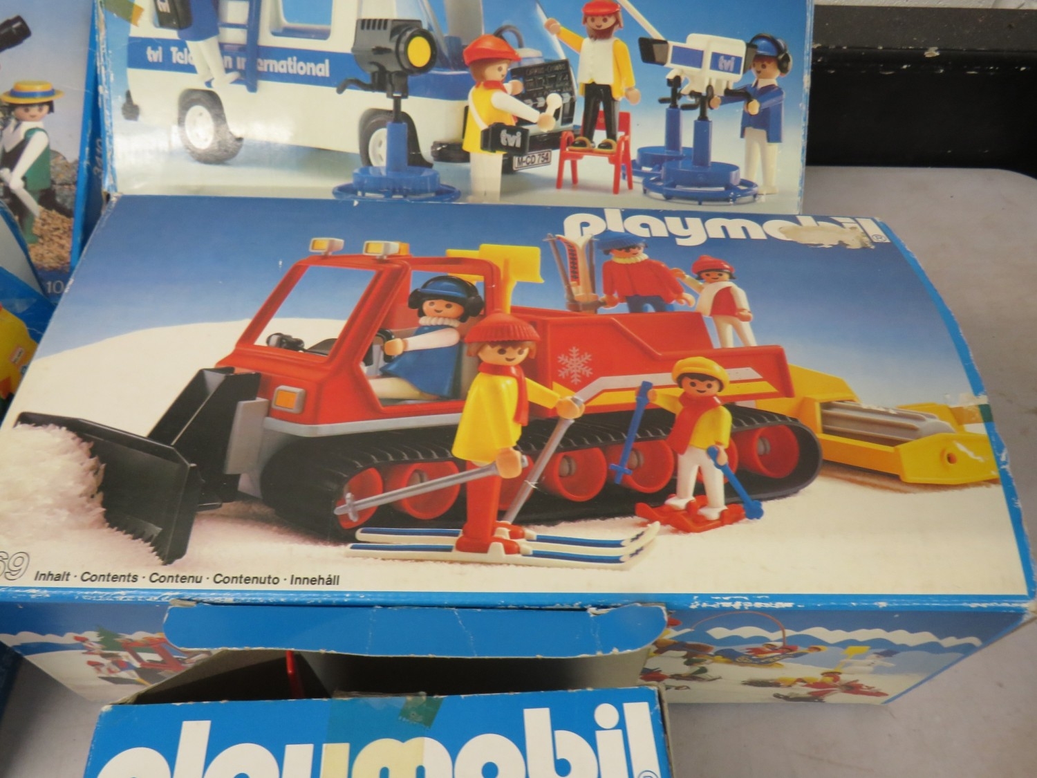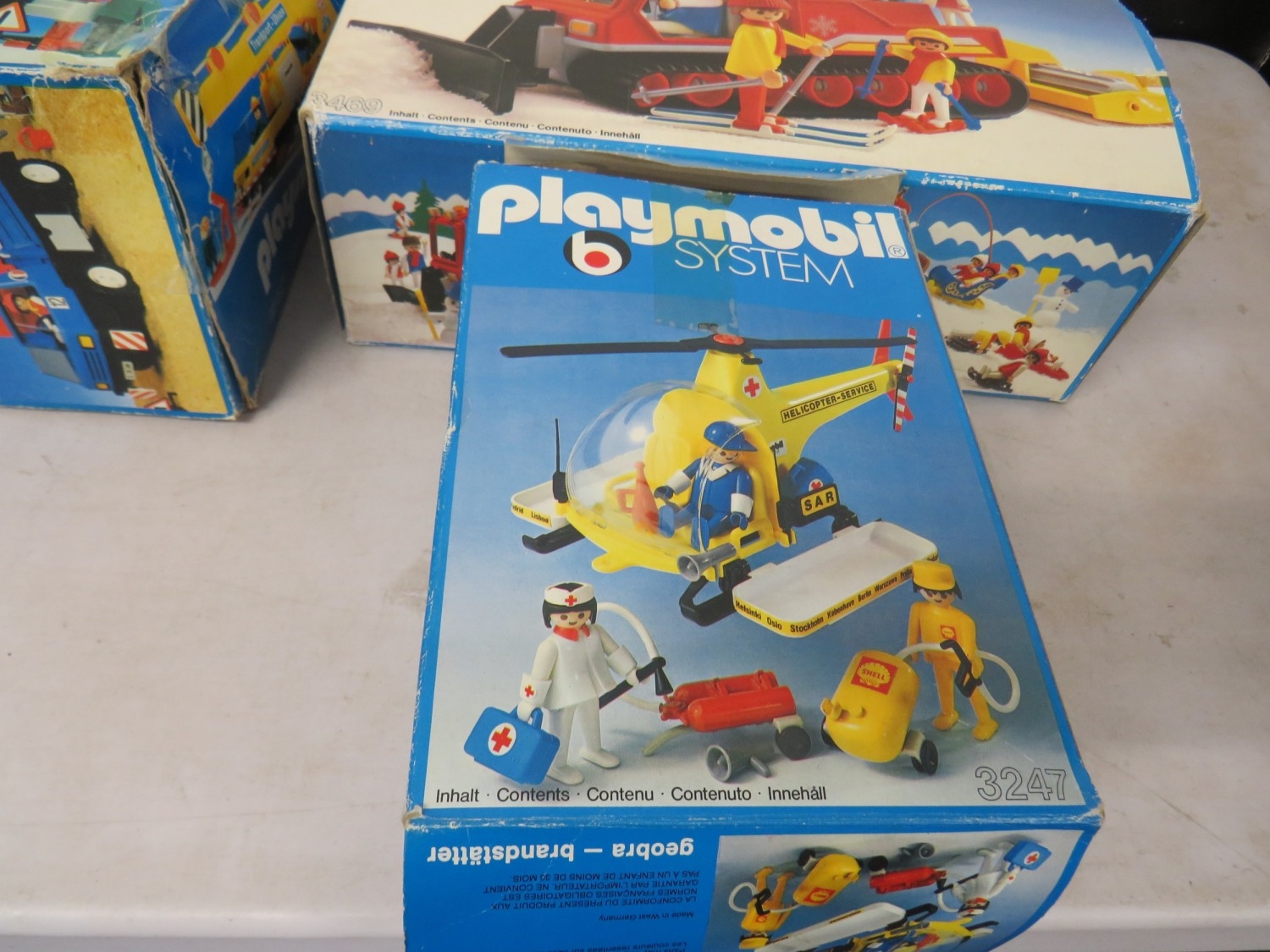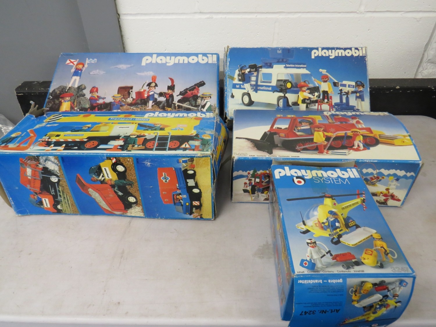 Five boxed Playmobil toy sets