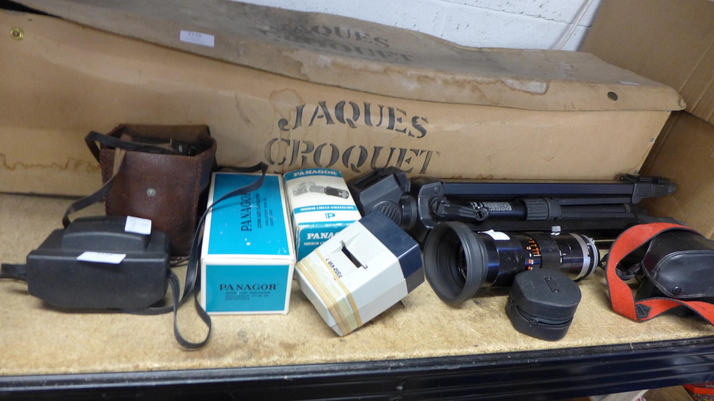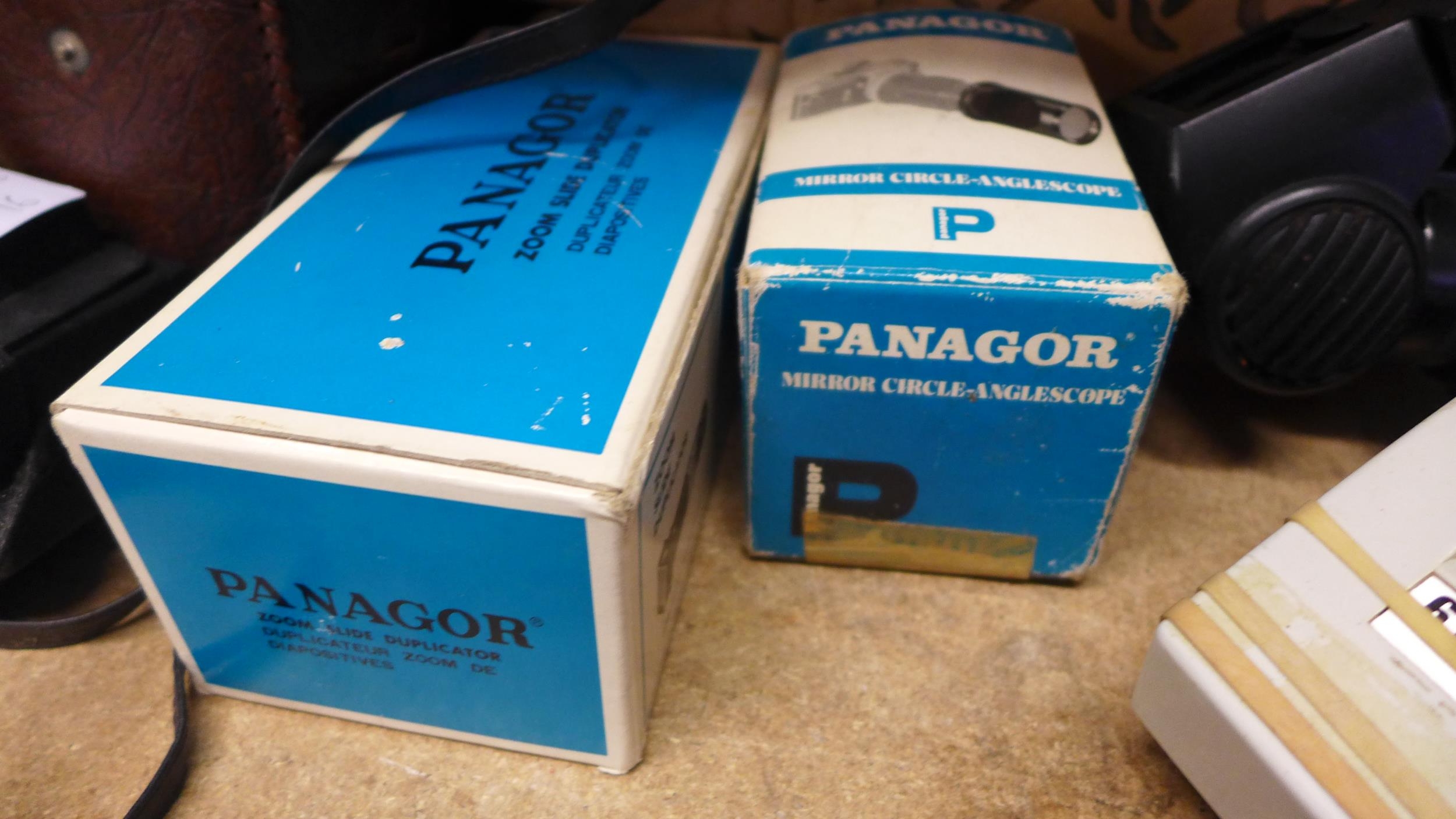 Cased, Brilliant 120 vintage camera with Compur lens, vintage cased Kodak land camera sold with scarce Panagor Circle 90° anglescope (periscope or round-corner viewing/photography) & boxed Panagor slide duplicator & slide viewer