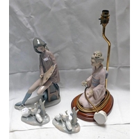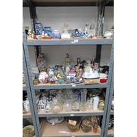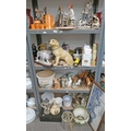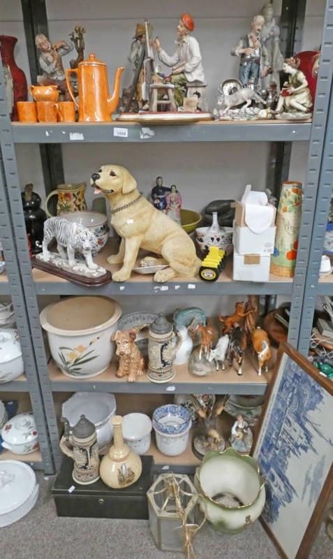 SET OF 4 SHELVES OF 4 LARGE CAPODIMONTE FIGURES, LABRADOR DOG, STAFFORDSHIRE POTTERY FIGURES, BESWICK HORSES, ETC