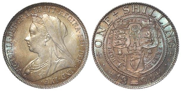 Shilling 1894 choice iridescent UNC