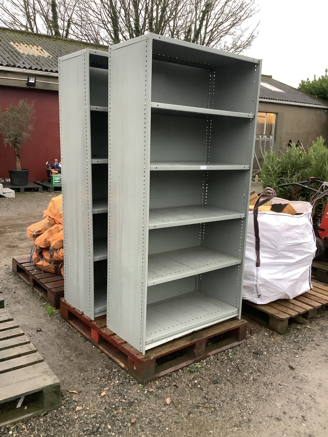 Two metallic shelf units