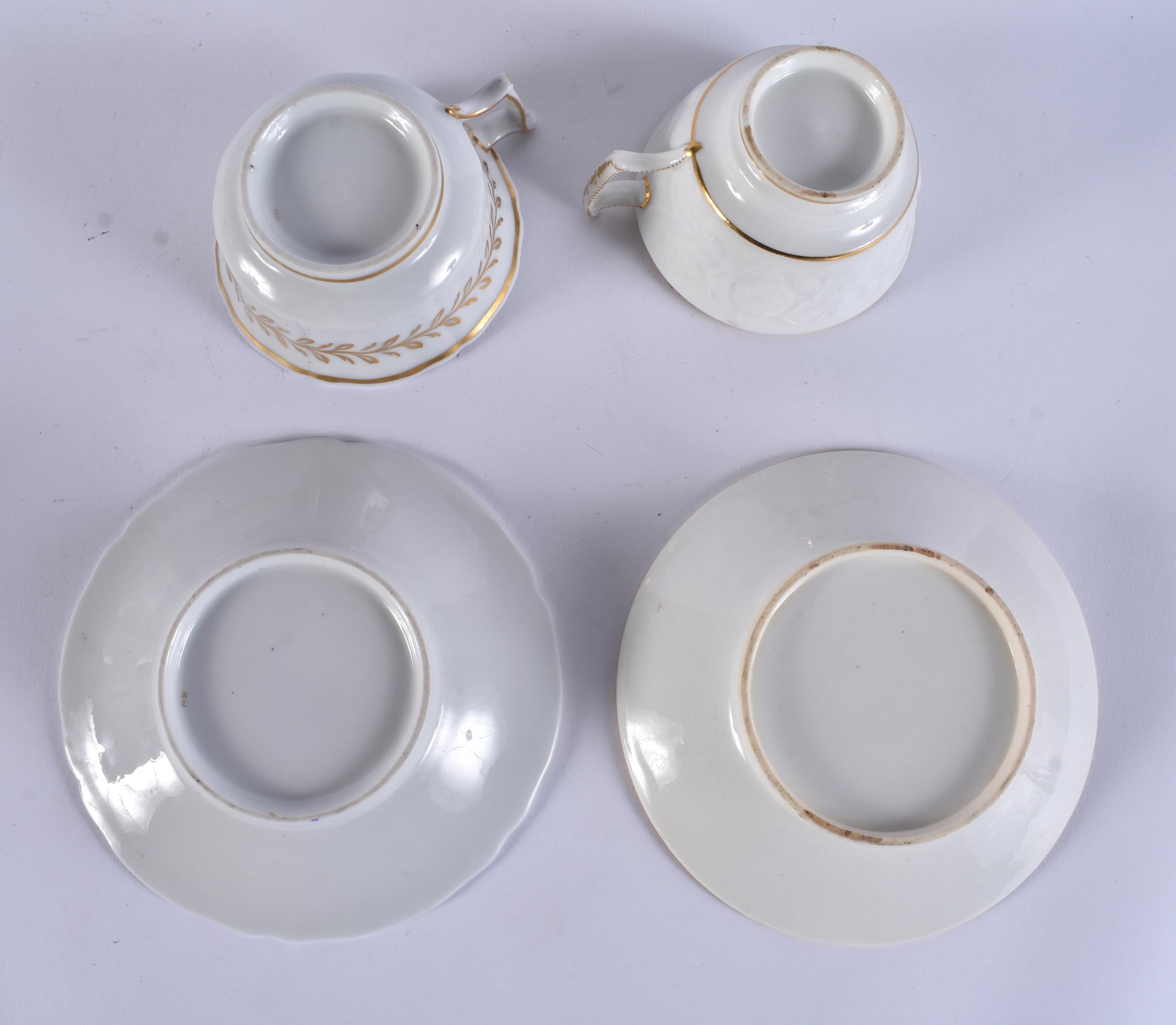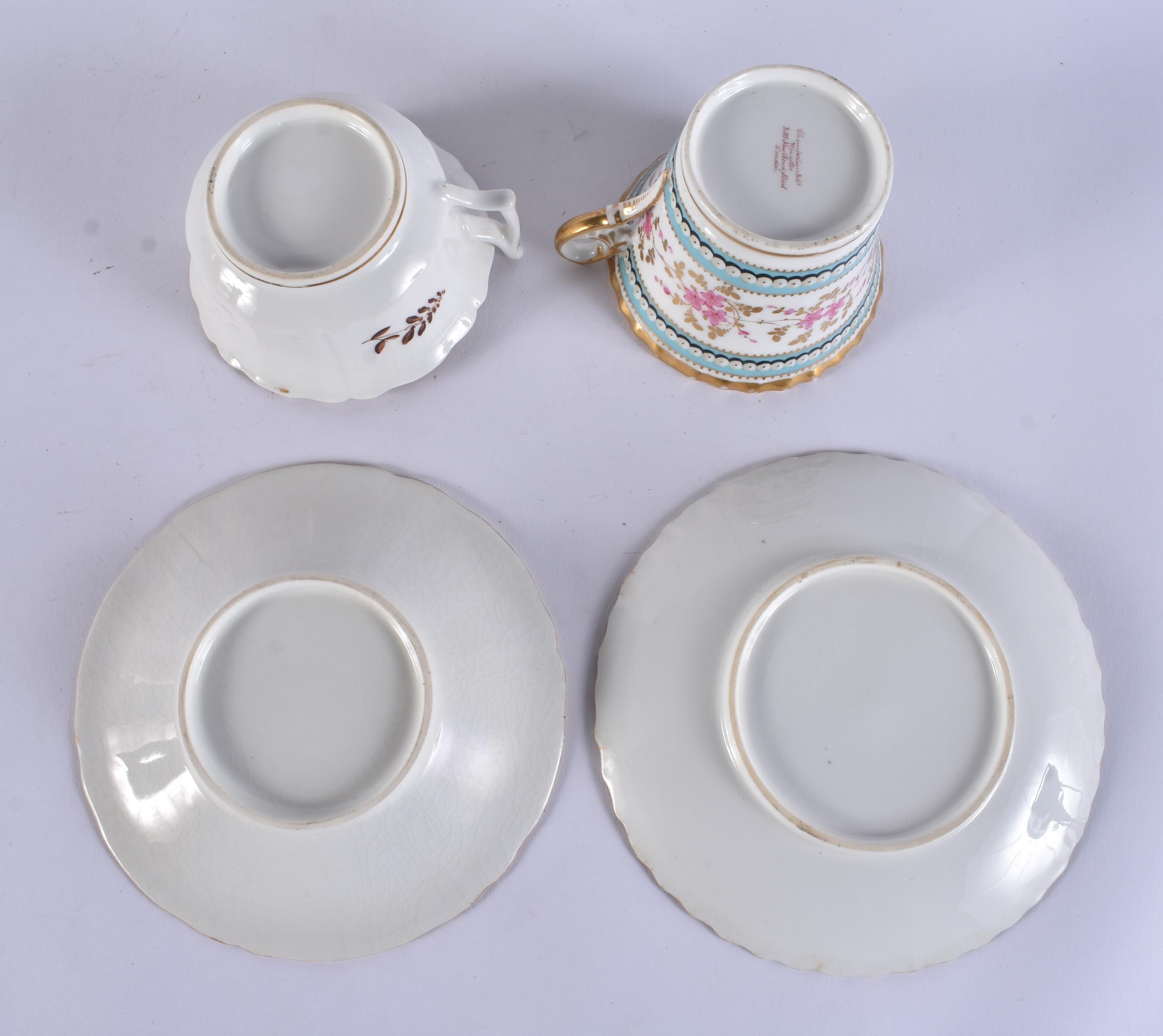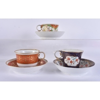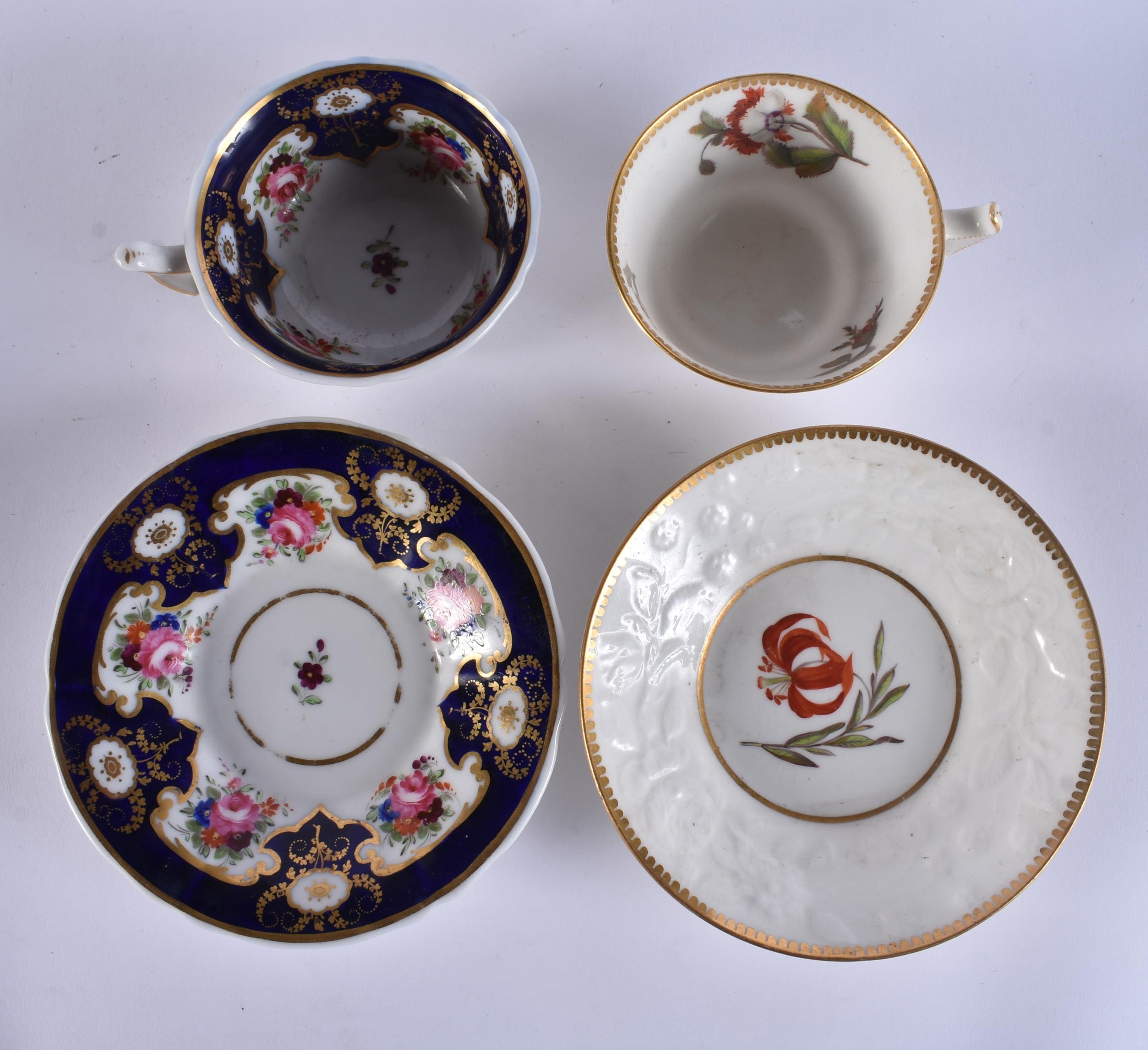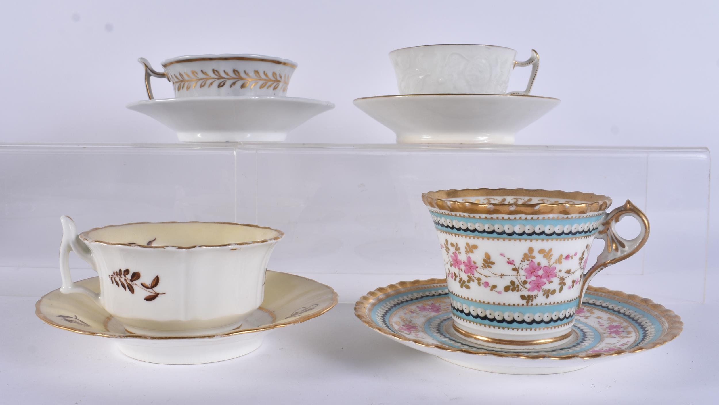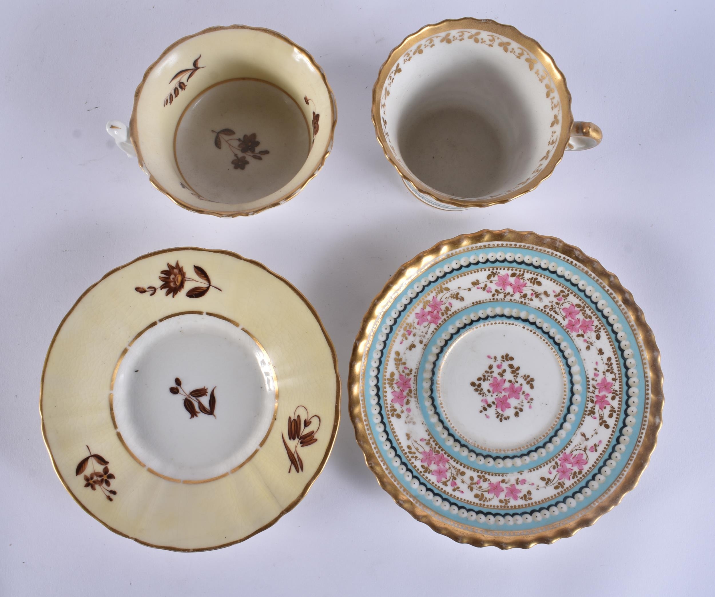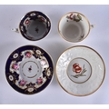 FOUR EARLY 19TH CENTURY CHAMBERLAINS WORCESTER FLORAL CUPS AND SAUCERS. (8)