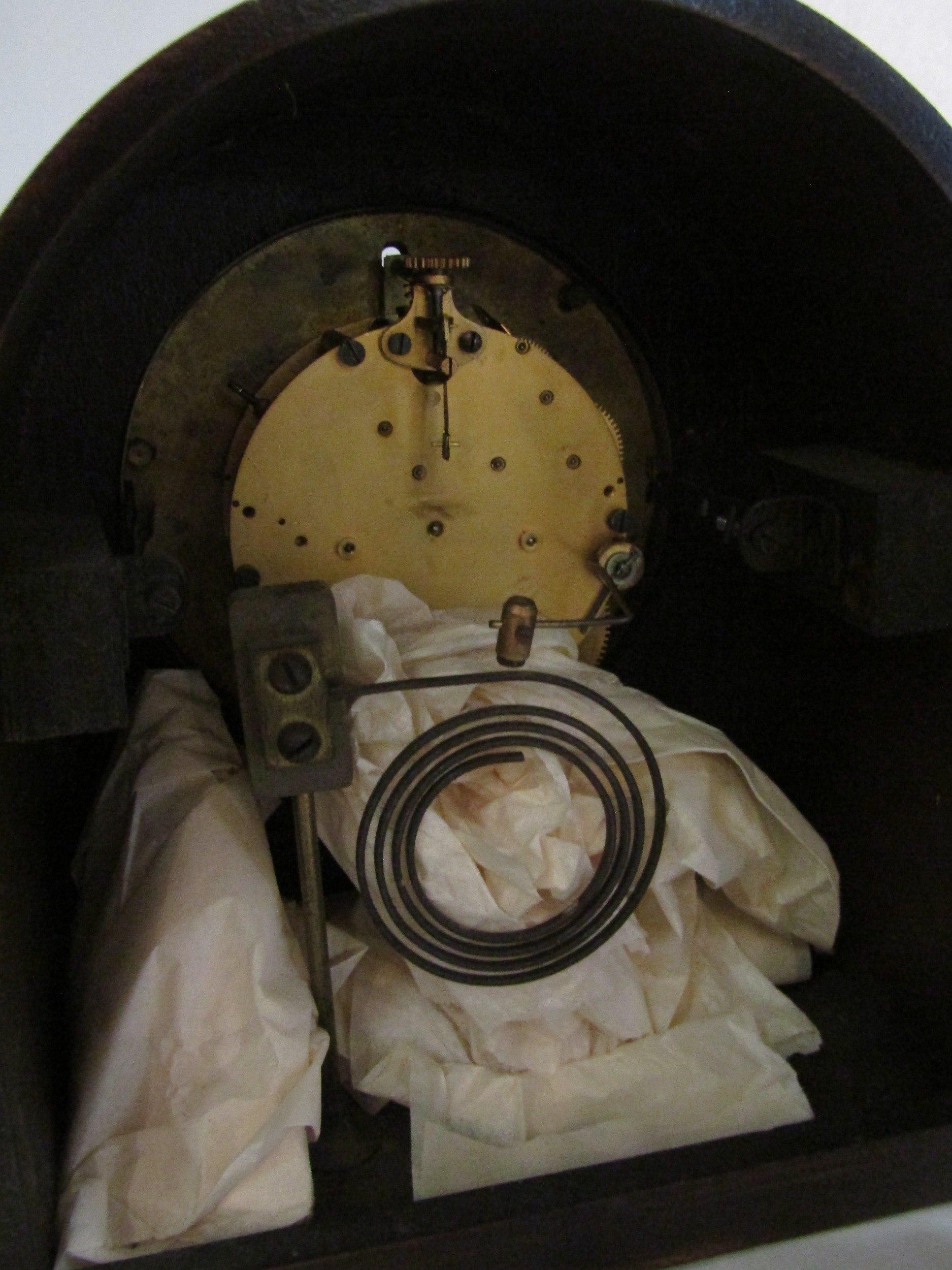 A Napoleon hat clock by Seth Thomas U.S.A. with white Arabic dial