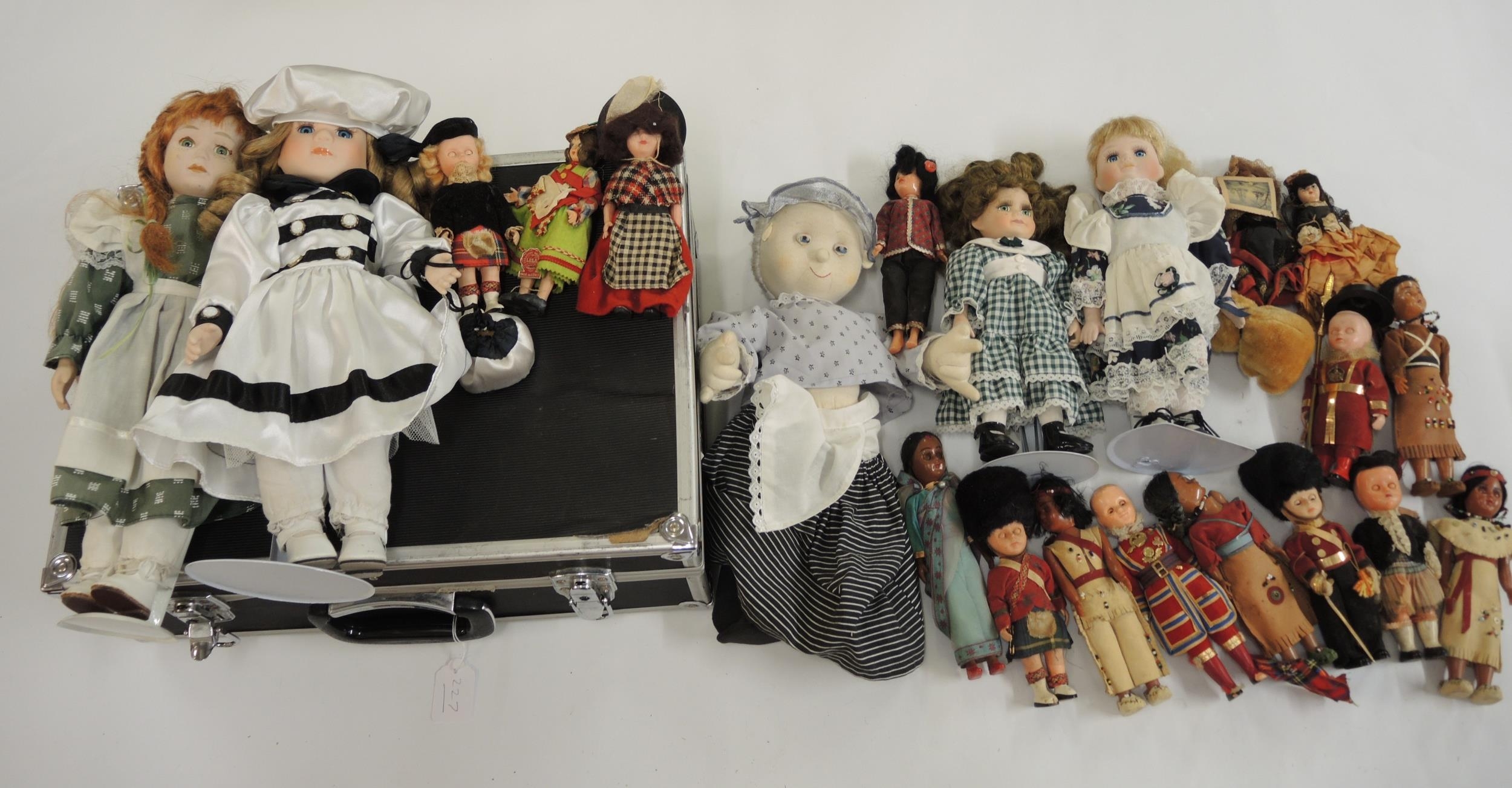 Wicker picnic hamper, another similar and a quantity of various modern dolls
