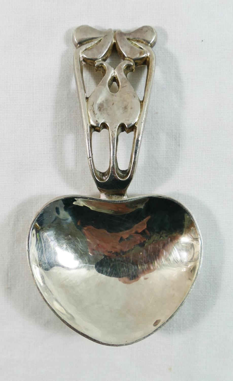 An Art Nouveau style silver caddy spoon, Birmingham 1990, by A E Jones, 8.2cm long, 0.96ozt, 30g
