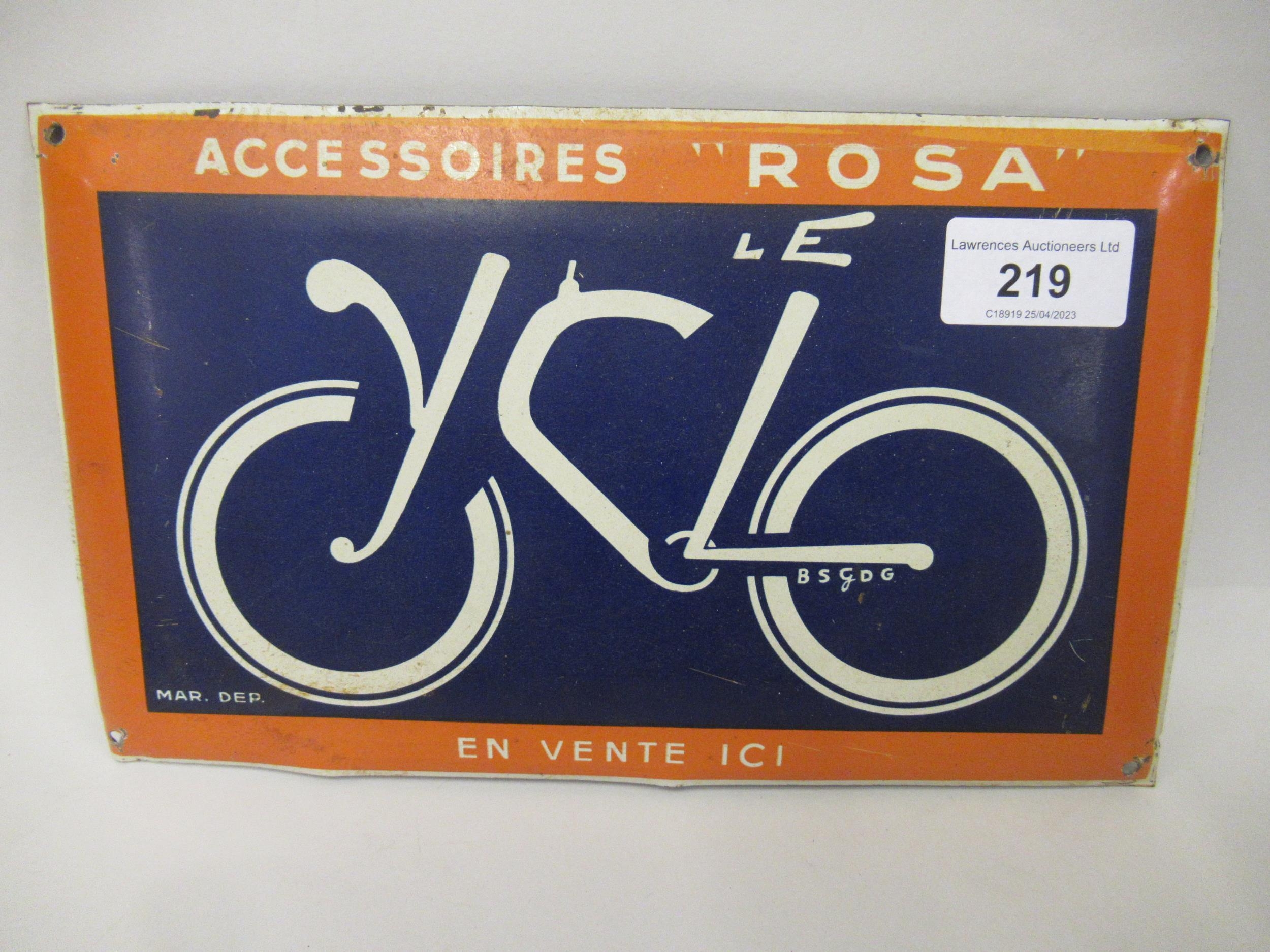 Small metal sign in the form of a French bicycle inscribed E.N. Vente Ici, 15cms x 25cms