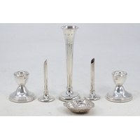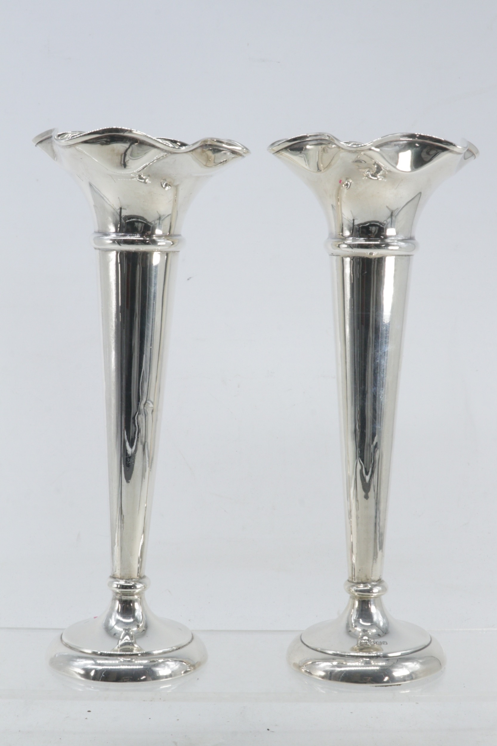 Pair of tall Silver hallmarked trumpet vases (weighted) (approx. height 26cm)