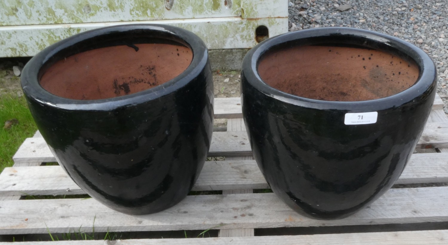 A pair of salt glazed terracotta planters