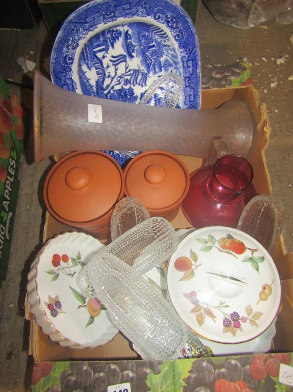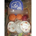 BOX OF MIXED CERAMICS AND GLASSWARE INC CRANBERRY JUG