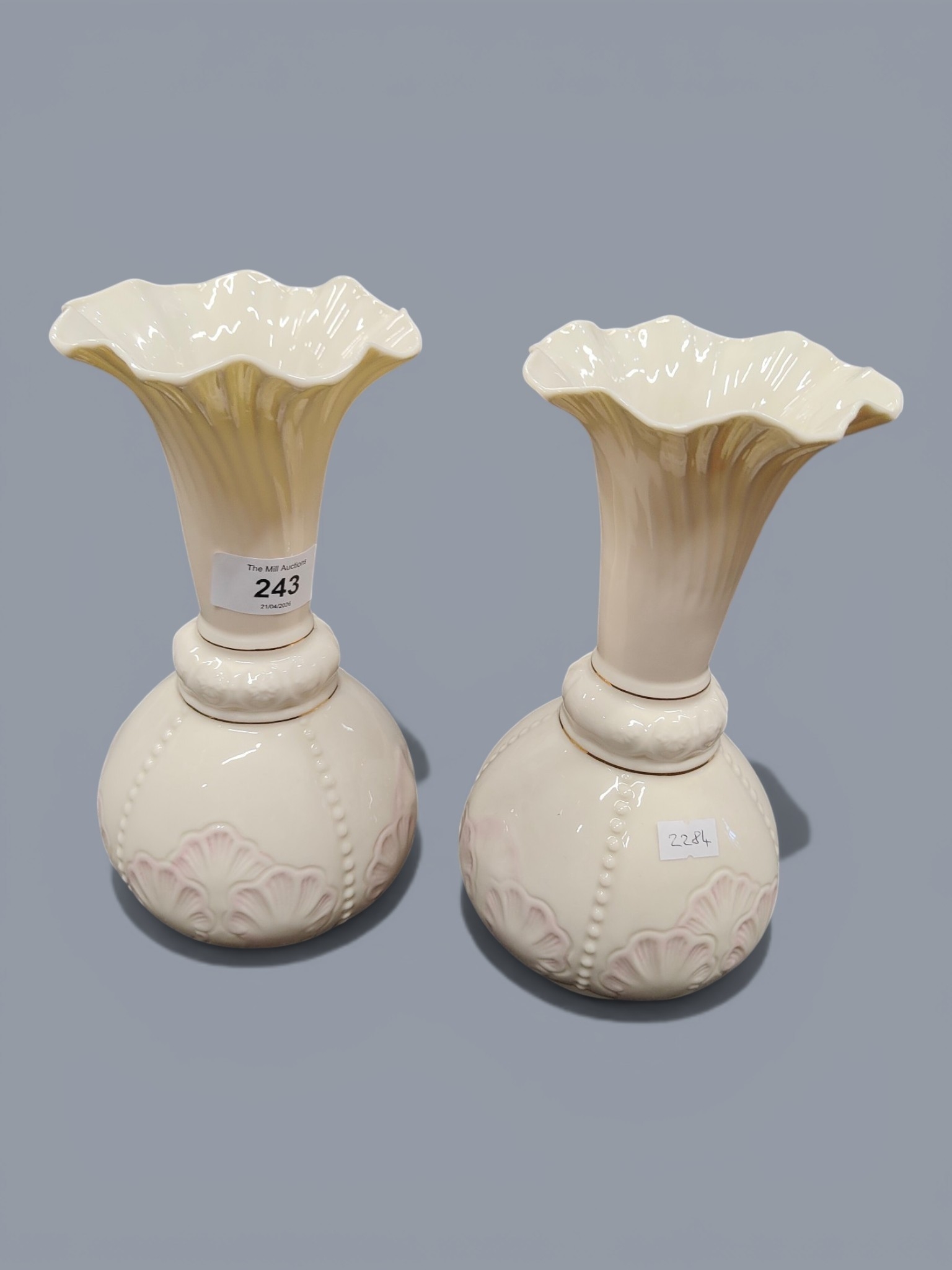 PAIR OF BELLEEK ROSSMORE VASES 9 INCHES