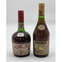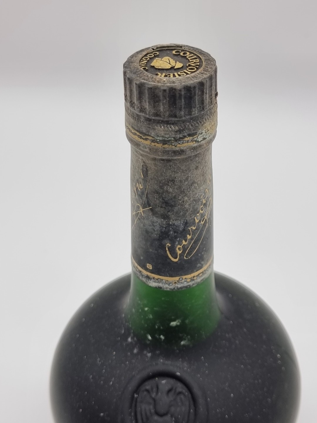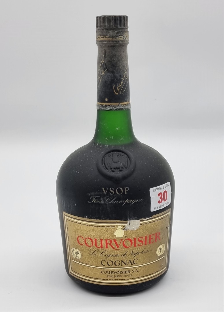 A 1 litre bottle of Courvoisier VSOP Fine Champagne Cognac, pre-barcode.