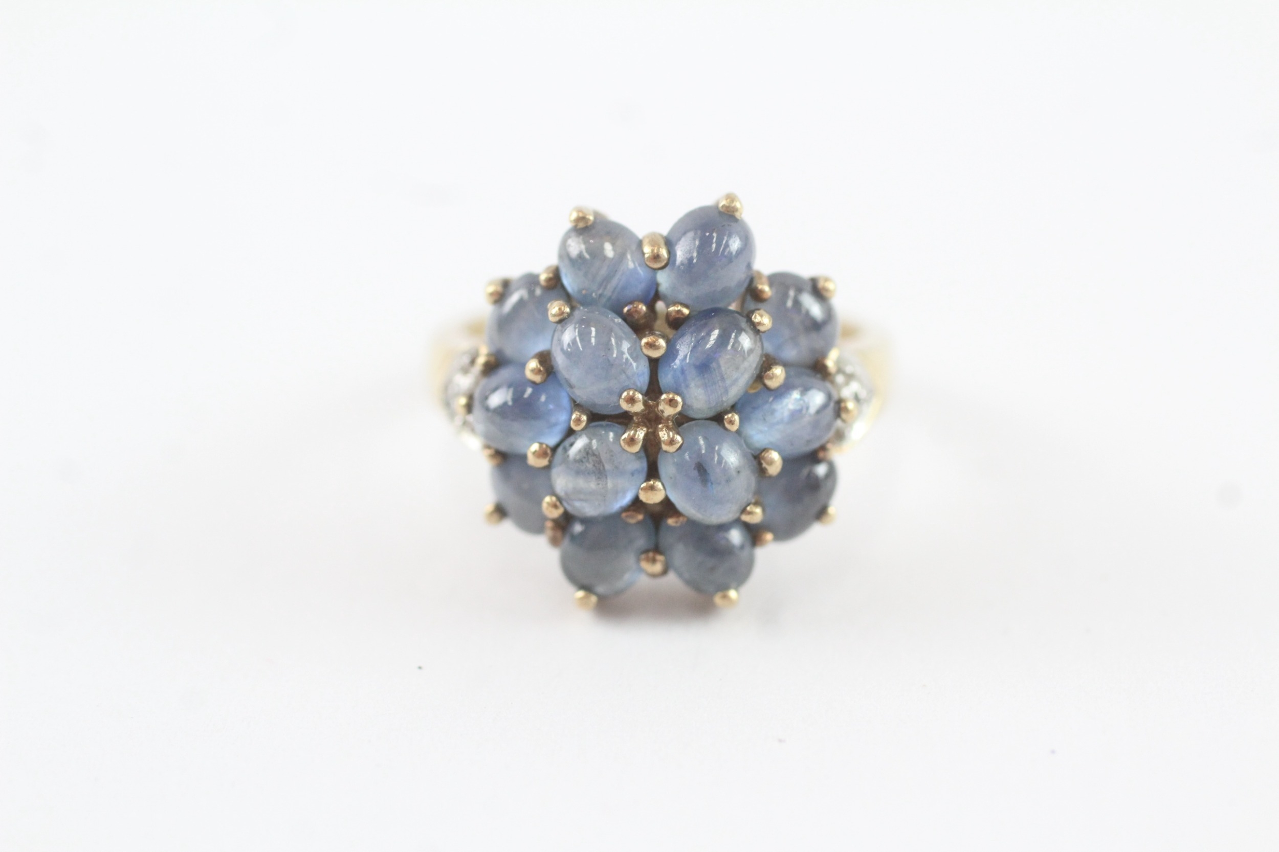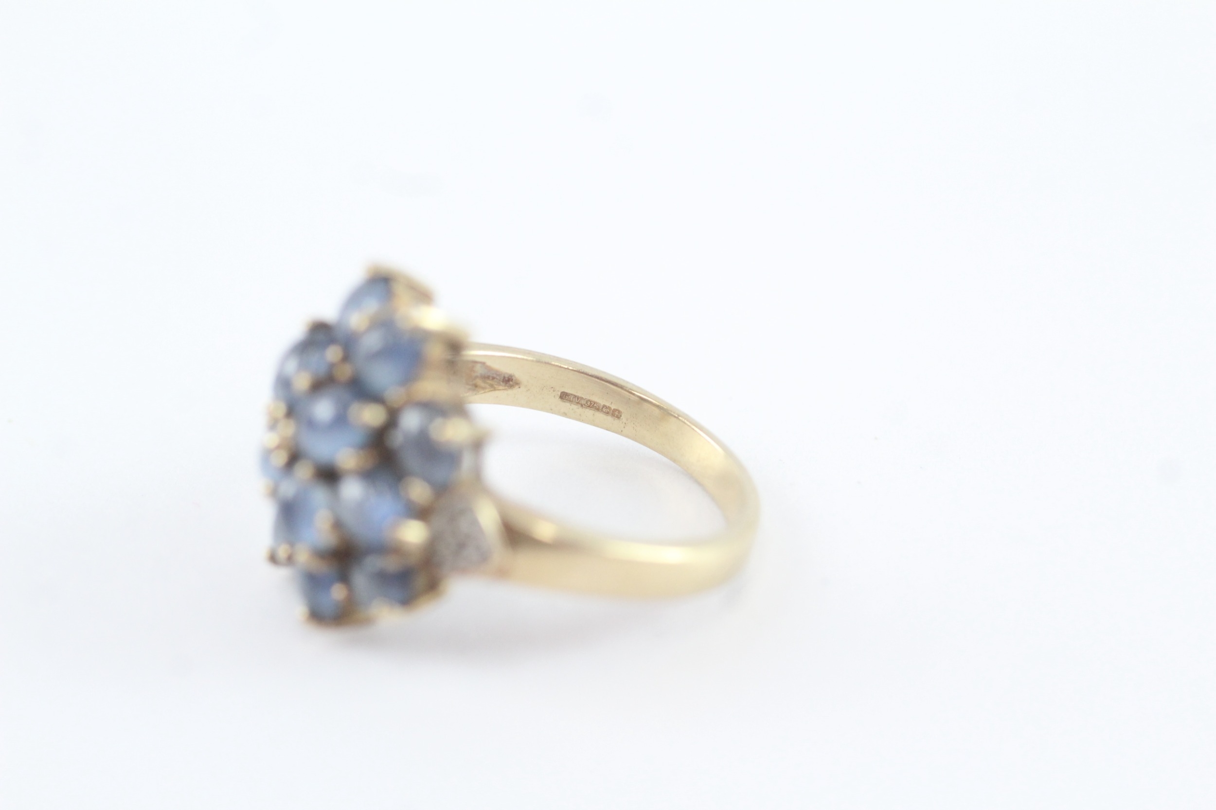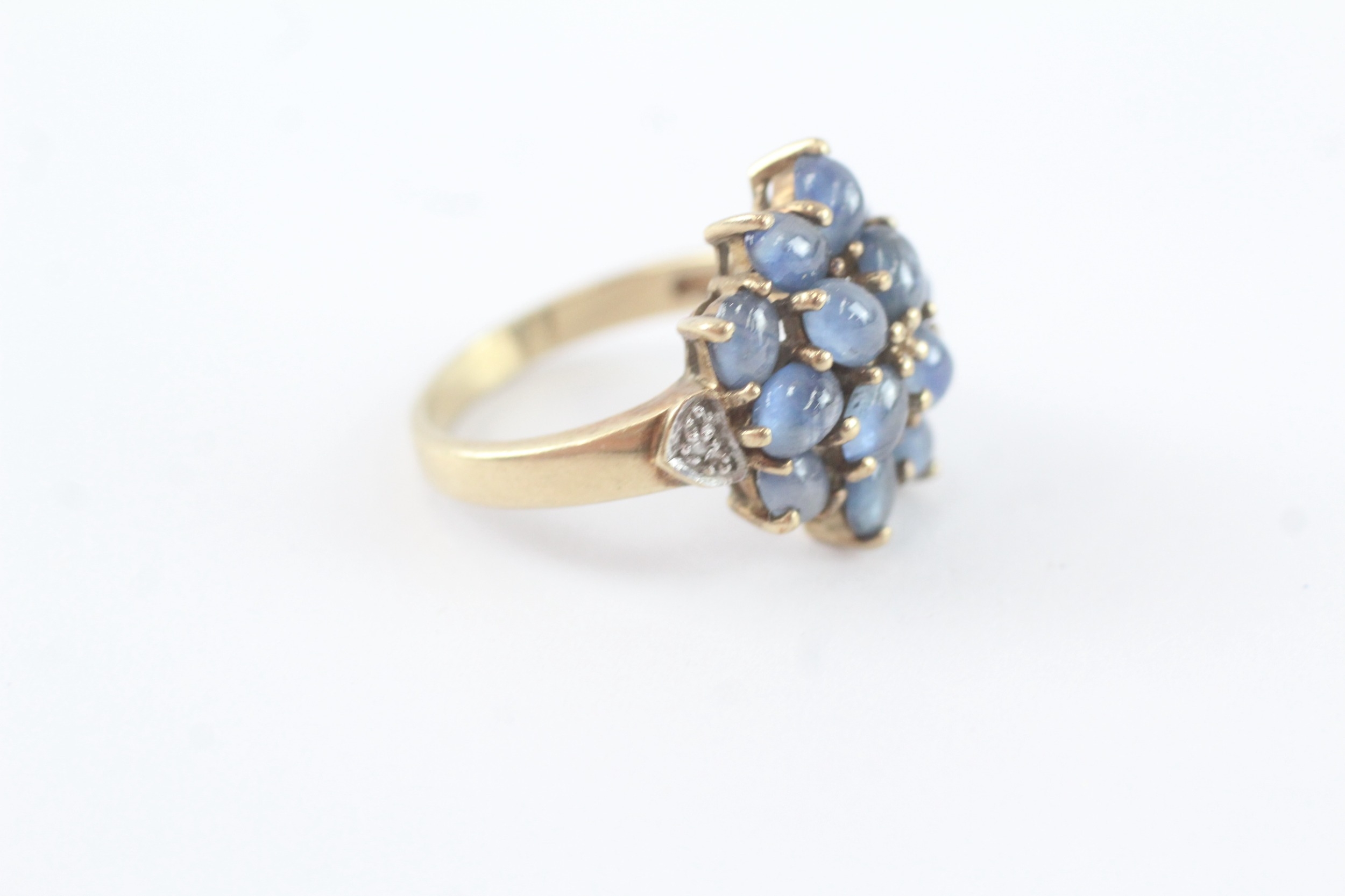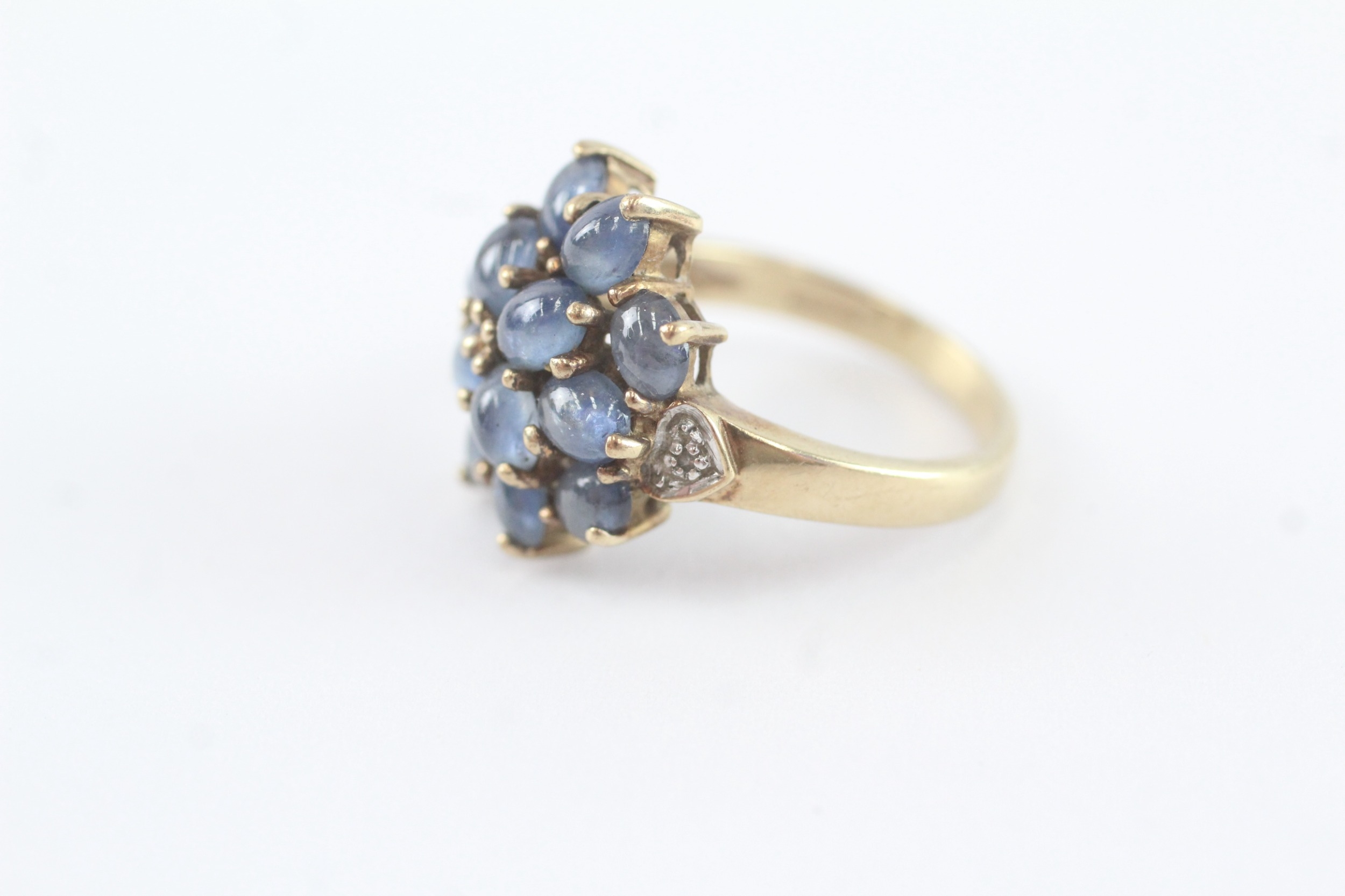 9ct gold diamond and sapphire cluster ring (5g) Size N