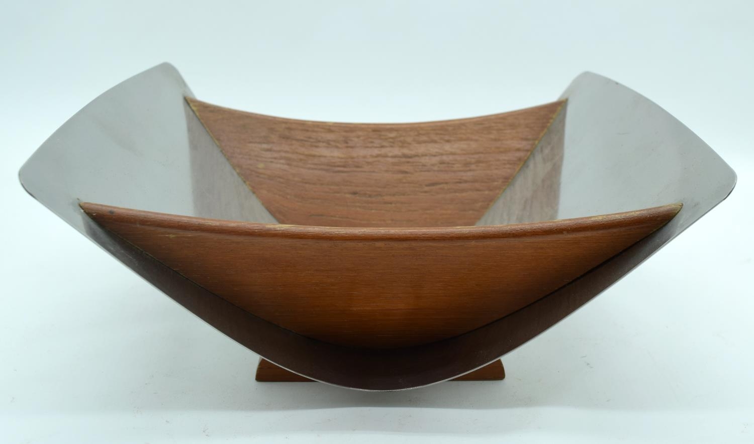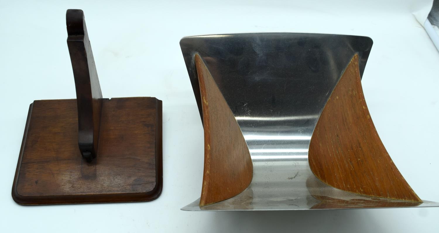 A stylish Swedish bowl together with a mahogany shelf. 26 x 12 cm (2)