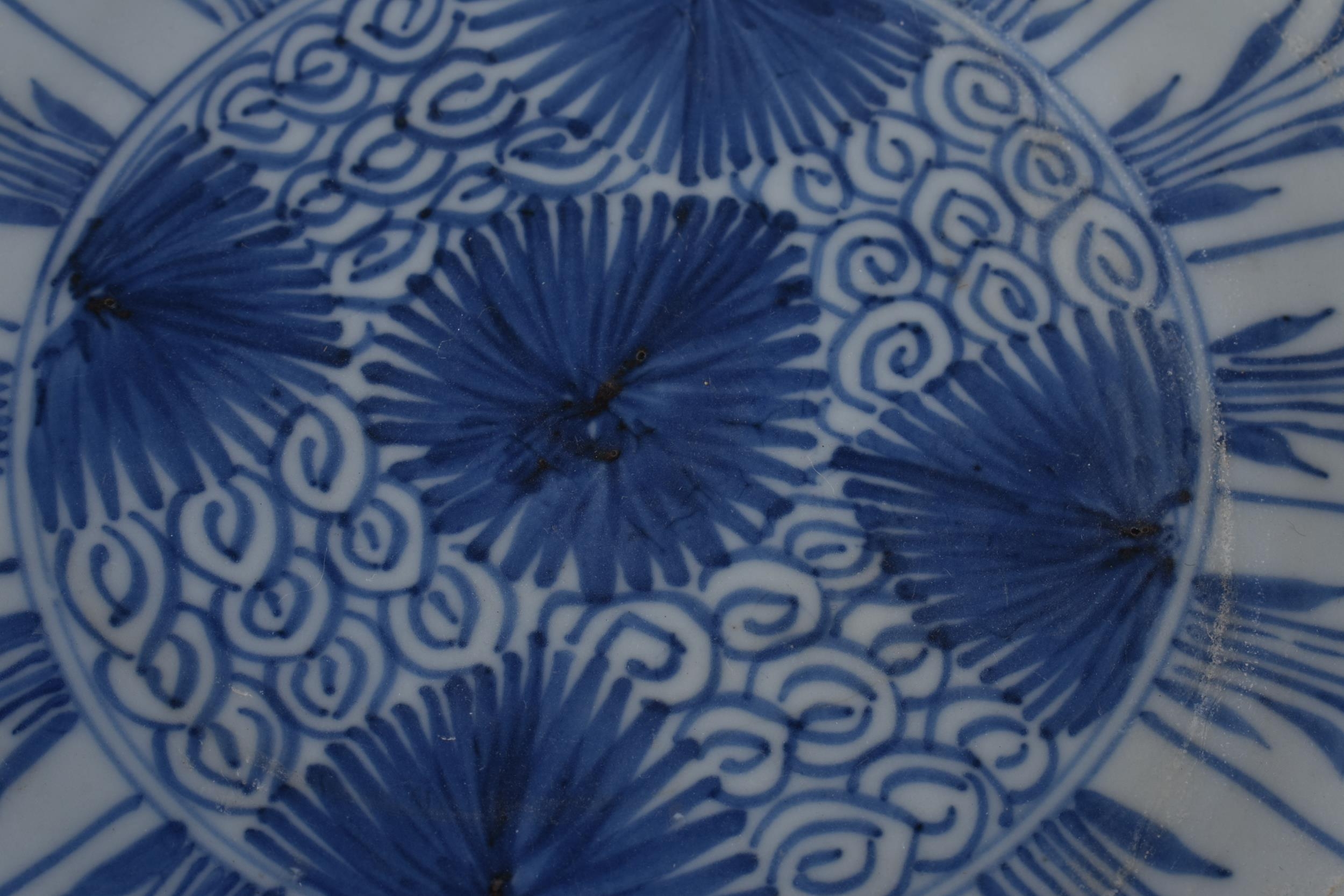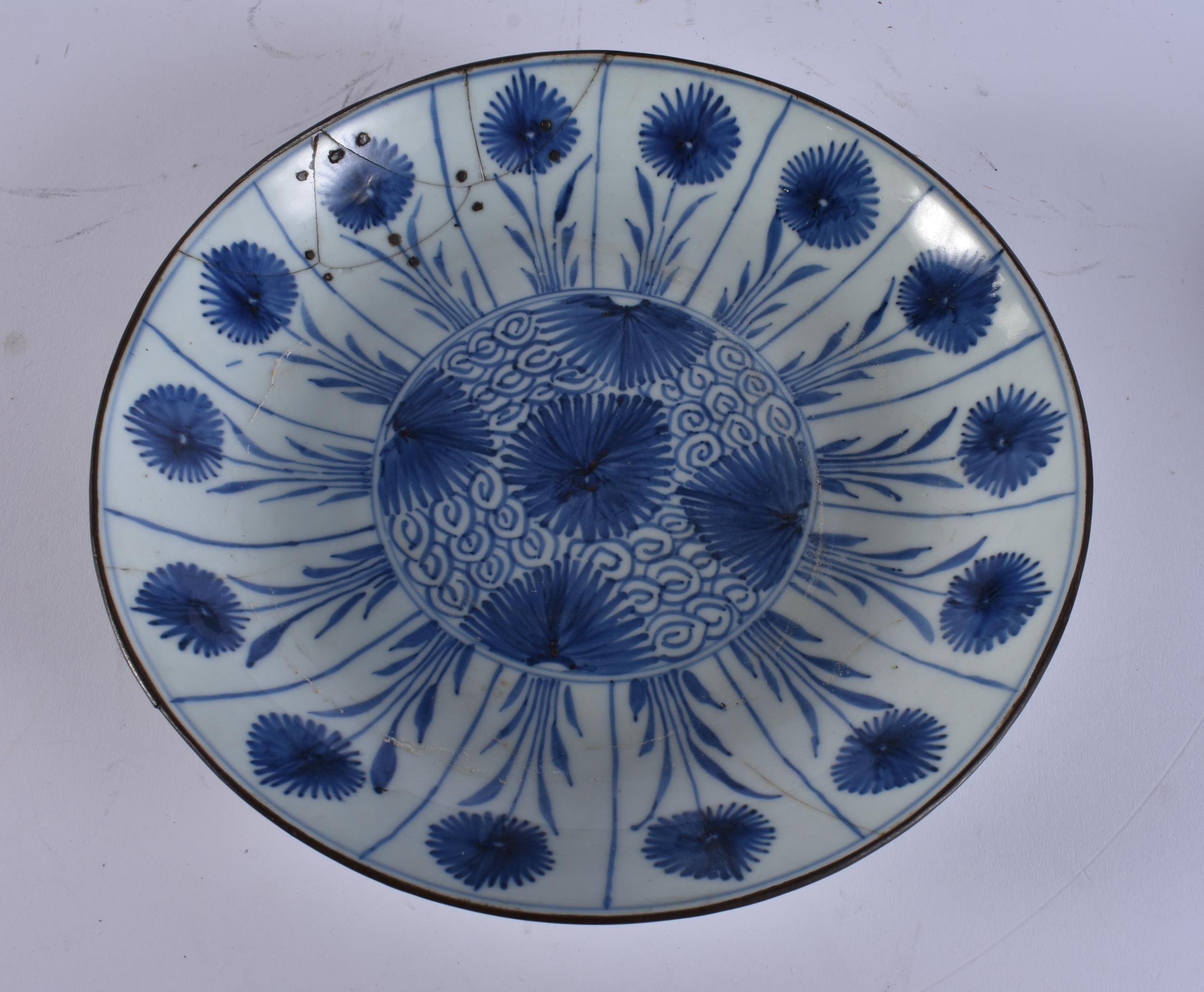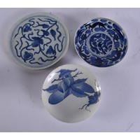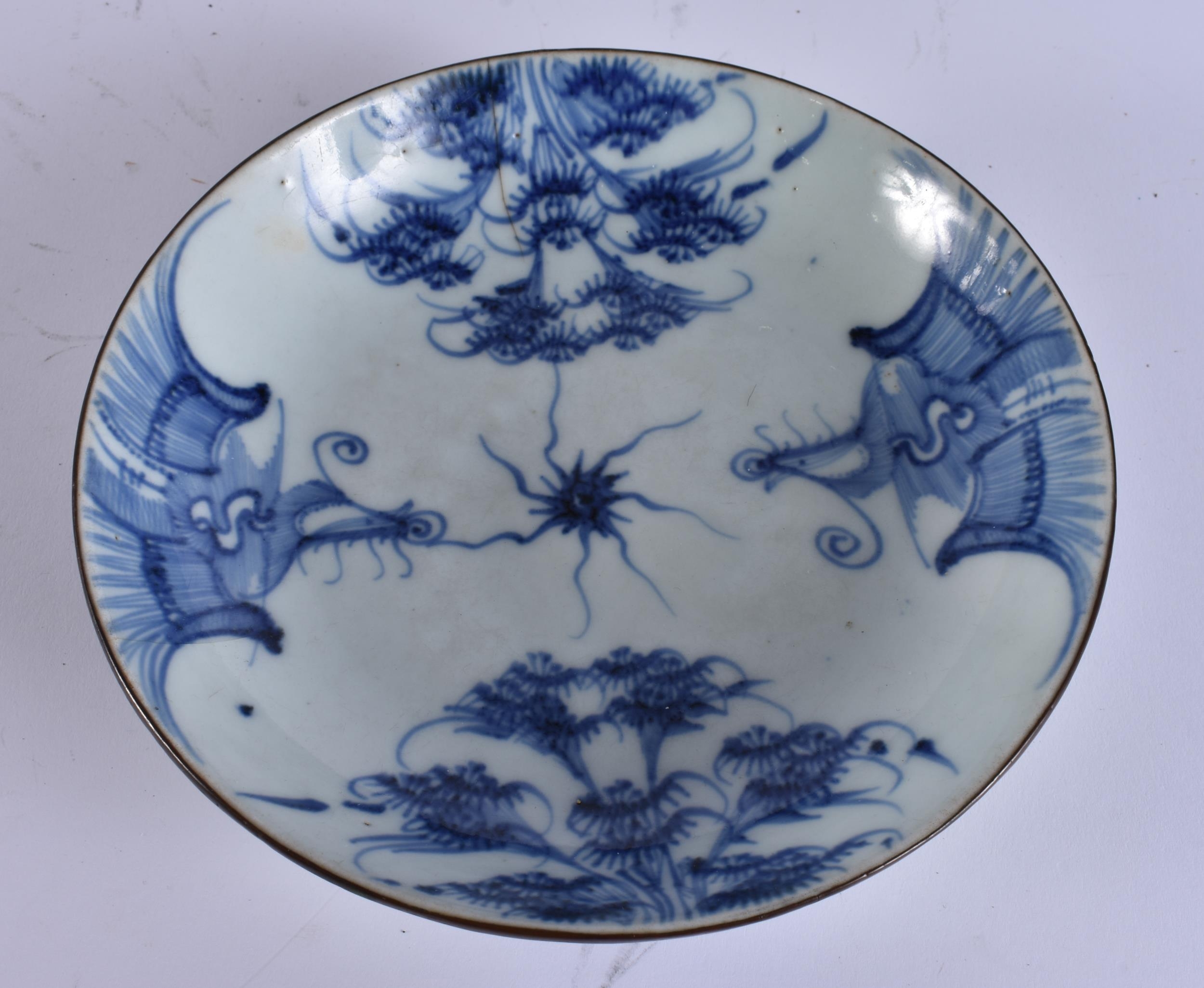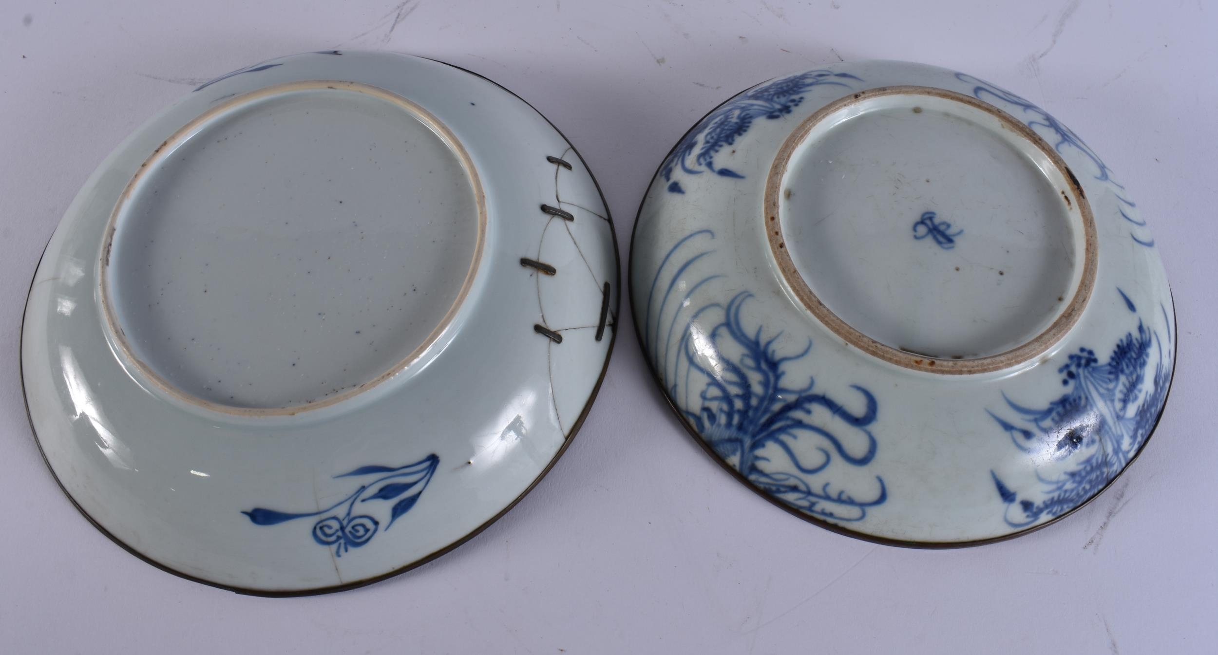 TWO 18TH CENTURY CHINESE VIETNAMESE BLUE AND WHITE PORCELAIN DISHES. Largest 22 cm wide. (2)