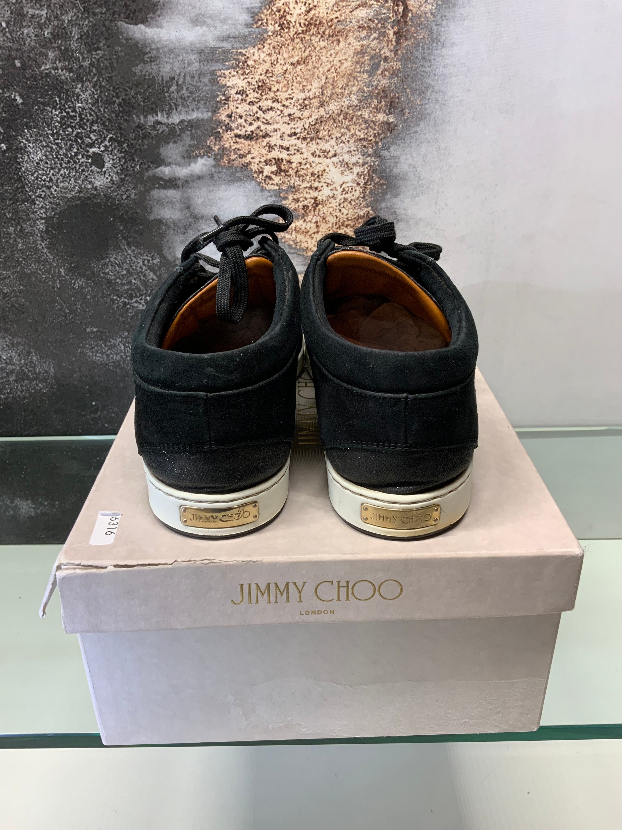 JIMMY CHOO MIAMI BLACK GLITTER TRAINERS (BLACK) - IN BOX SIZE 38 COST NEW £187 (P23039143 RR/19)