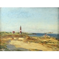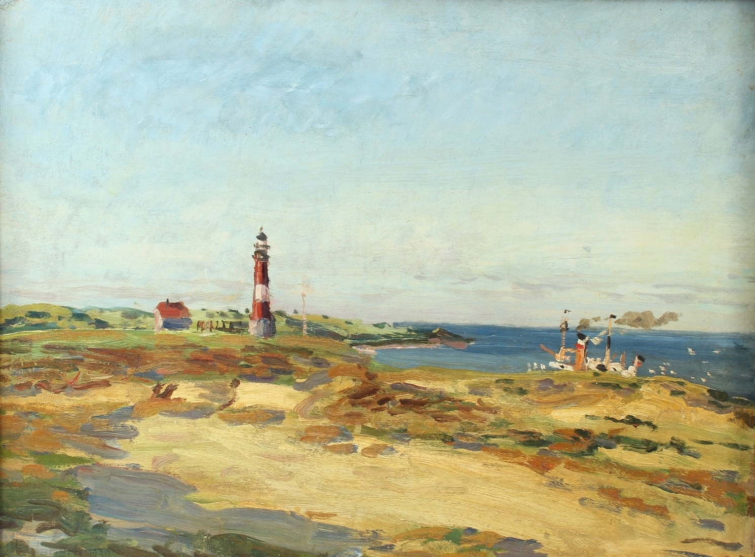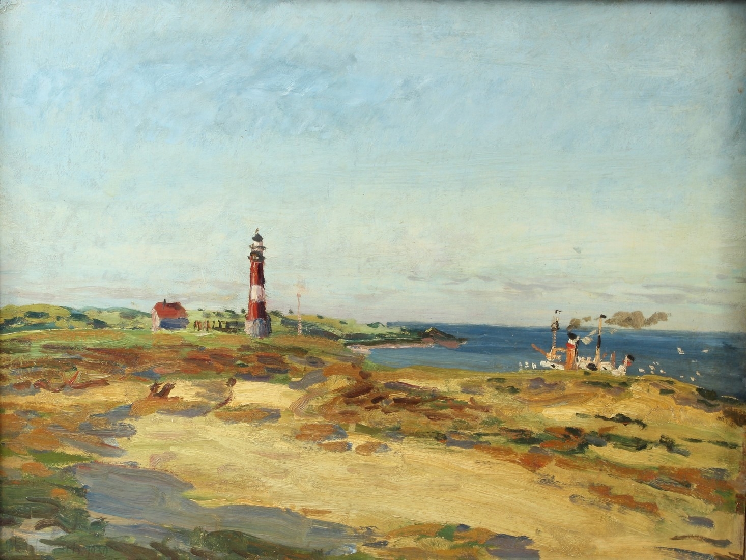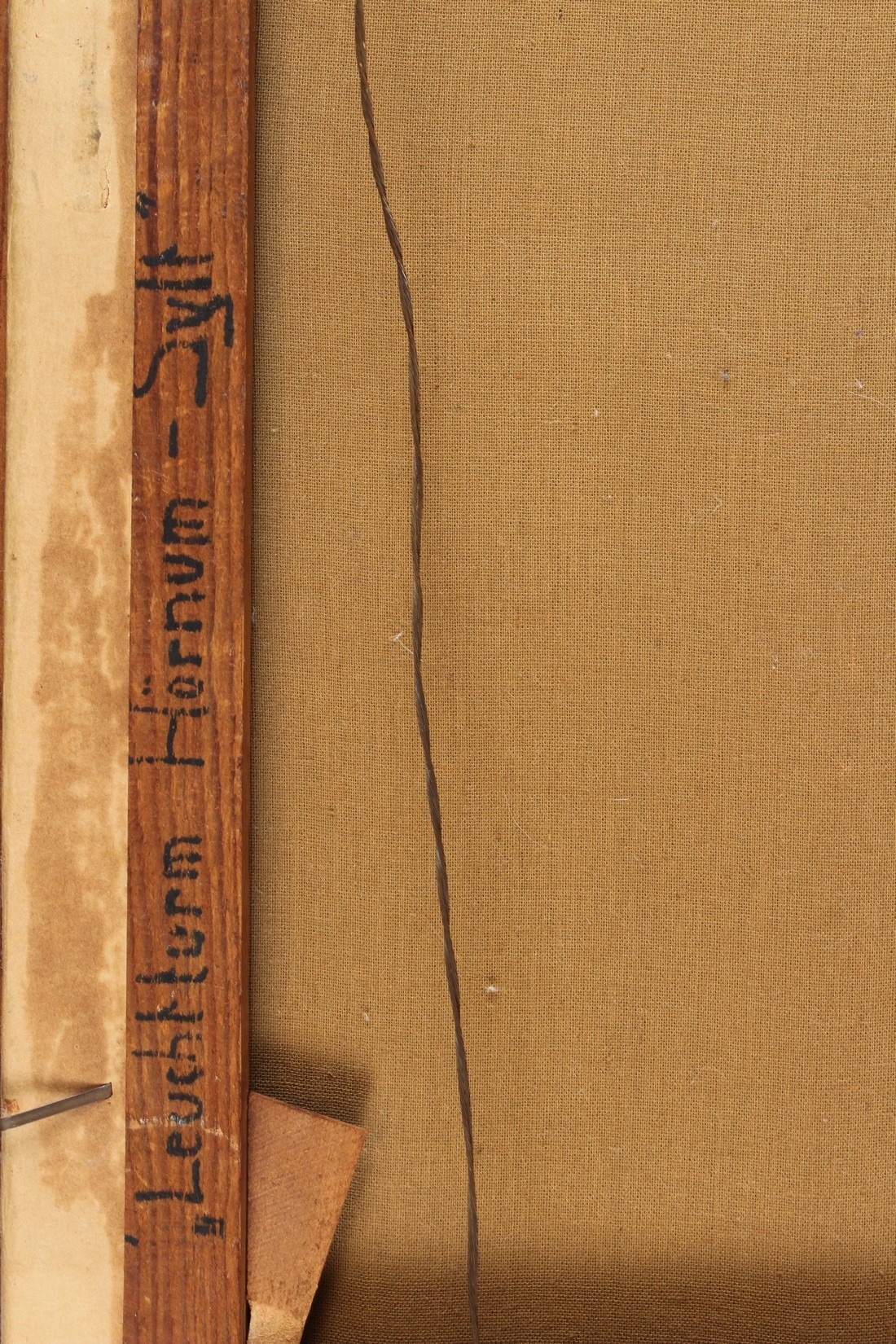 GERMAN SCHOOL (EARLY 20TH CENTURY) 'Leuchtturm Hornum - Sylt' coastal landscape with lighthouse oil on canvas signed indistinctly inscribed verso 49 x 64cm
