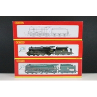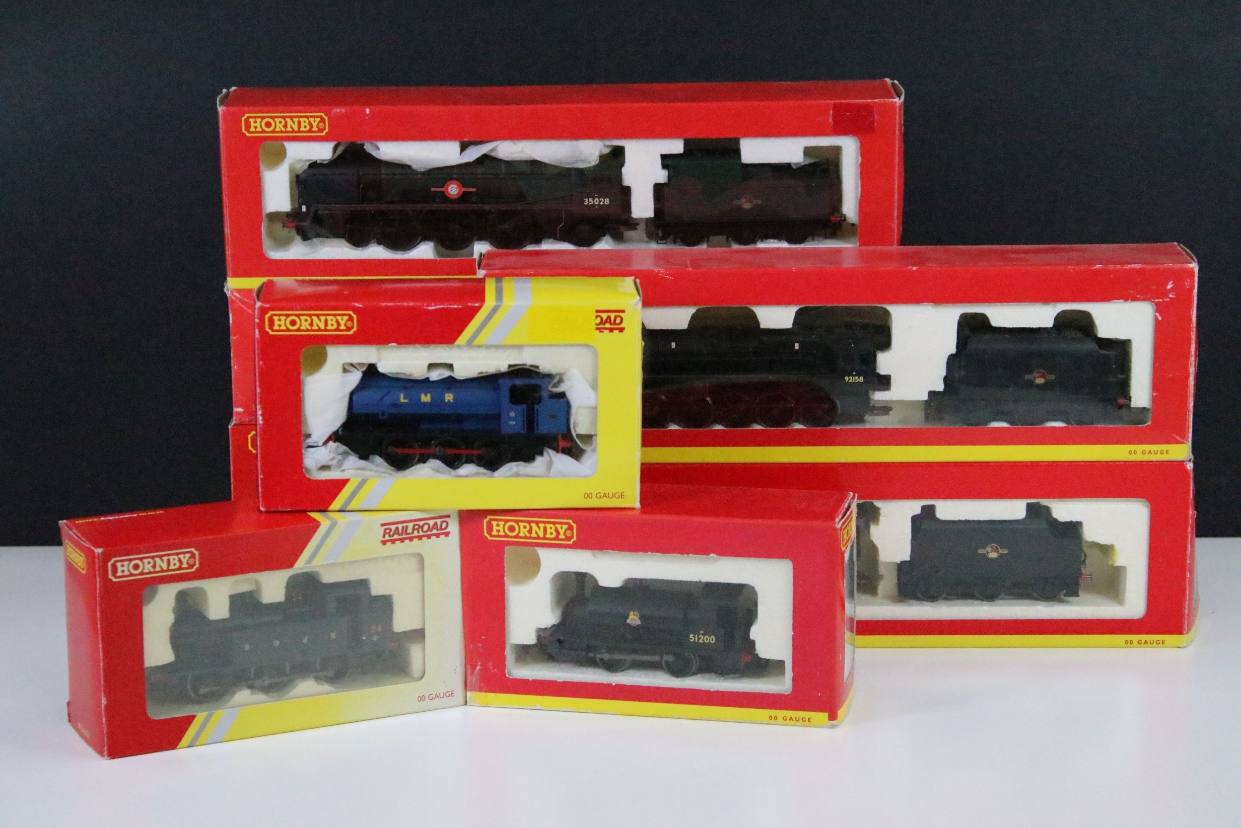 Eight boxed Hornby OO gauge locomotives to include R2461 BR 4-6-0 County Class Locomotive County of Devon, R2105C BR 2-10-0 Class 9F Locomotive 92158, R2245 BR 0-4-0T Industrial locomotive No 4 membership edition, R2882 S&DJR 0-6-0T Class 3F, ltd edn R194 BR 4-6-2 Loco Coronation Class City of Liverpool etc, boxes a touch tatty in places