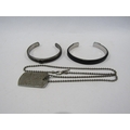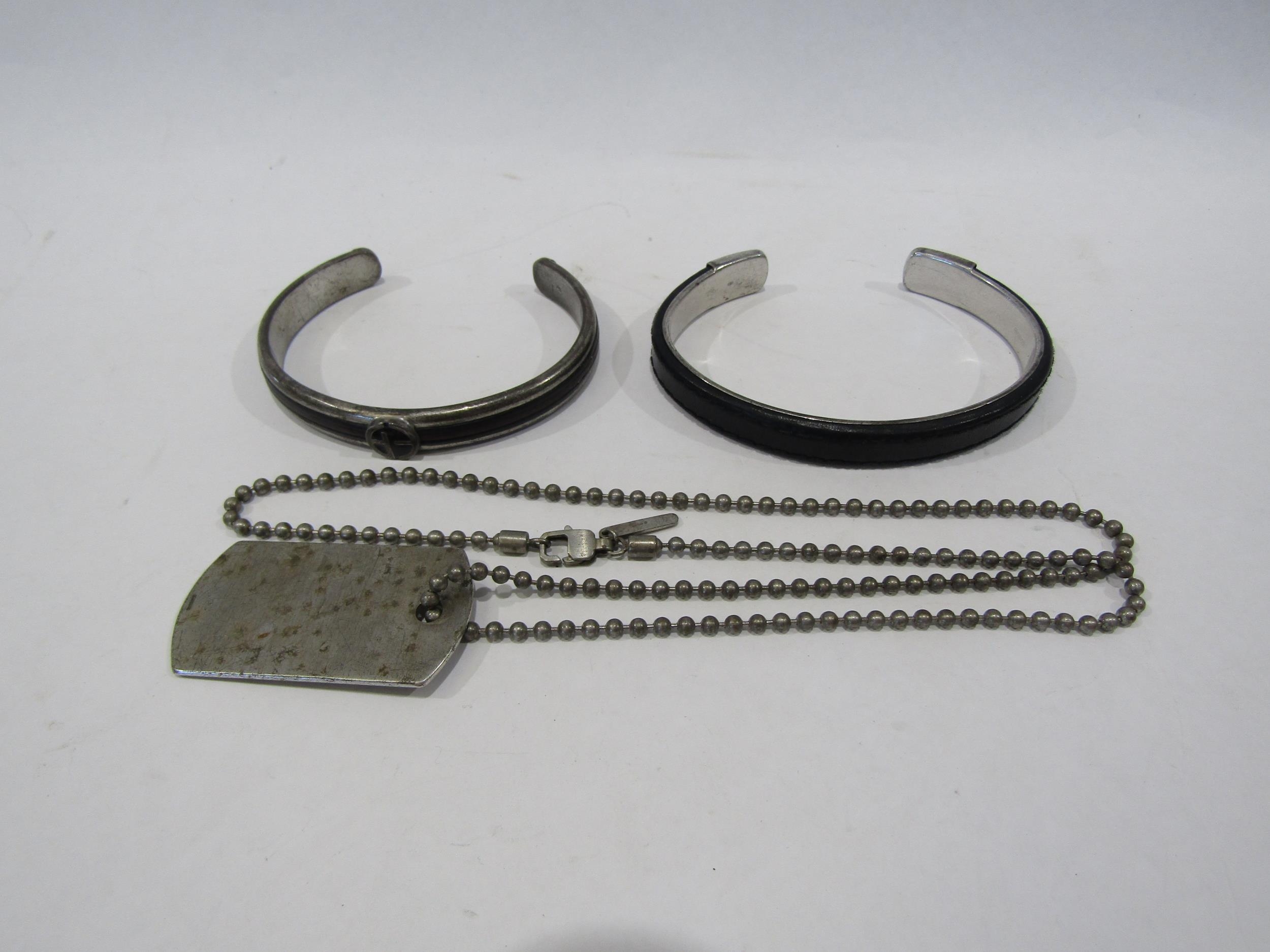 Two silver Emporio Armani bangles and a dog tag, all marked 925