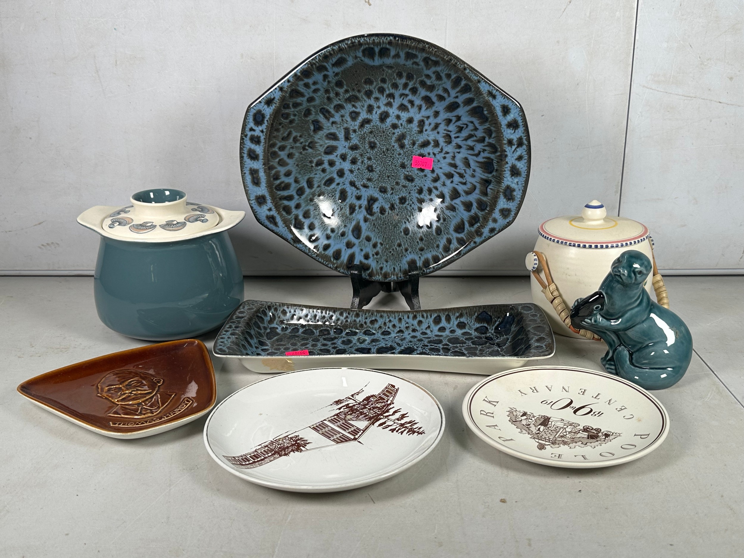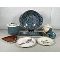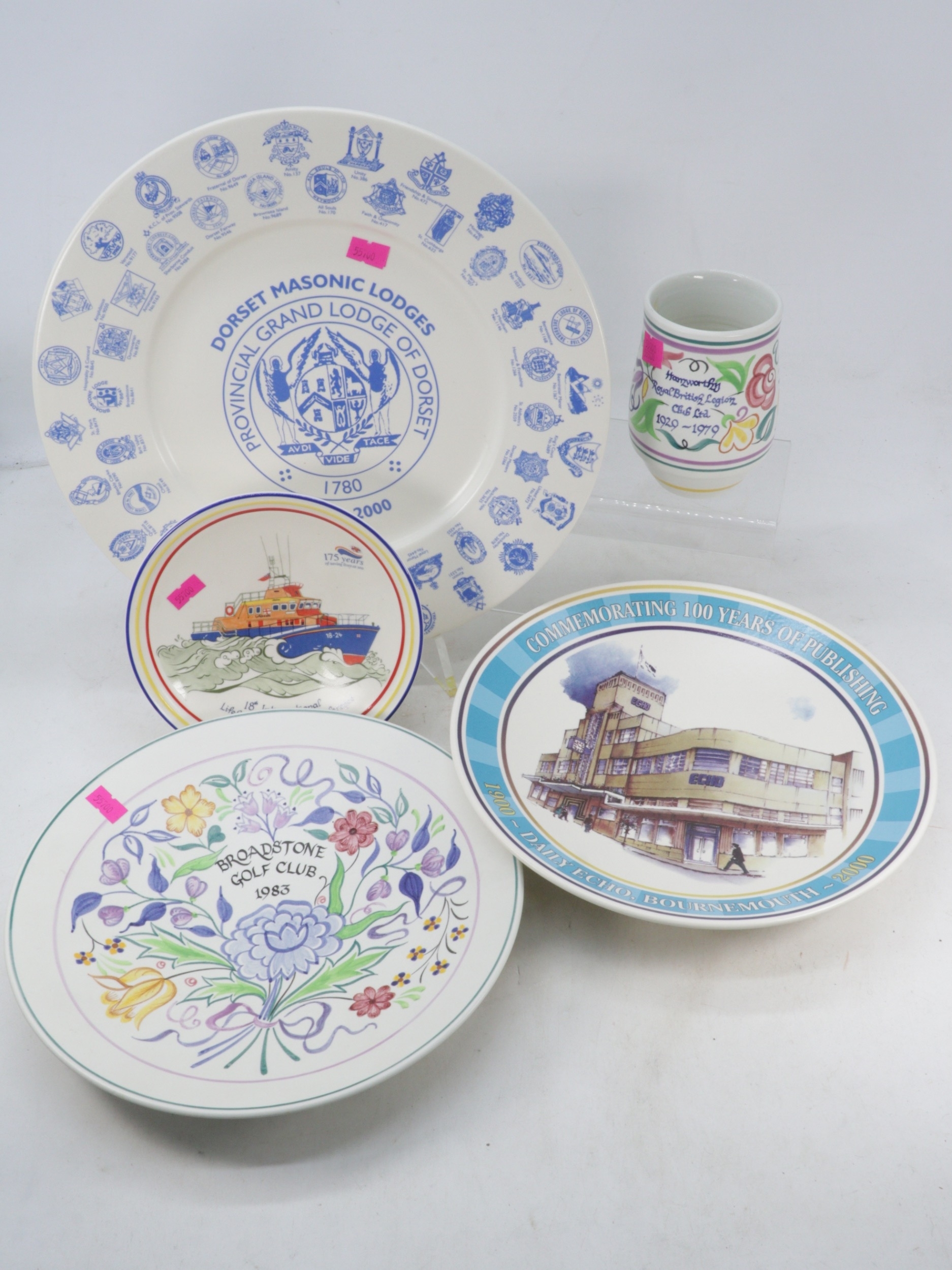 A selection of Poole Pottery to include Blue Lace two handled dish, sandwich platter, twin tone mushroom casserole pot, trinket dishes etc together with Limited Edition Poole pottery Dorset masonic lodges plate, Broadstone Golf club plate, Hamworthy Club vase, Lifeboat dish and an Echo plate