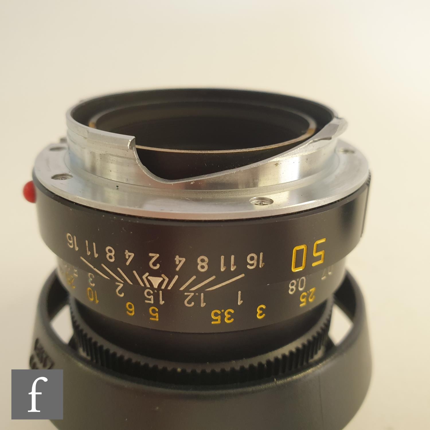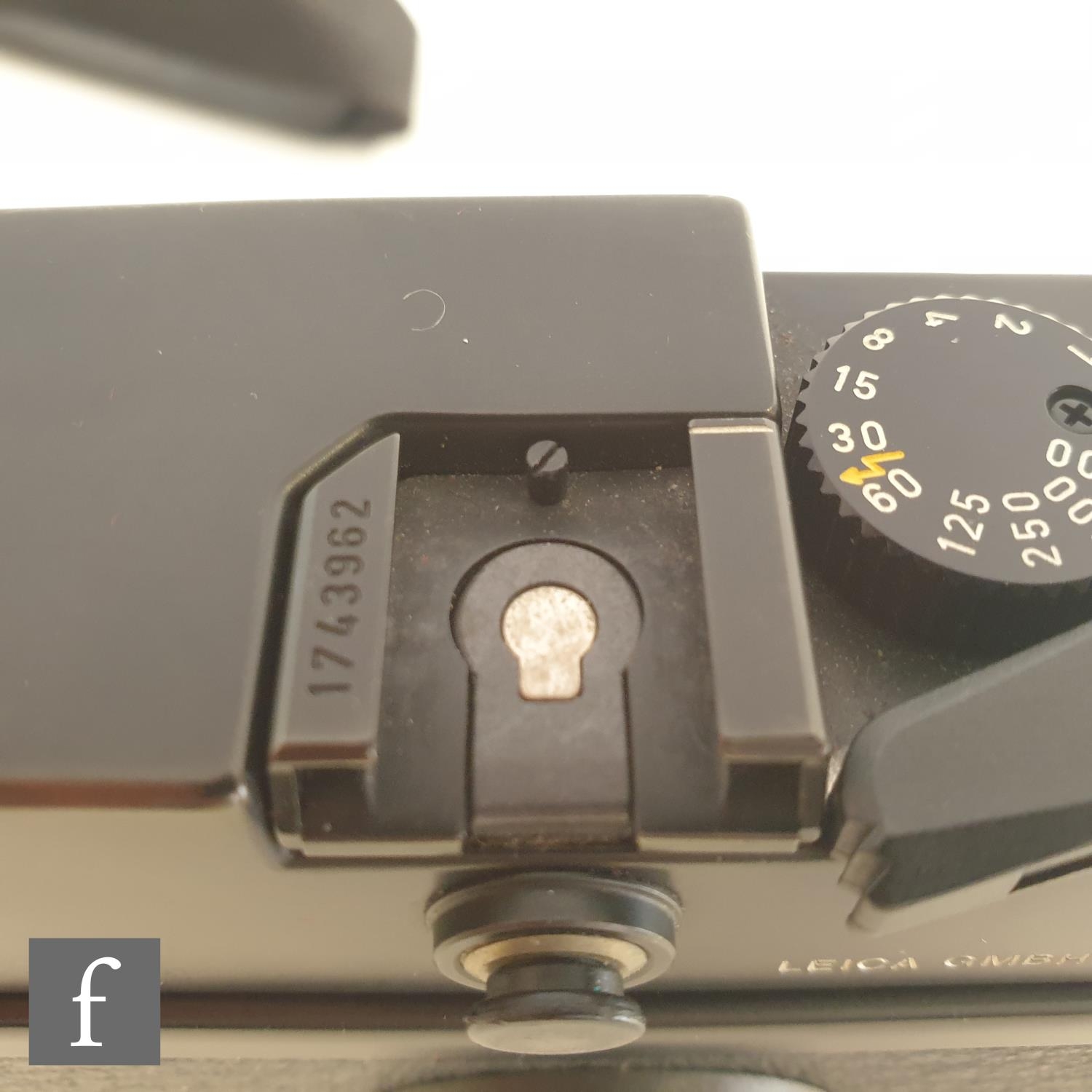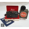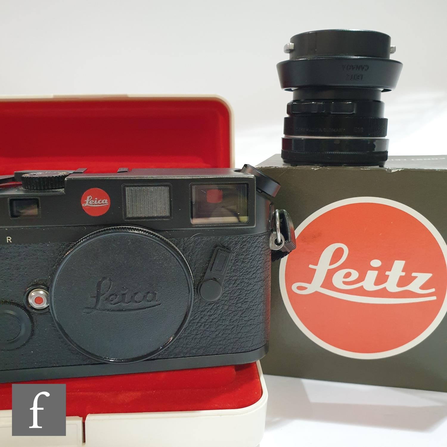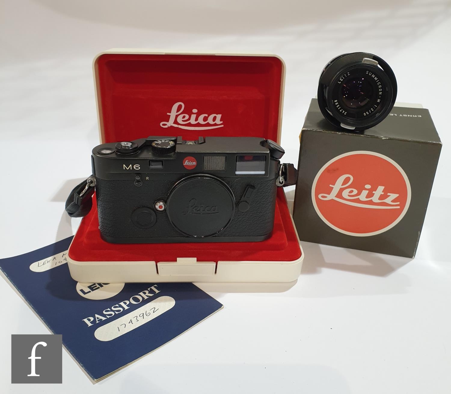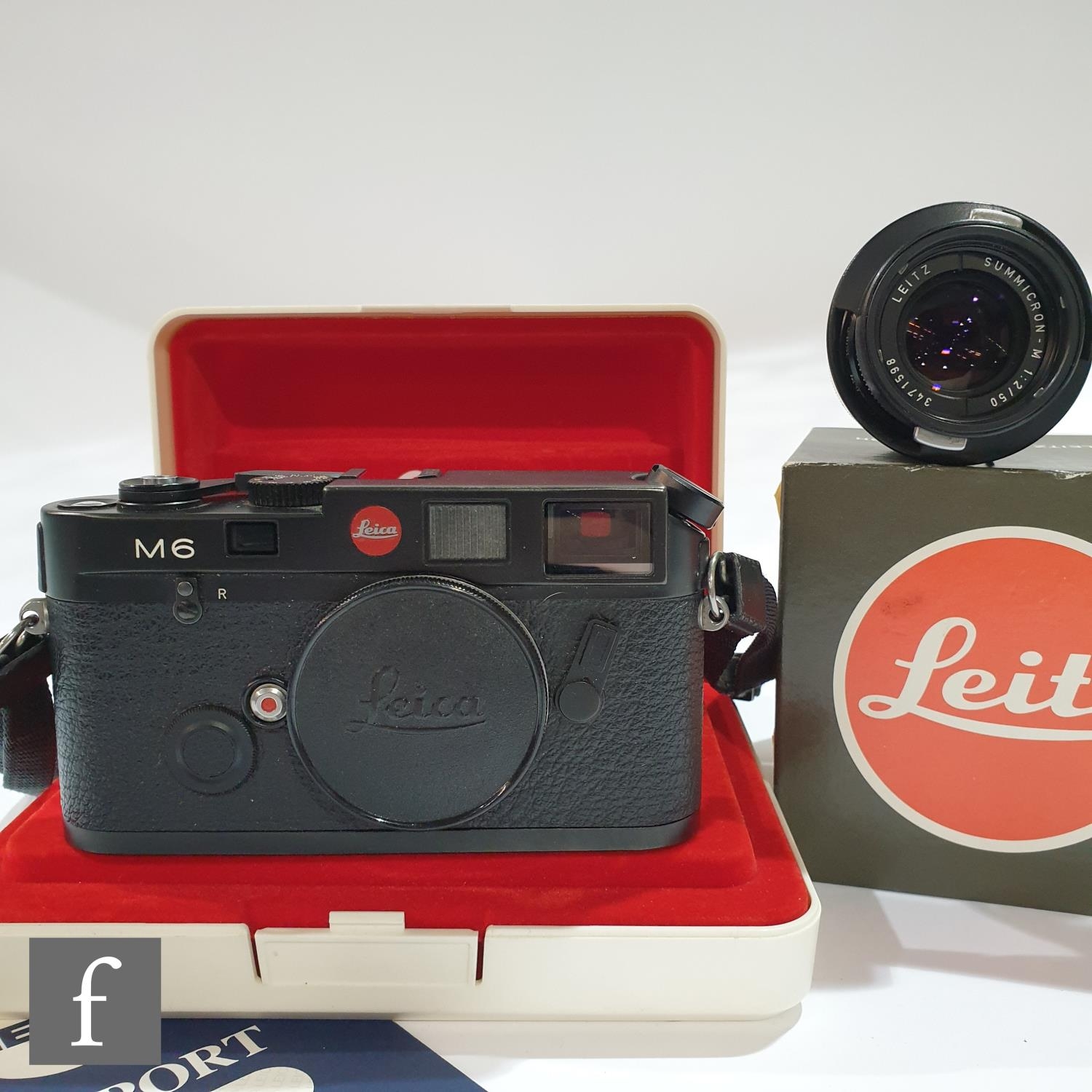 A Leica M6 black, circa 1988, serial number 1743962, with passport 10404 and dealers stamp, purchase date 1989, with original box, sold with a Leitz summicron 1:2/50mm lens, serial number 3471598, sold with original box. (2)