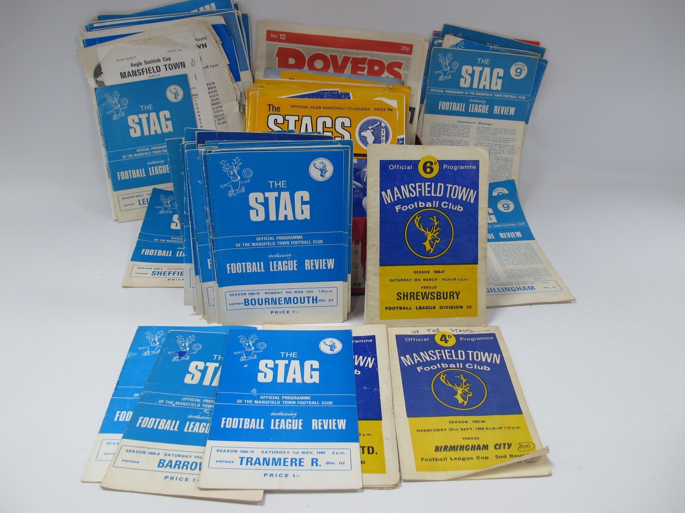 Mansfield Town Programmes, mainly homes 1965-80, including 1968-69 four F.A.Cup Homes plus pirate v. West Ham, 76-7 v. Chester - autographed. 78-9 v. Darlington - League Cup. 79-80 v. Notts County - County Cup, approximately 139.