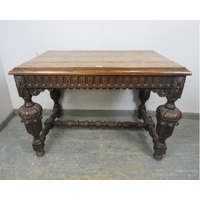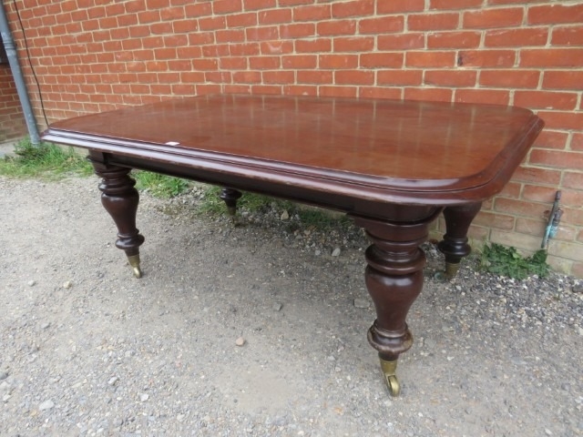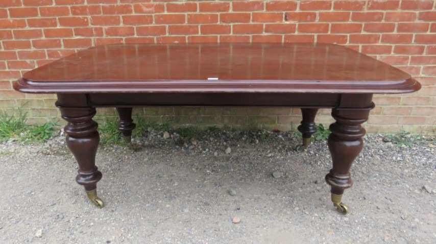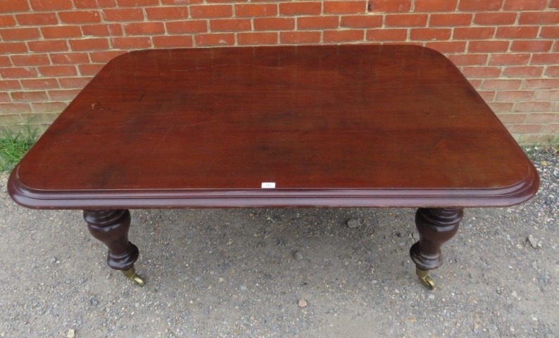 A mid Victorian mahogany dining table, the top with double thumb moulded edge, raised upon baluster turned supports with brass castors. H72cm x W167cm x D113cm approx.