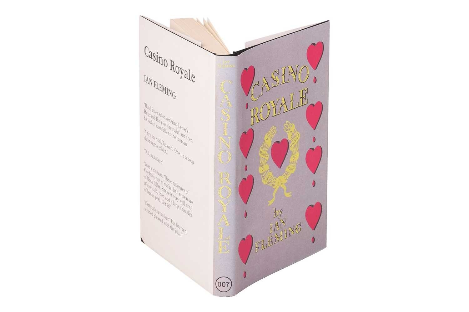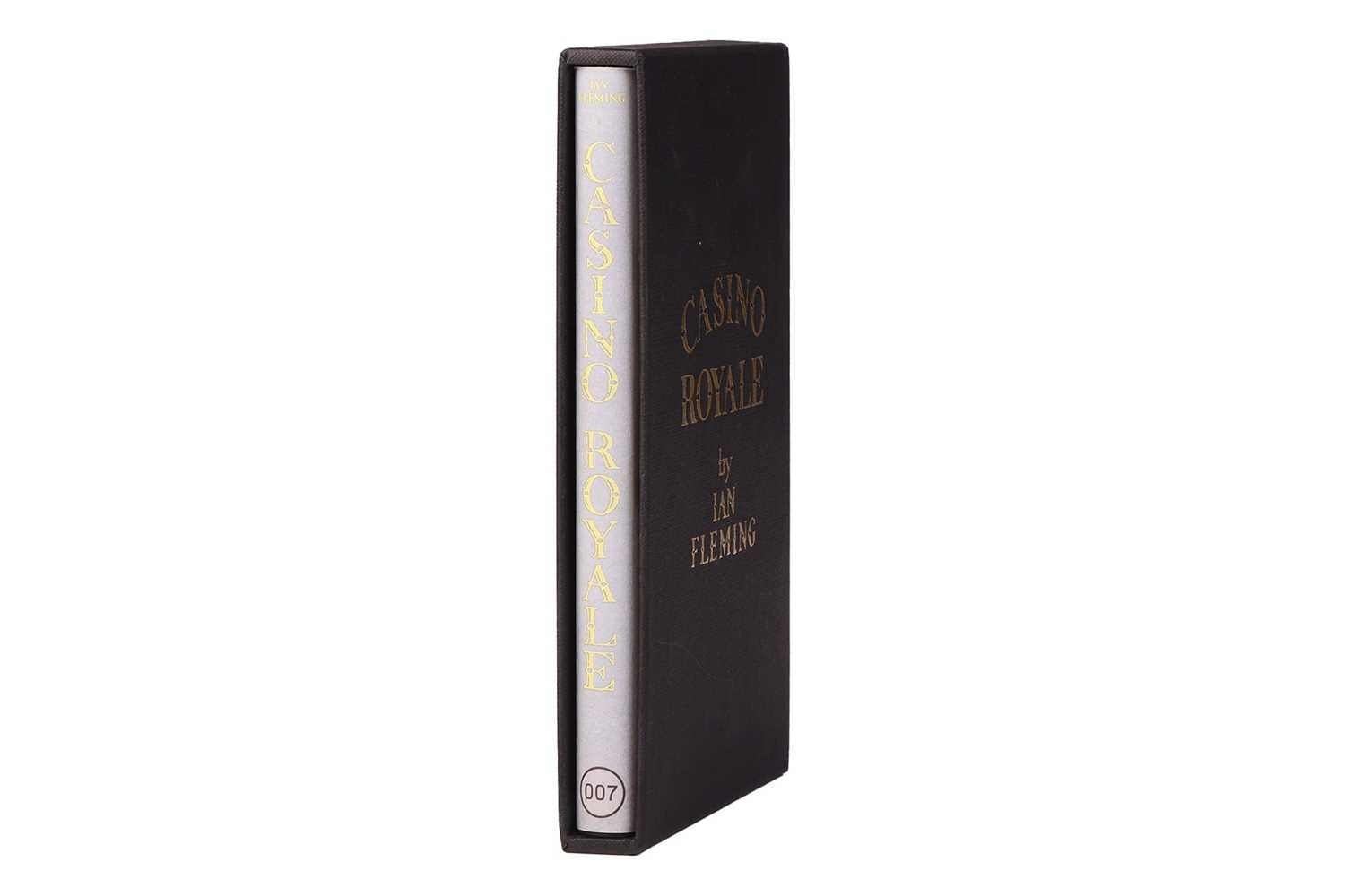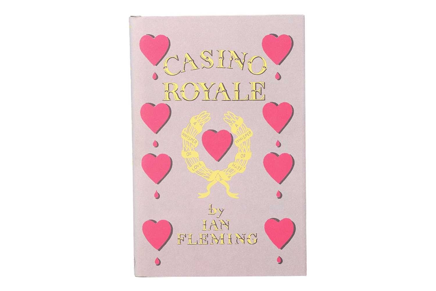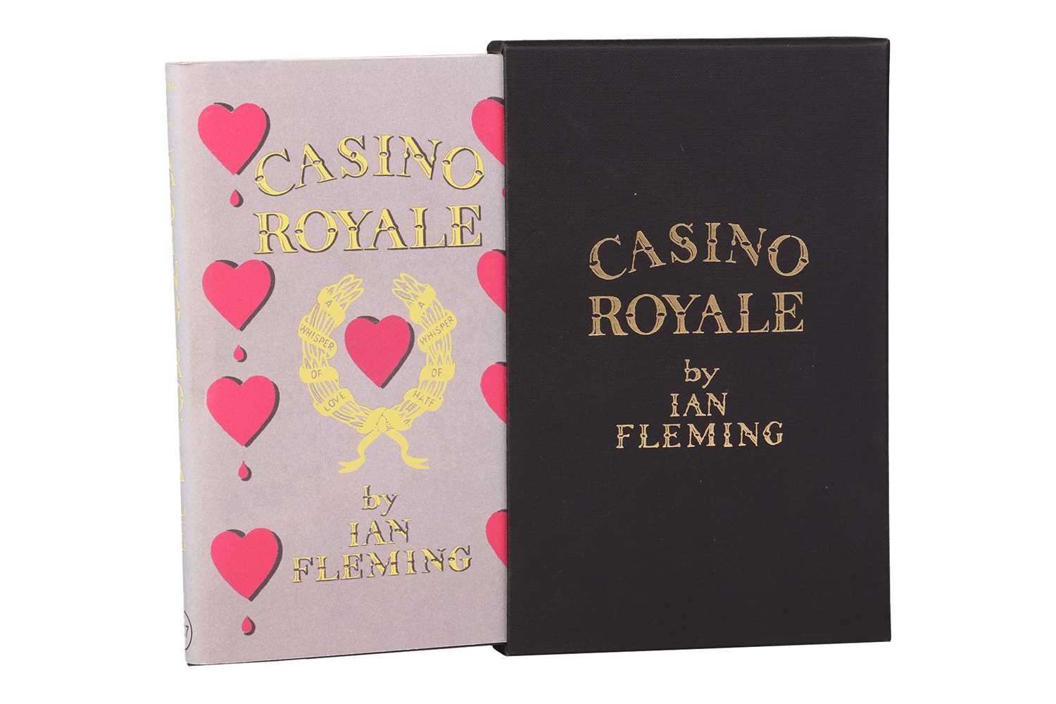 FLEMING (Ian). Casino Royale, Matthew Fleming Association copy, a scarce limited, not-for-sale 'Friends and Family' edition, published by Penguin Books and Ian Fleming Publications, 2006. pictorial dust-jacket to replicate the original first state dust-jacket designed by Ian Fleming as issued by Jonathan Cape for the first edition published in 1953, half-title with Fleming media to lower-page, black cloth, gilt title and red heart device embossed to front board, 213pp., 8vo, within black cloth slipcase with gilt title, 14 cm x 22cm. Signed to the inside cover by Roddie Fleming, nephew of Ian Fleming, and dated 14.1.2007. Private collection Small nick to the rear bottom left corner of the dust jacket. Light scuffs visible to the slip case.