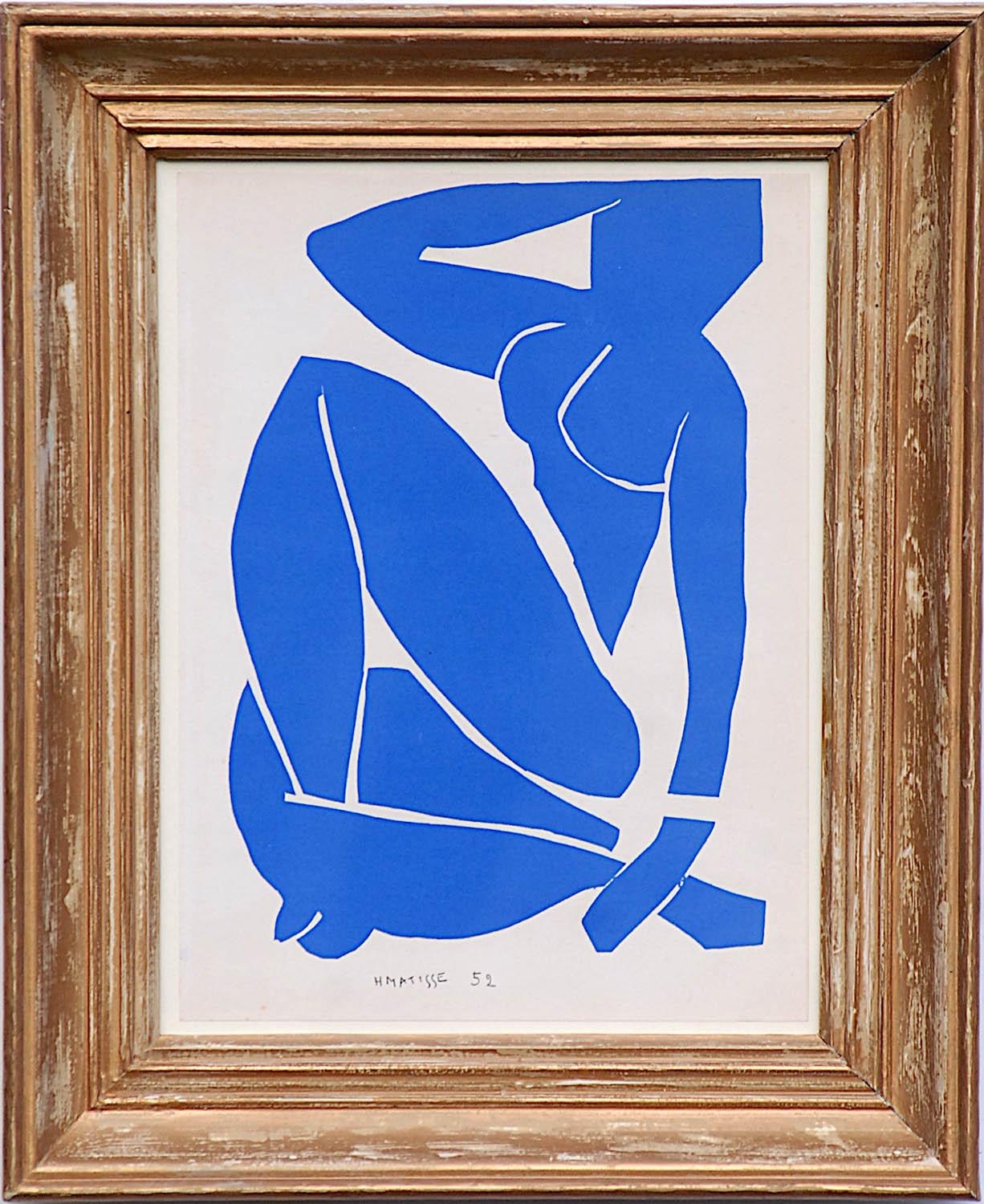 HENRI MATISSE 'Nu Blue IX', original lithograph from the 1954 edition, after Matisse's cut outs, signed in the plate, Atelier Mourlot, 35cm x 26cm, framed and glazed. (Subject to ARR - see Buyers Conditions)
