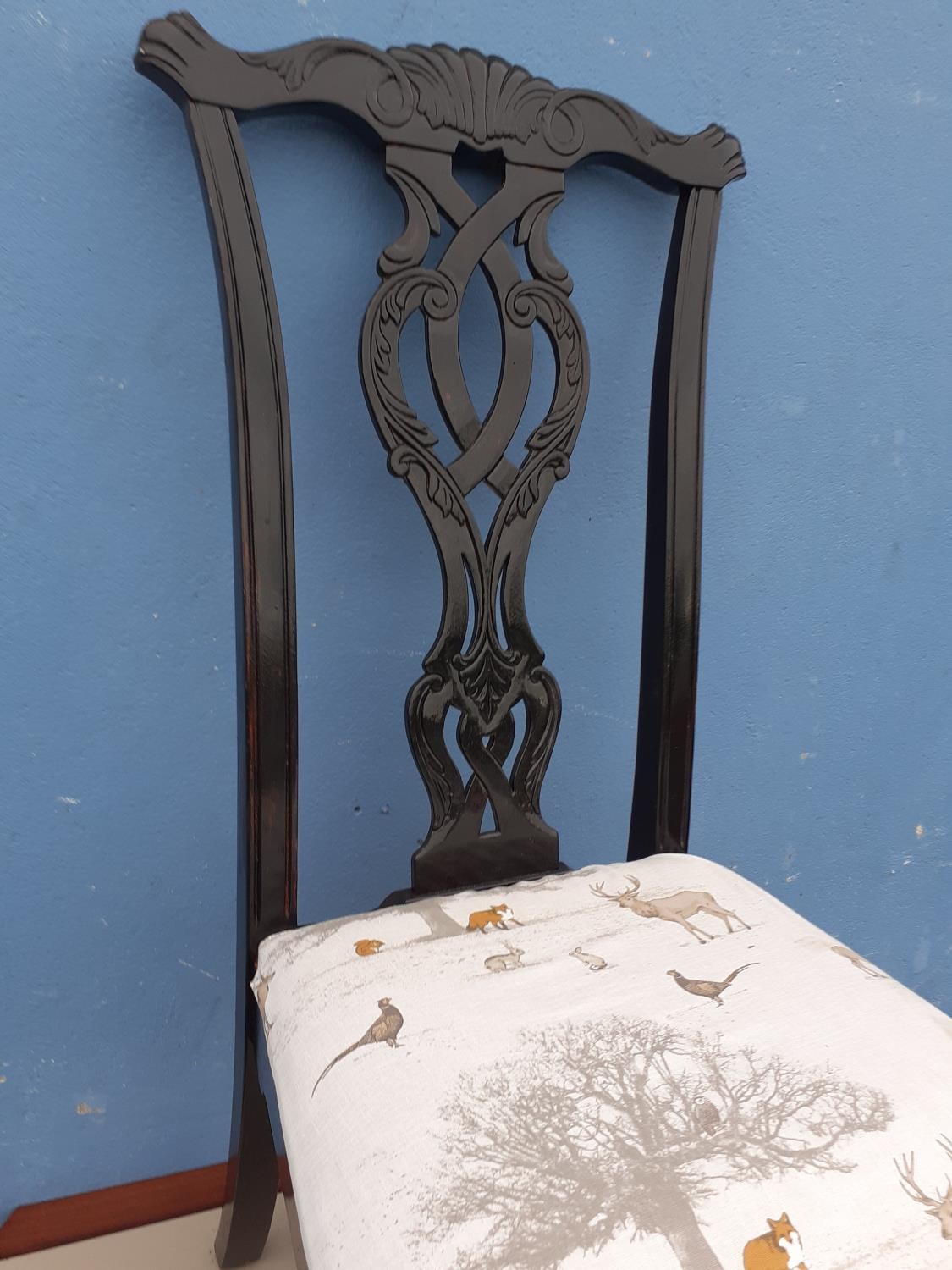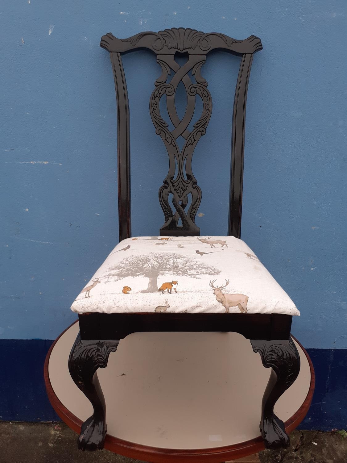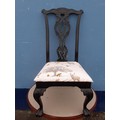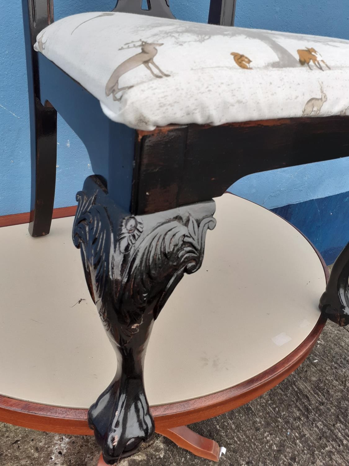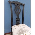 AN EBONISED CHIPPENDALE STYLE CHAIR ON BALL AND CLAW FOOT