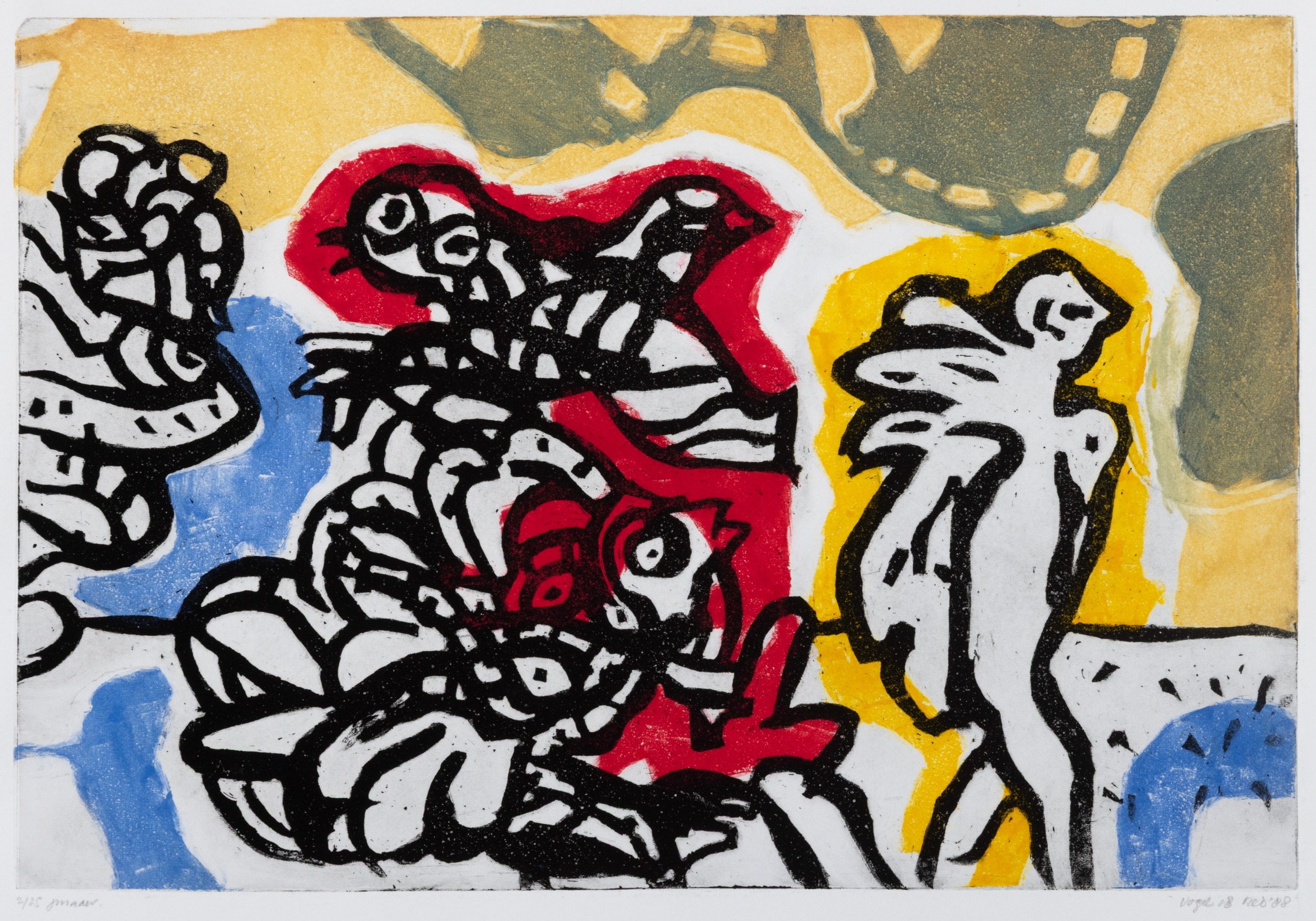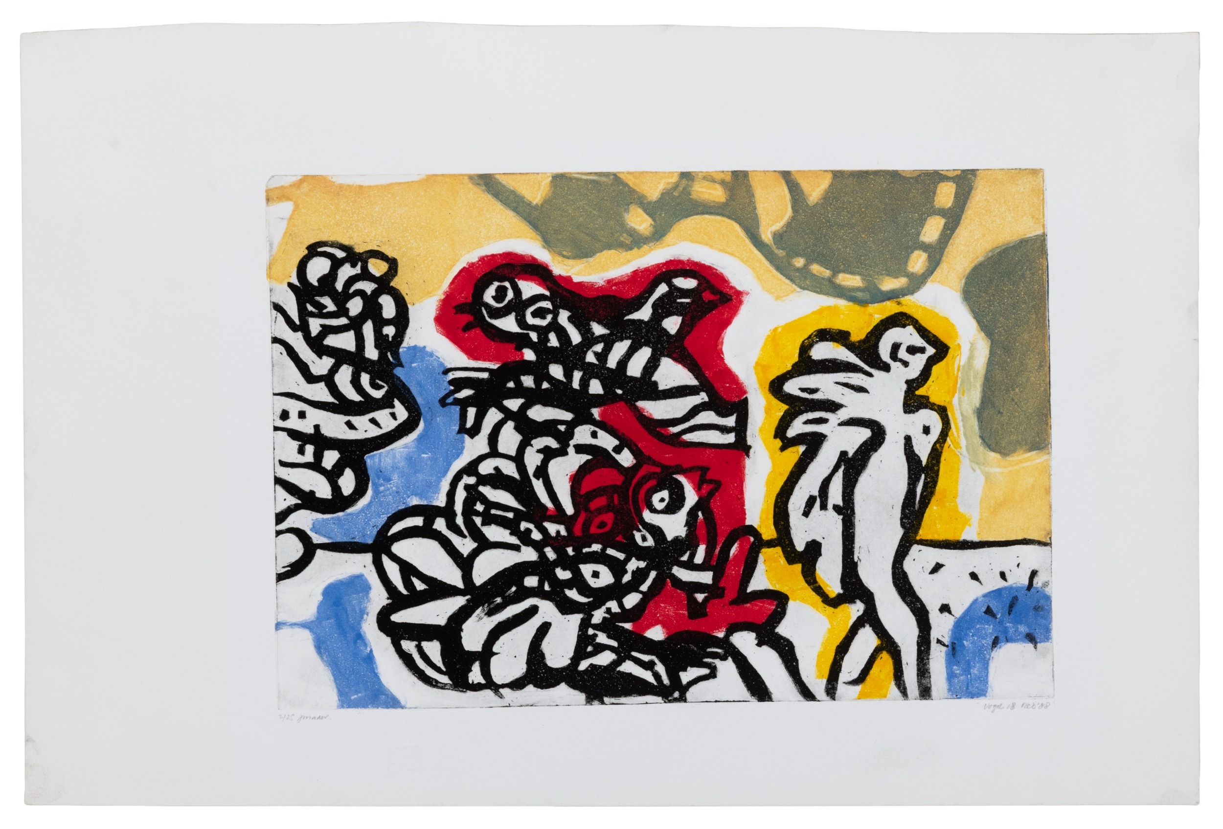 Vogil (20th Century) Figures Lithograph, 32.5 x 49.5cm Signed indistinctly, dated (19)’88 and numbered 2/25 Unframed