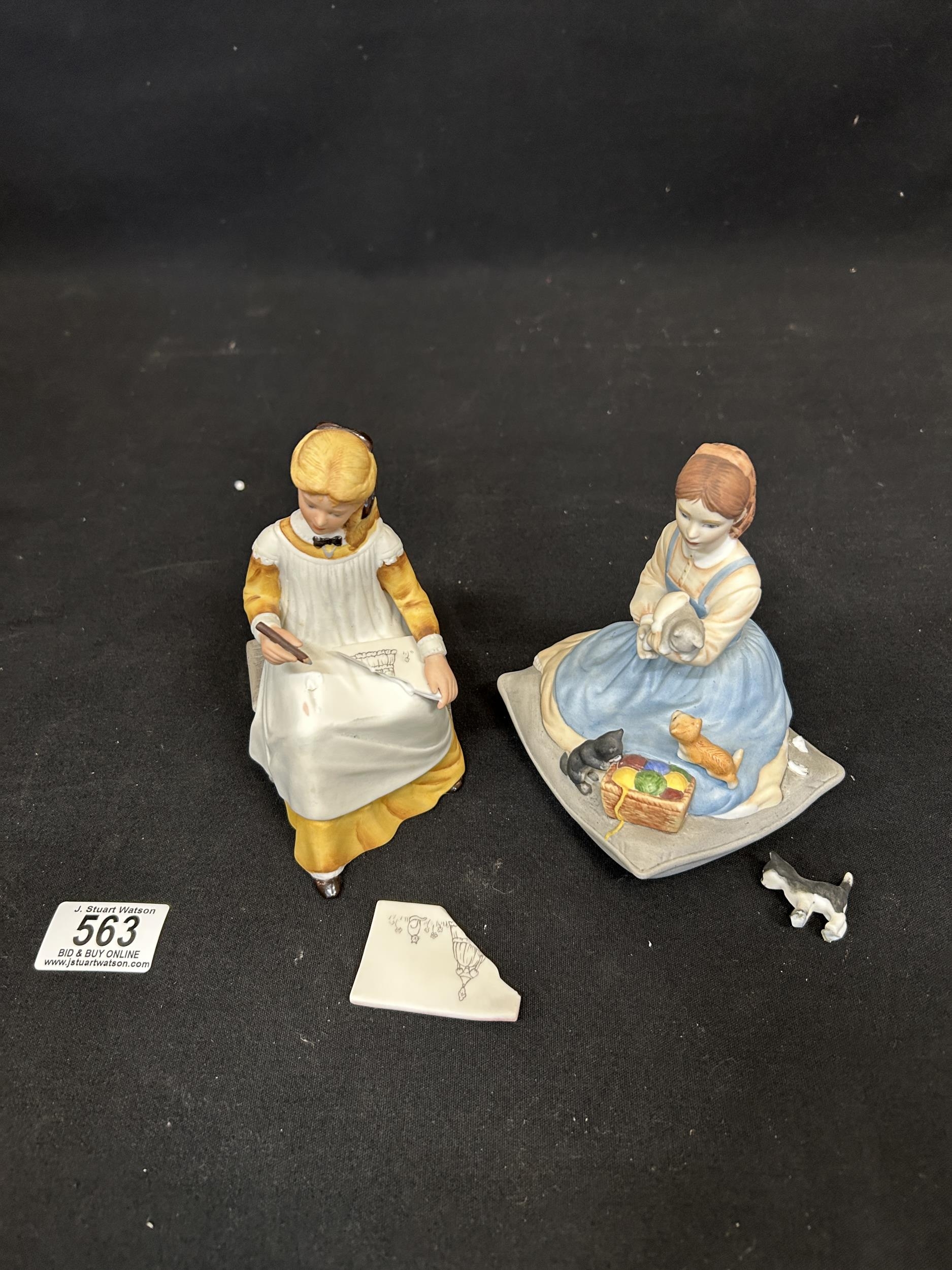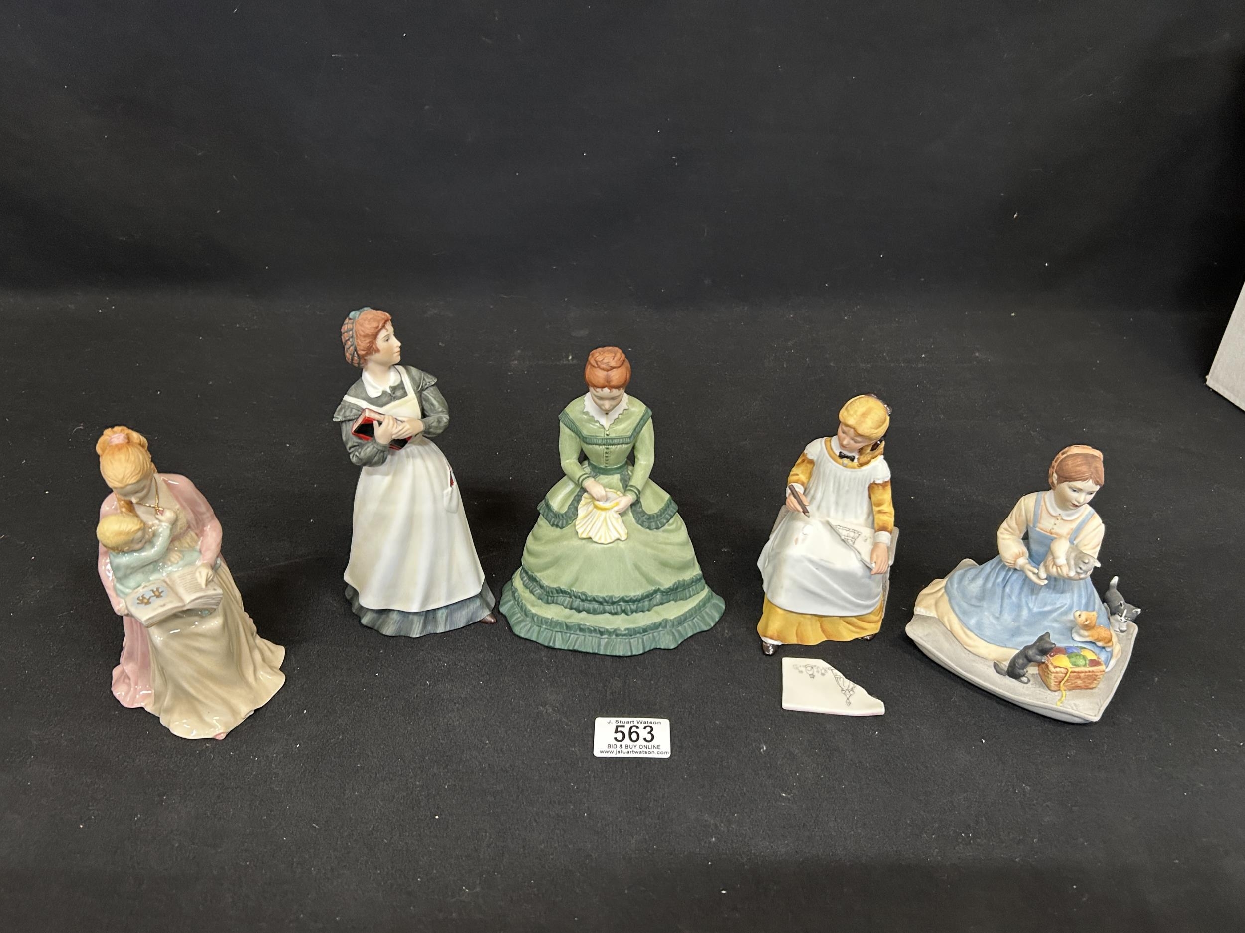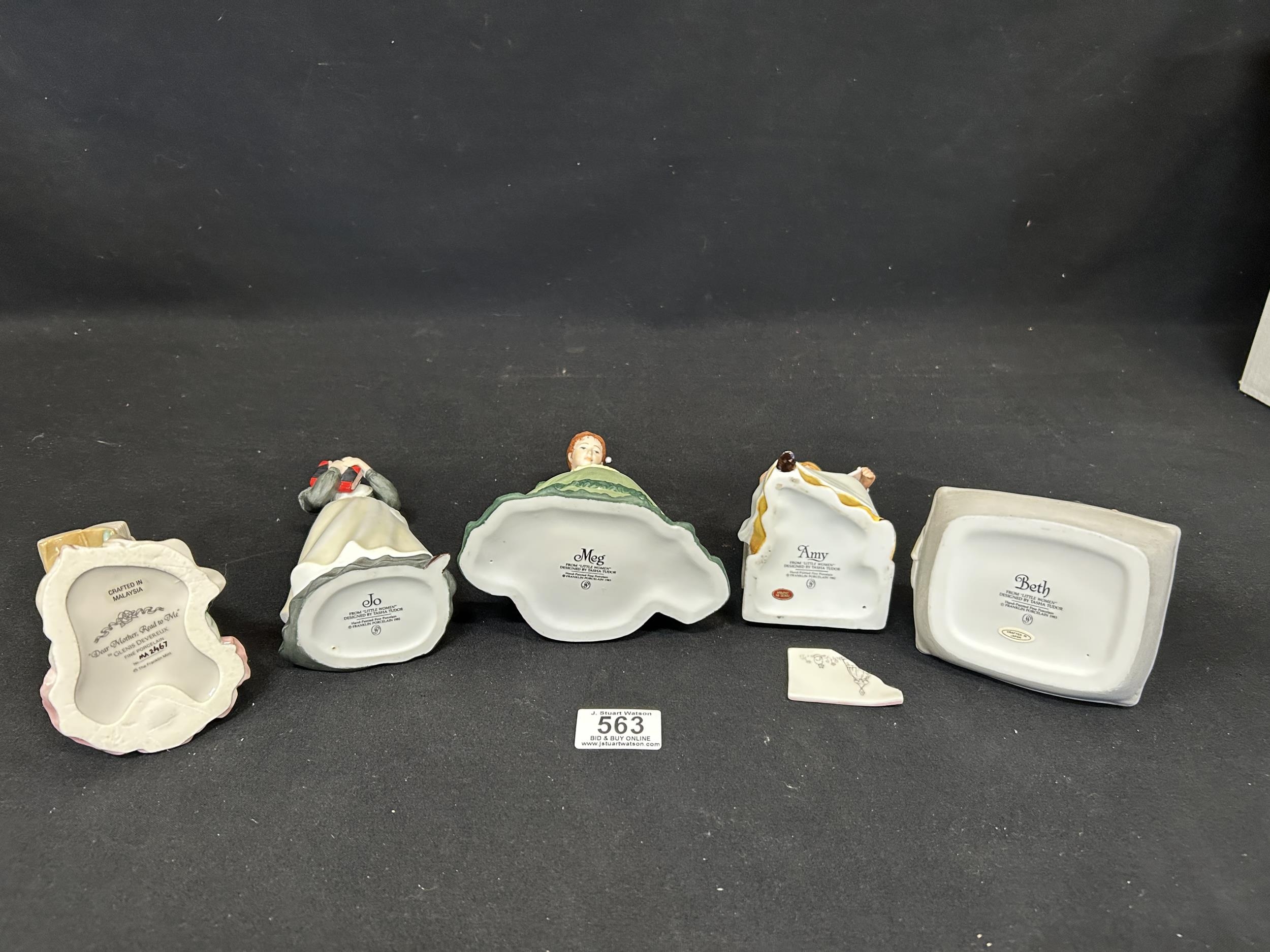 4 Franklin Mint Little Women Figures, 1 with Drawing Slate broken but piece present plus Franklin Mint Mother and child figure, height 16cms. (5)