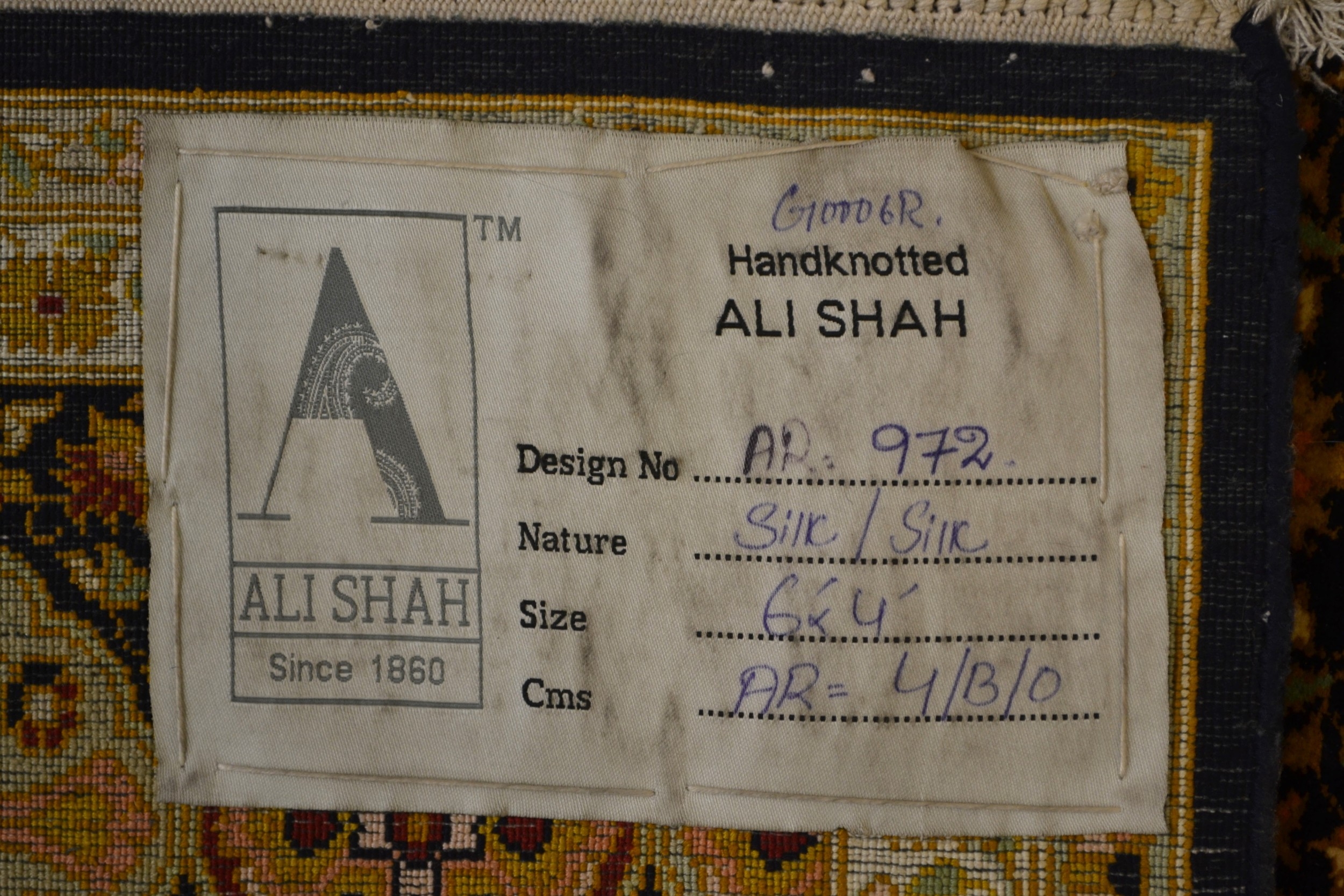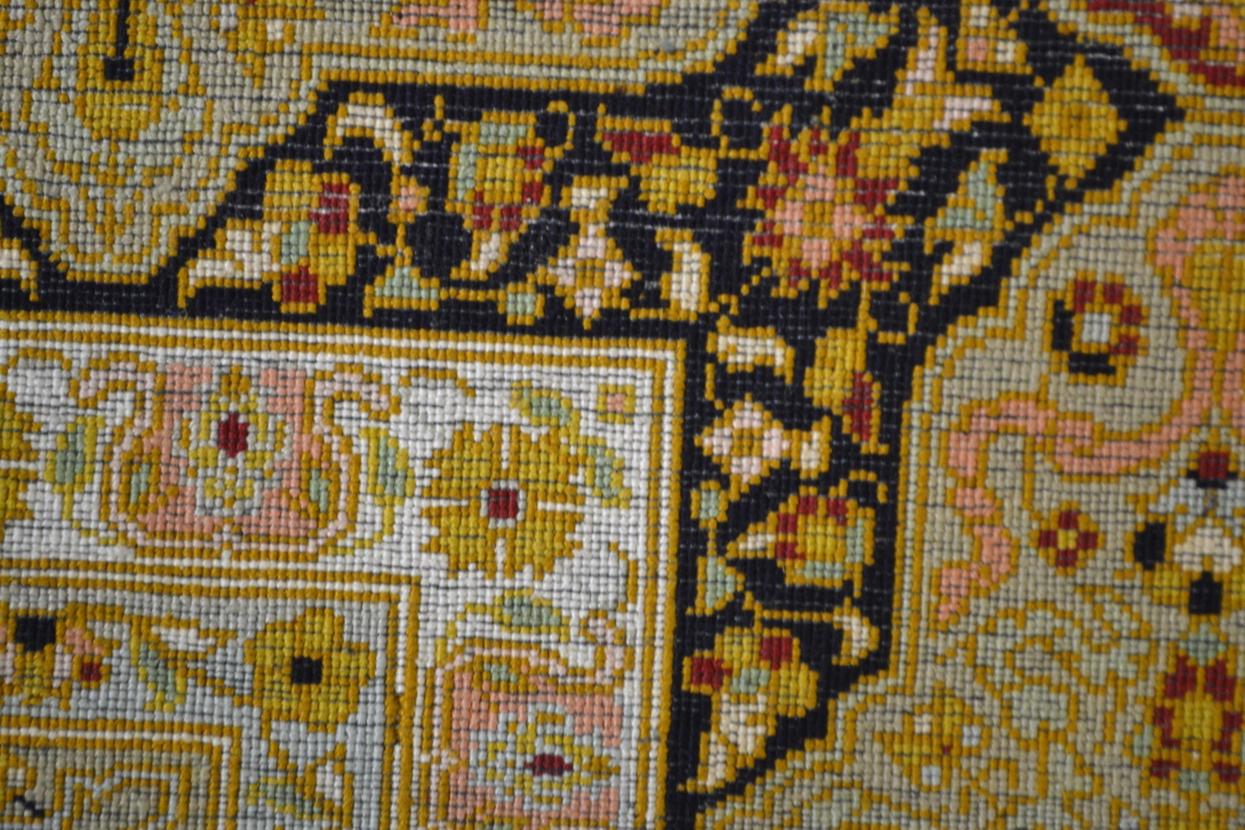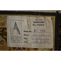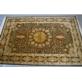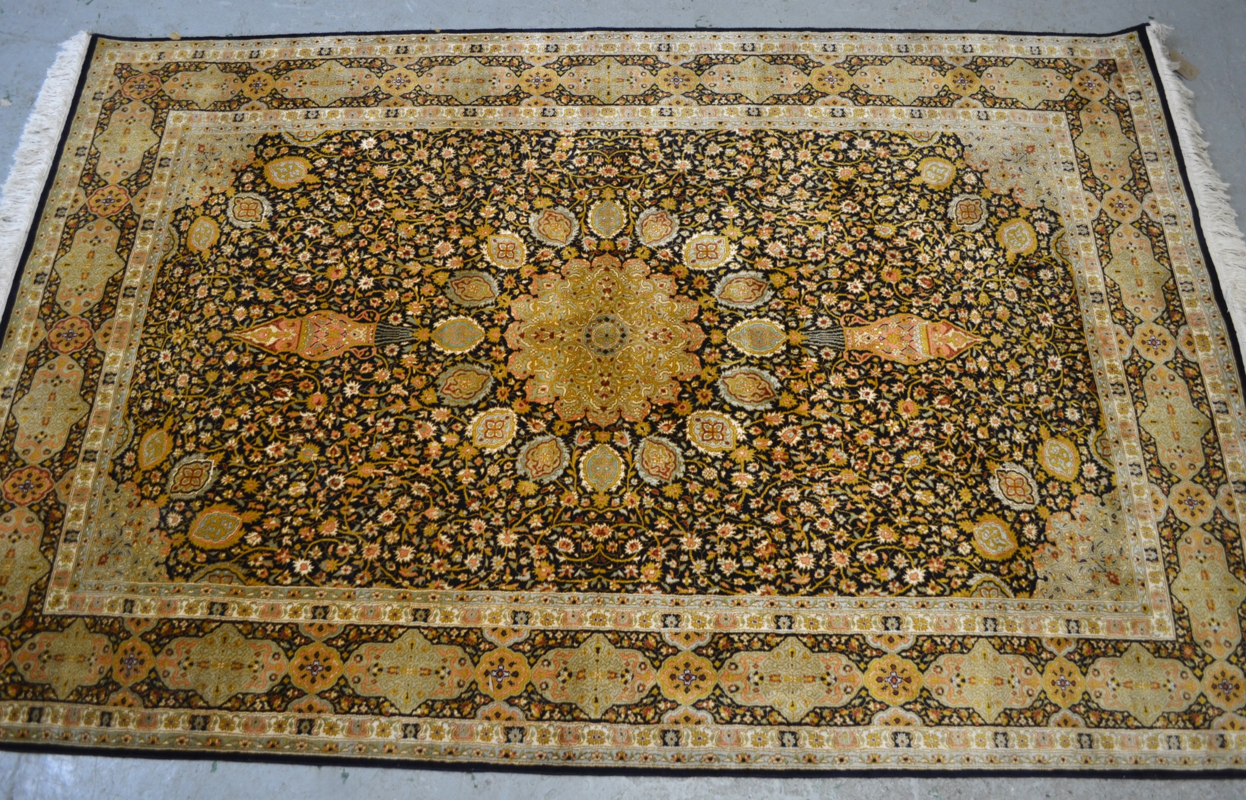 Fine quality modern Indo-Persian silk rug with a vase, medallion and all over stylised floral design on a dark ground with repeating cartouche boarder, 185 x 123cm approximately