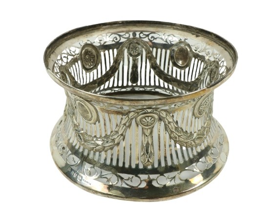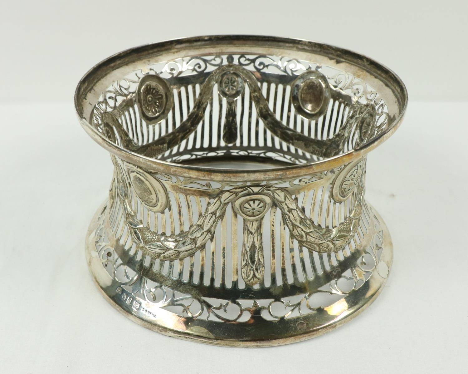 An attractive early 20th Century Irish silver Dish Ring, decorated in the Adams taste with pierced design, with drapes etc., hall marked 'Sharmen D. Neill, Belfast, c. 1911,' approx. 7 1/2" ounces (no lines). (1)