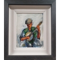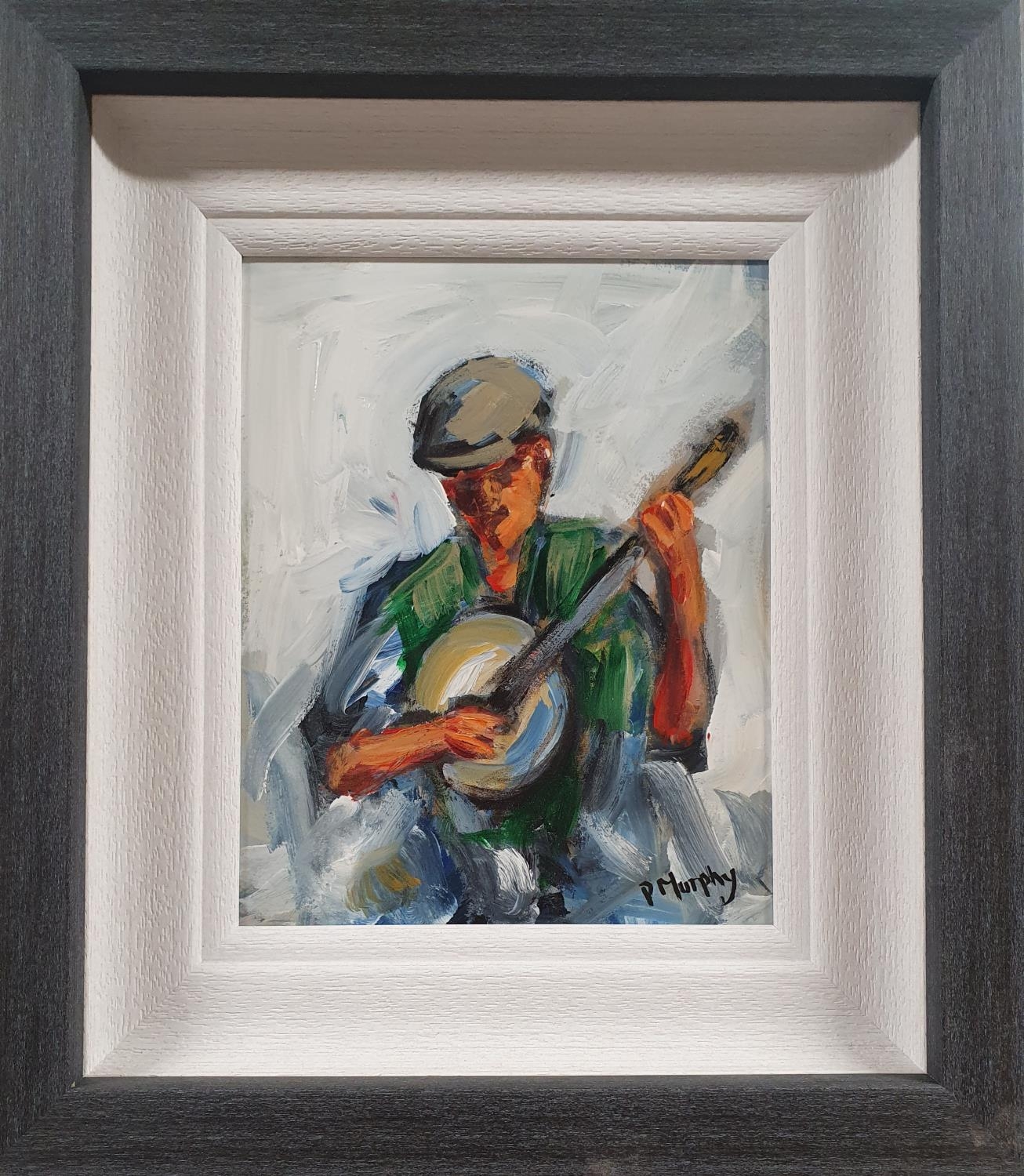 Patrick Murphy. Irish 20th Century. Oil on Board 'Solo Banjo'. Framed size 40 x 35 cms approx.