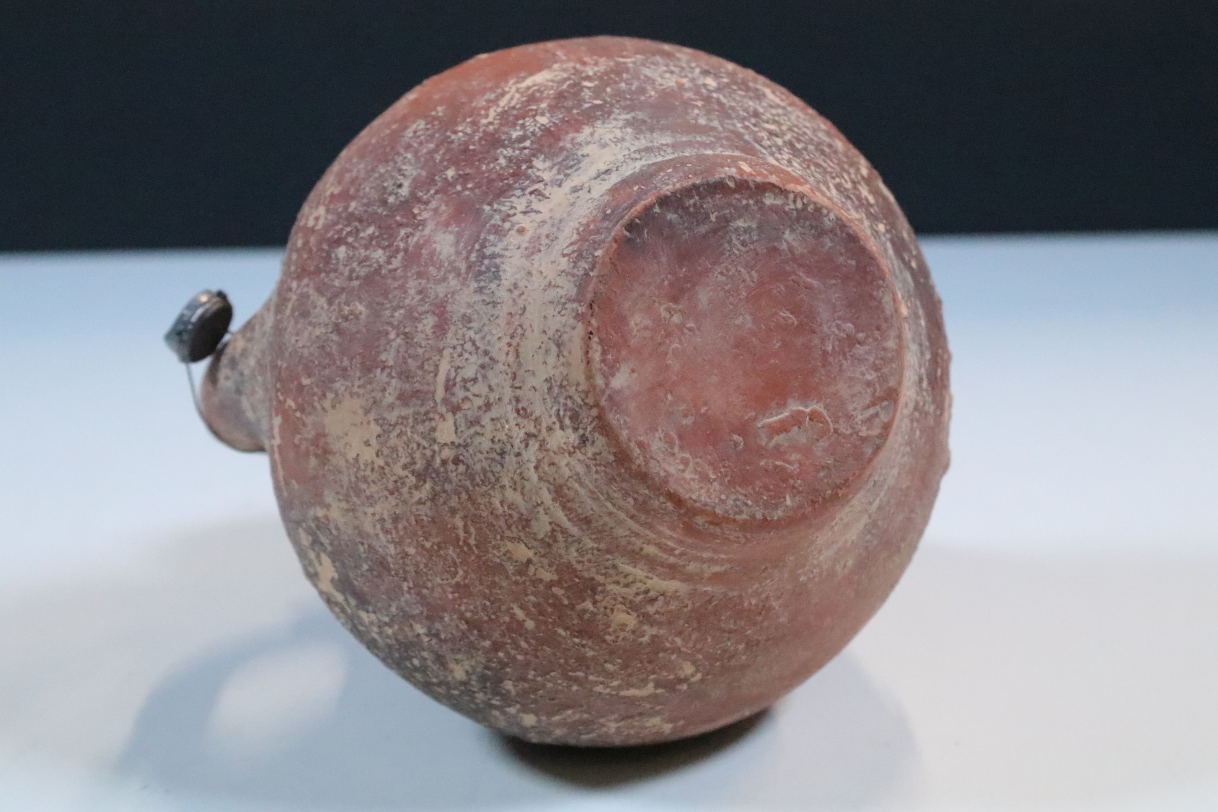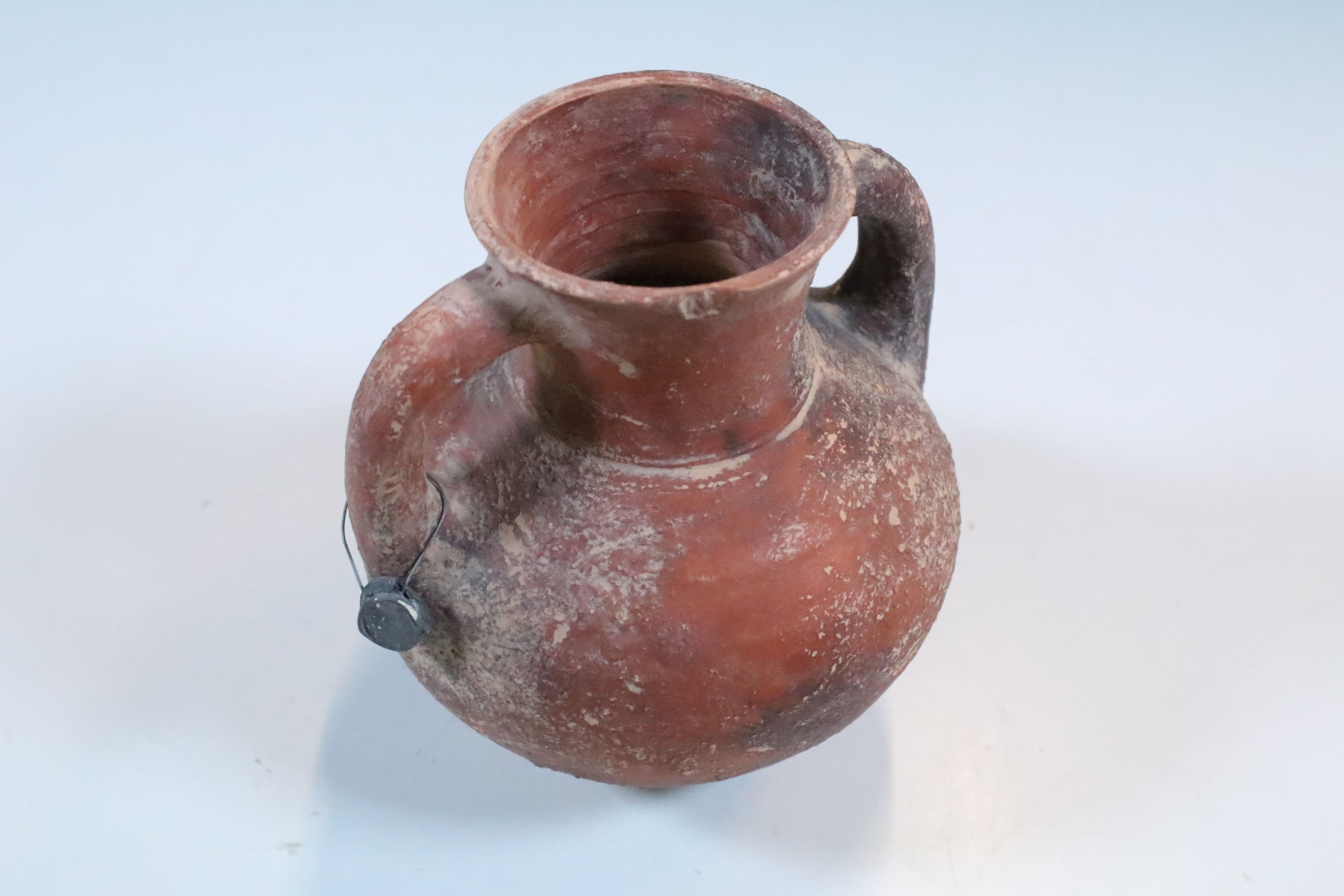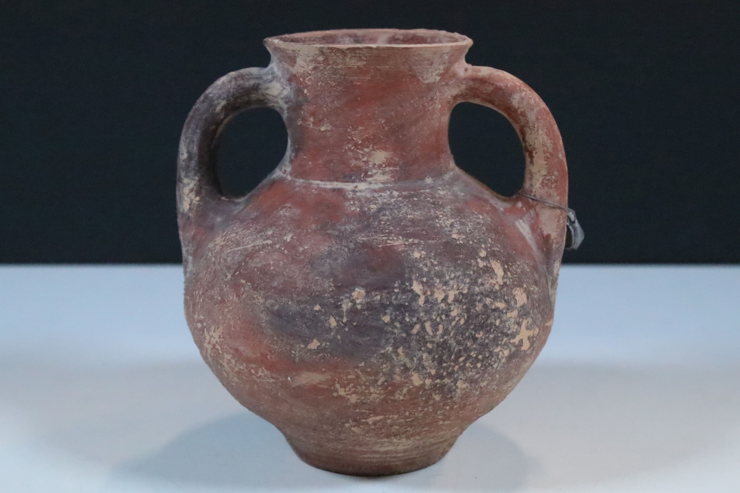 Two handled terracotta vessel vase globular body and cylindrical neck, H 13.5cm