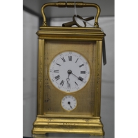 A brass carriage clock.