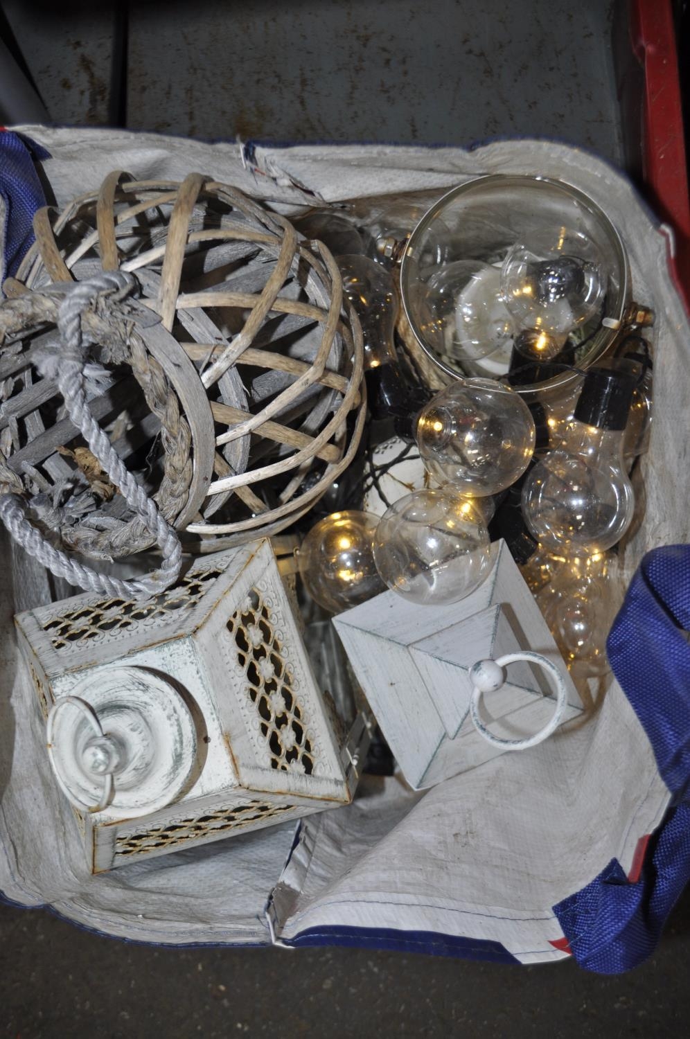 BAG CONTAINING WORKING SOLAR POWERED STRING LIGHTS, CANDLE LANTERNS AND OTHER GARDEN DECORATIONS