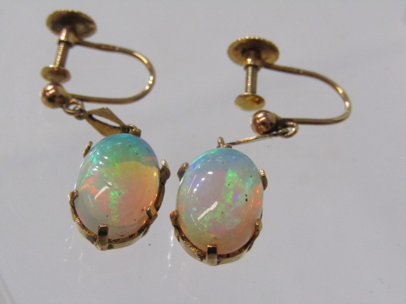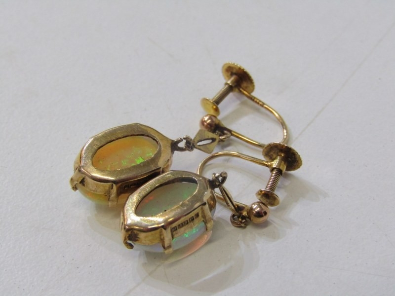 IMPRESSIVE OPAL EARRINGS, a pair of 9ct yellow gold screw back earrings set with opals, the cabochon opals with a 7mm spread (20)