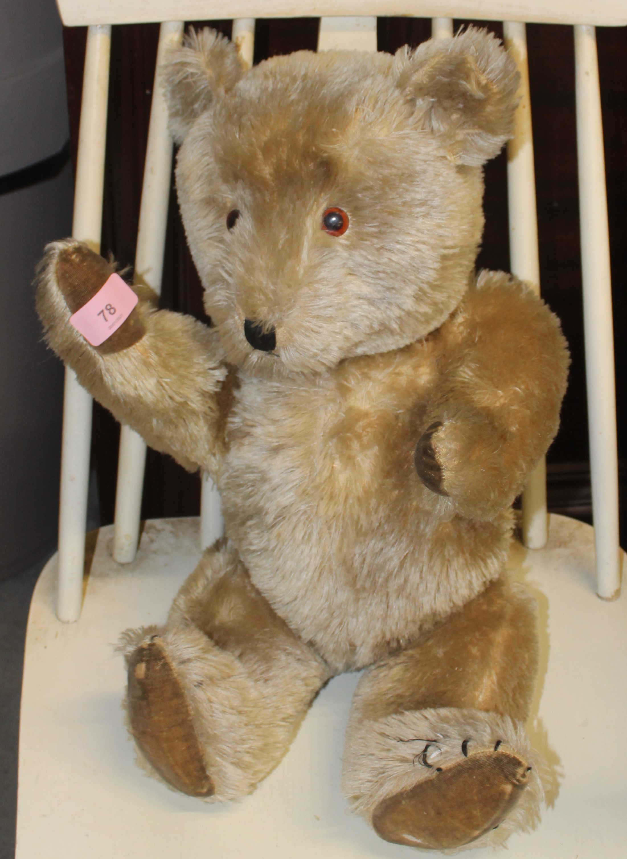 A Jointed (Mohair) Teddy with Plastic Eyes (has repair to back of neck)