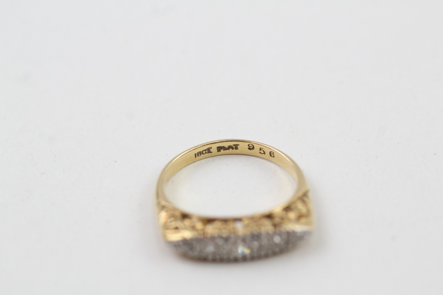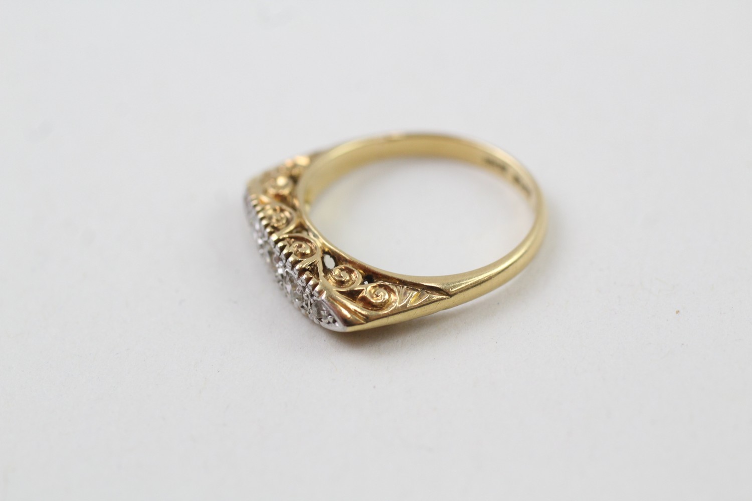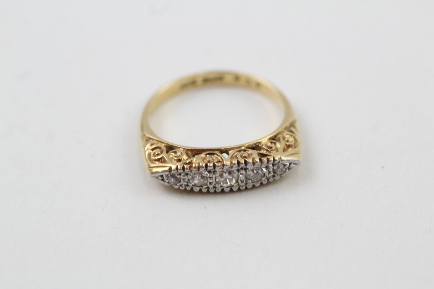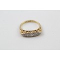 AN 18CT GOLD VINTAGE SINGLE CUT DIAMOND SET FIVE STONE ETERNITY RING,