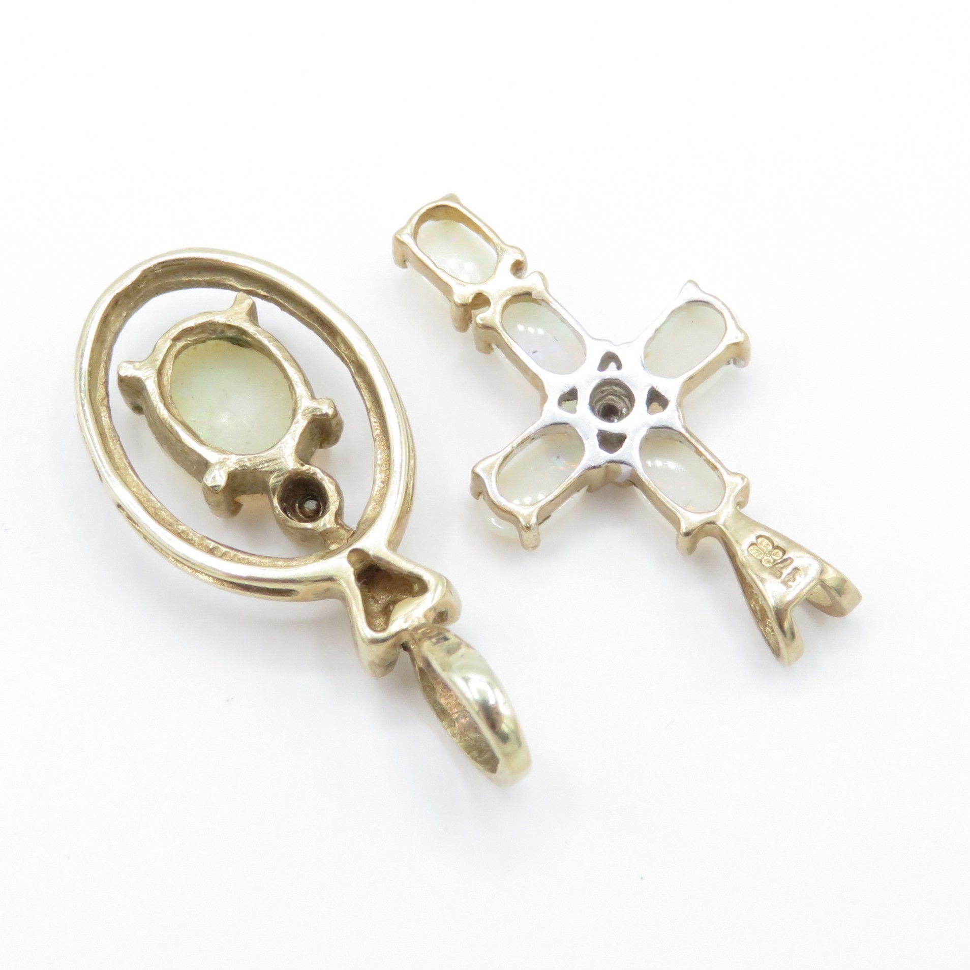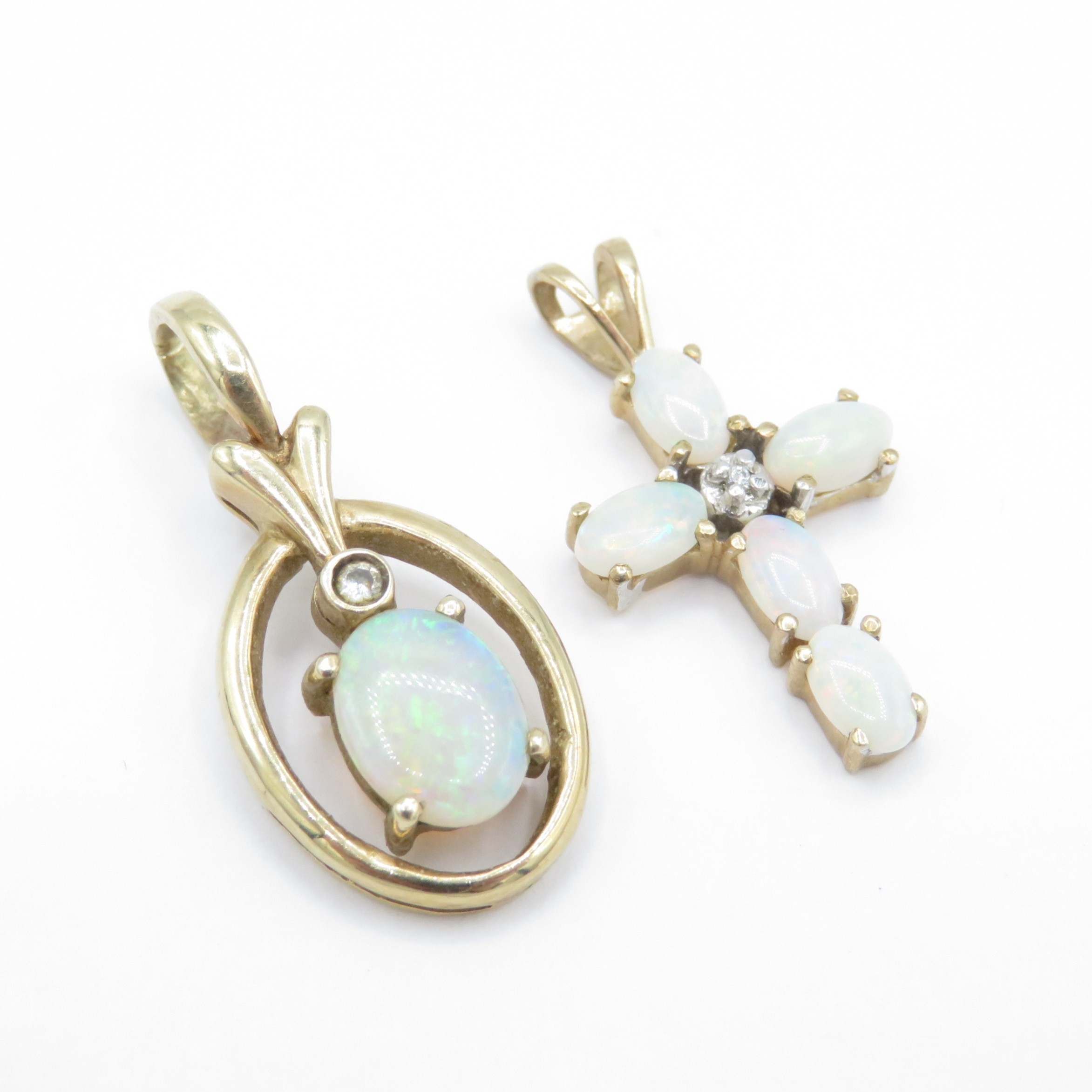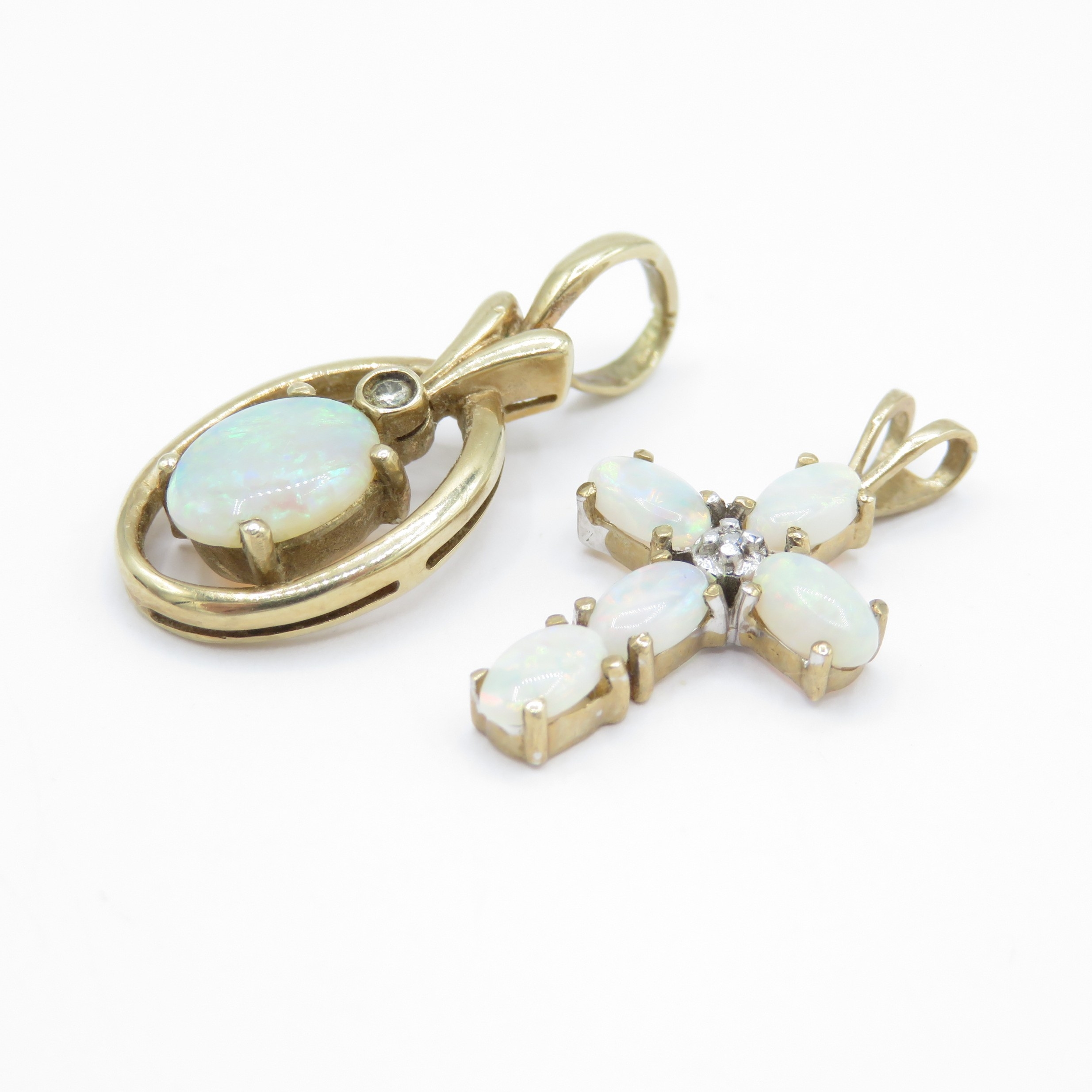 2 x 9ct Gold Opal and Diamond Pendants (2.8g)