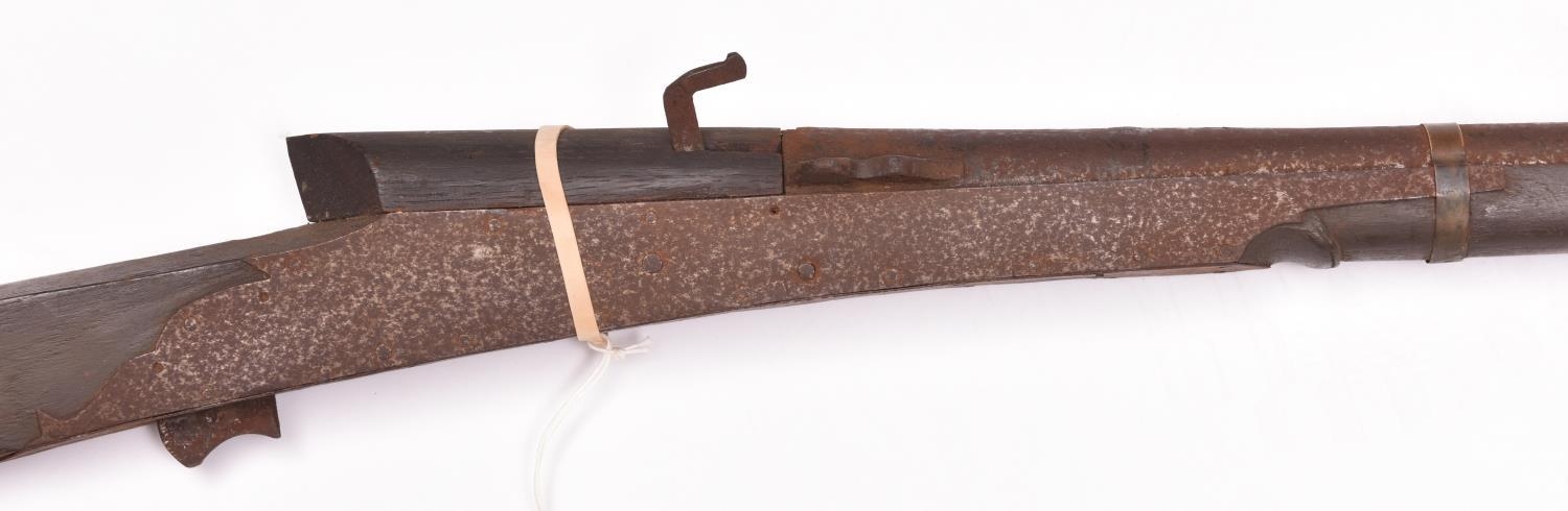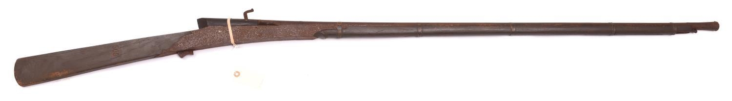 An Indian matchlock jezail, 65" overall, barrel 44½”, wood stock marked “500”, brass bands, GWO&C (steel parts lightly rusted) £50-60