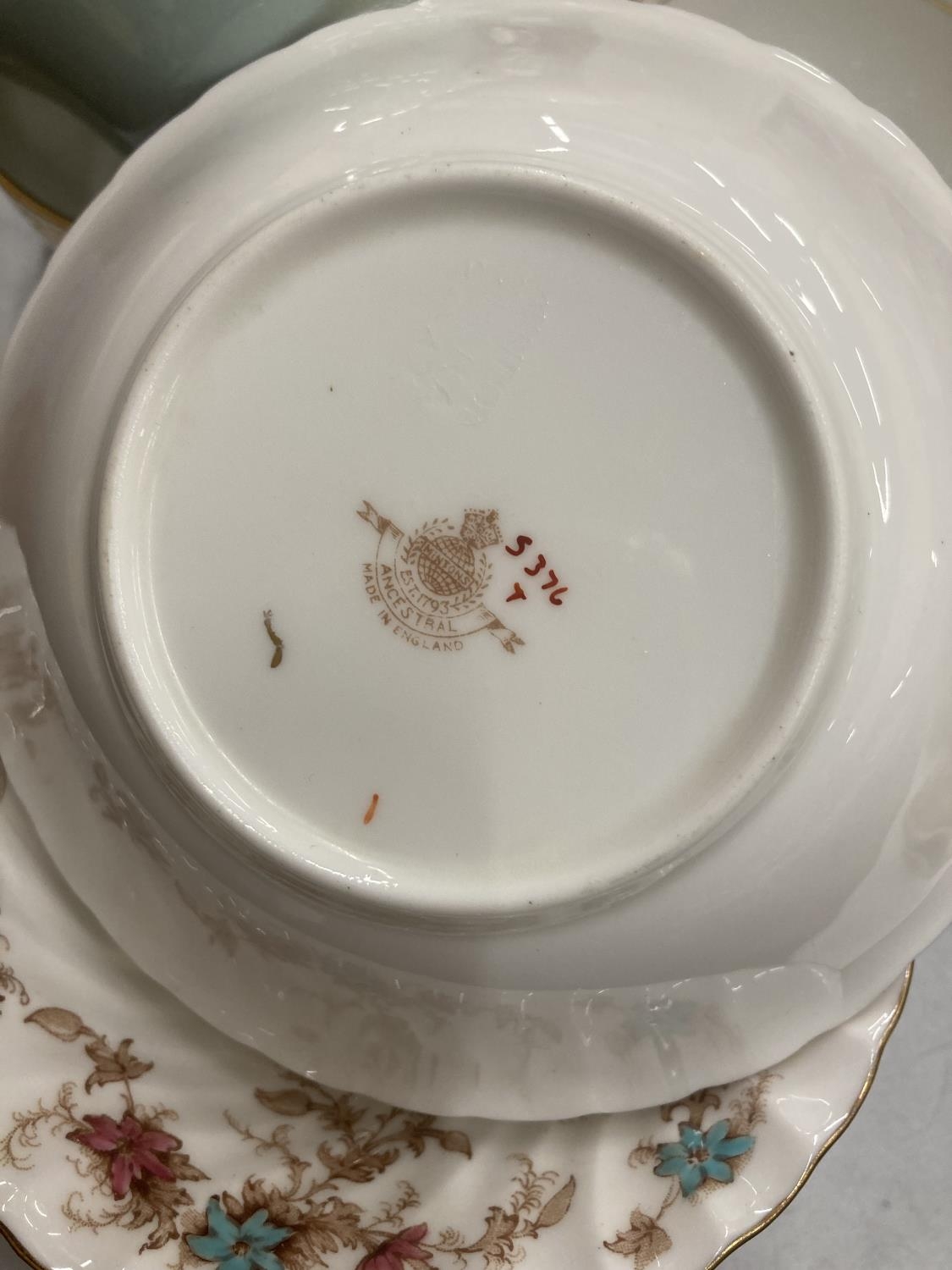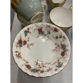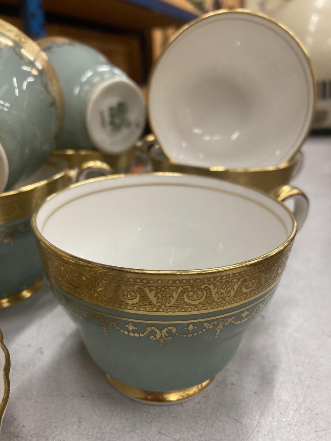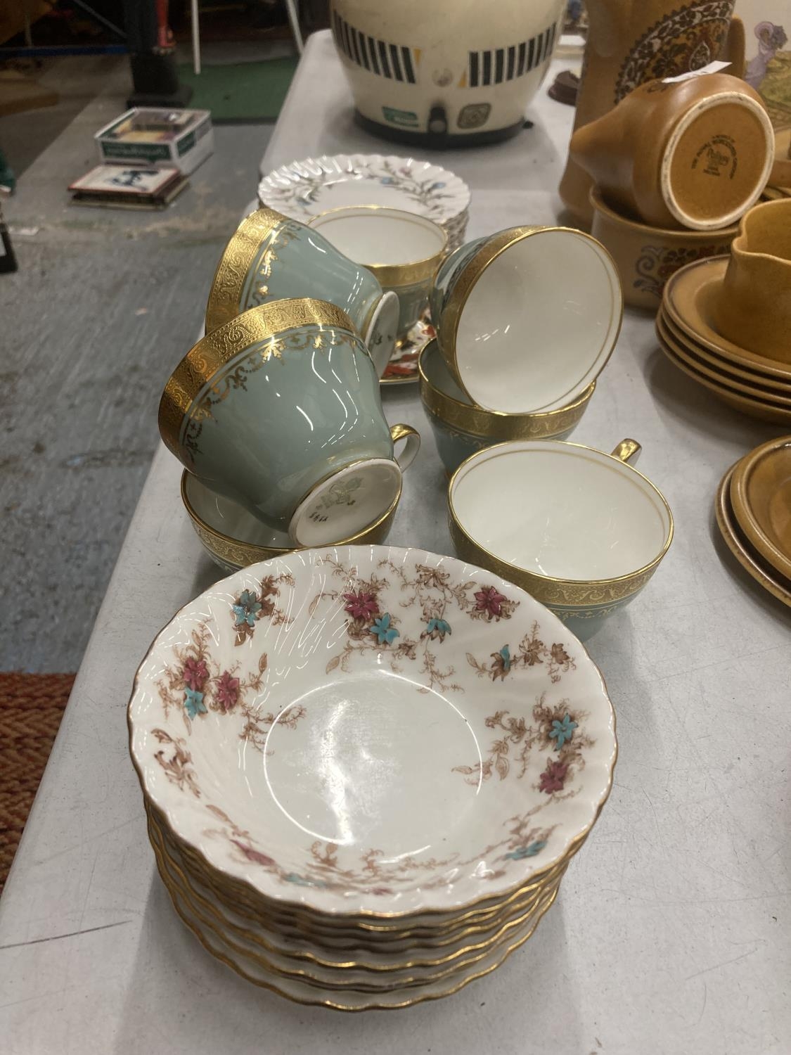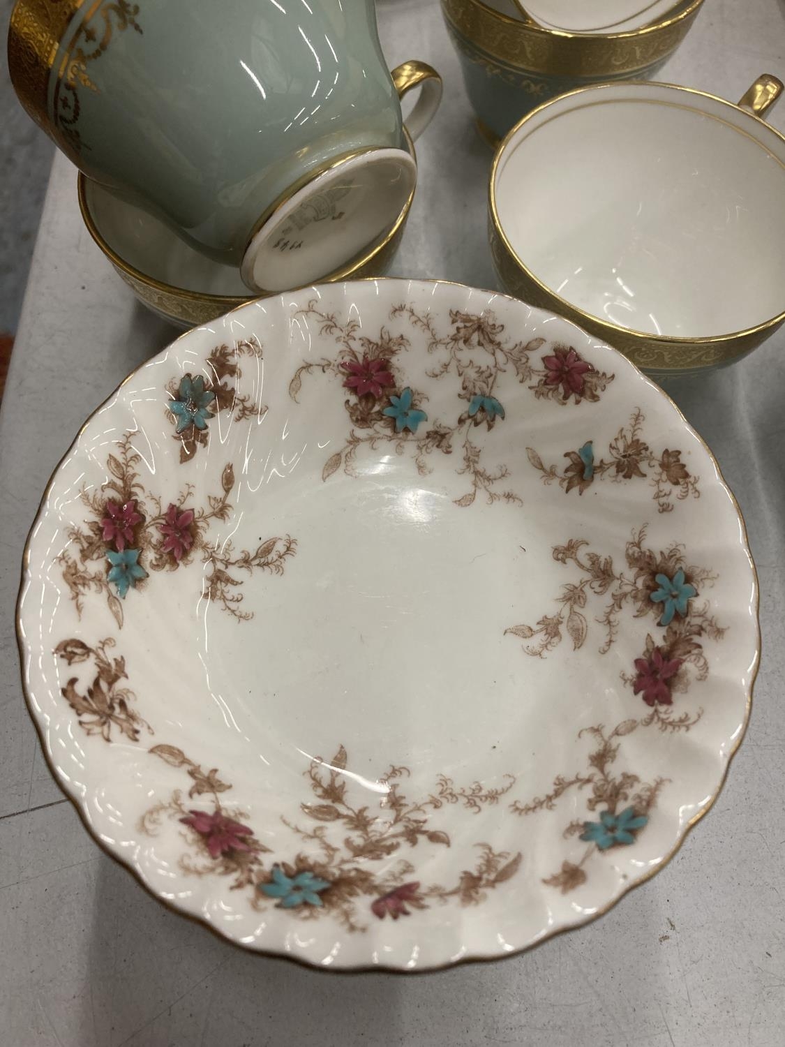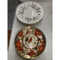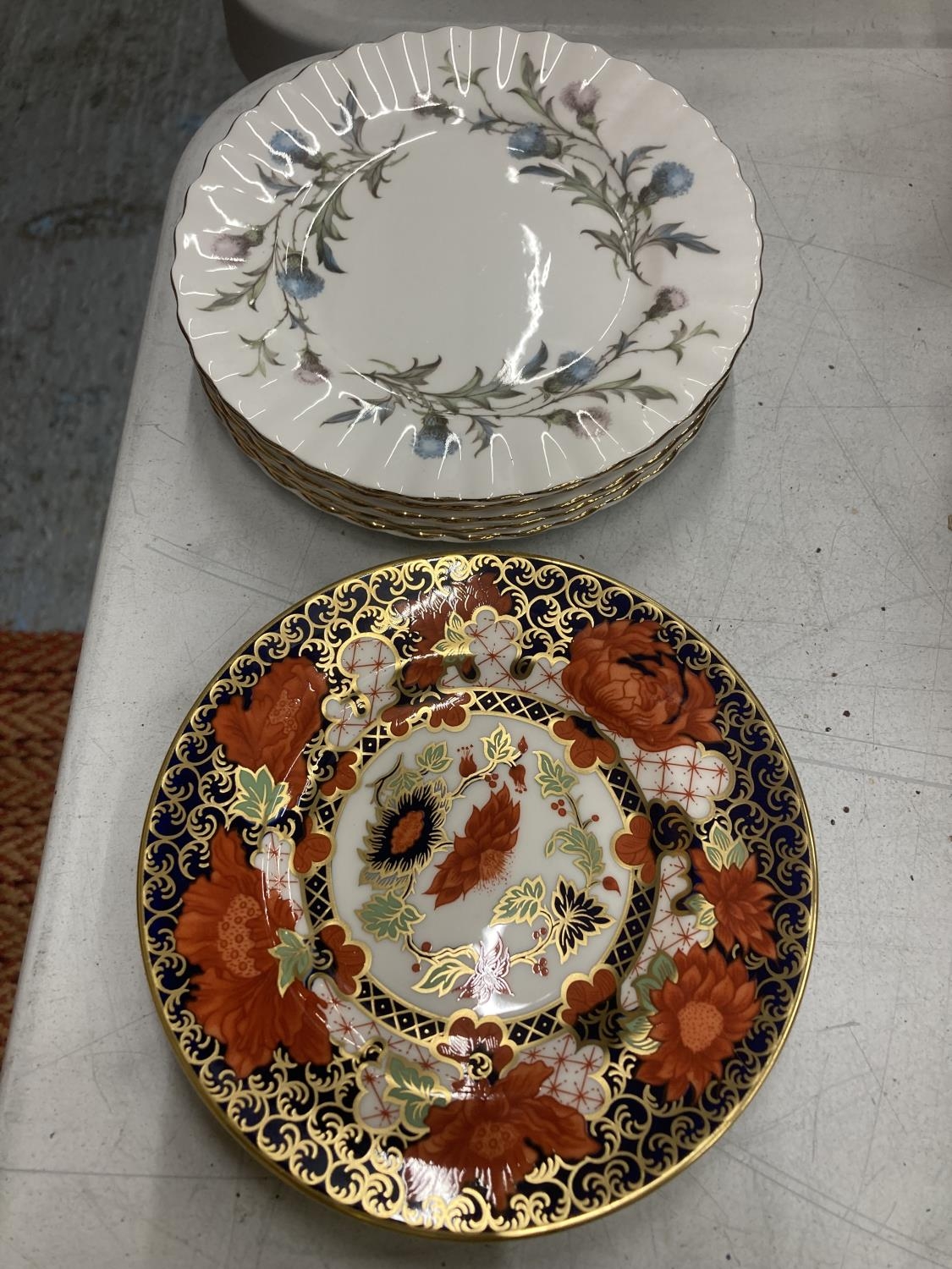 A QUANTITY OF AYNSLEY CUPS PLUS A ROYAL CROWN DERBY 'PEONY' PLATE, ROYAL ALBERT 'BRIGADOON' PLATES, ETC