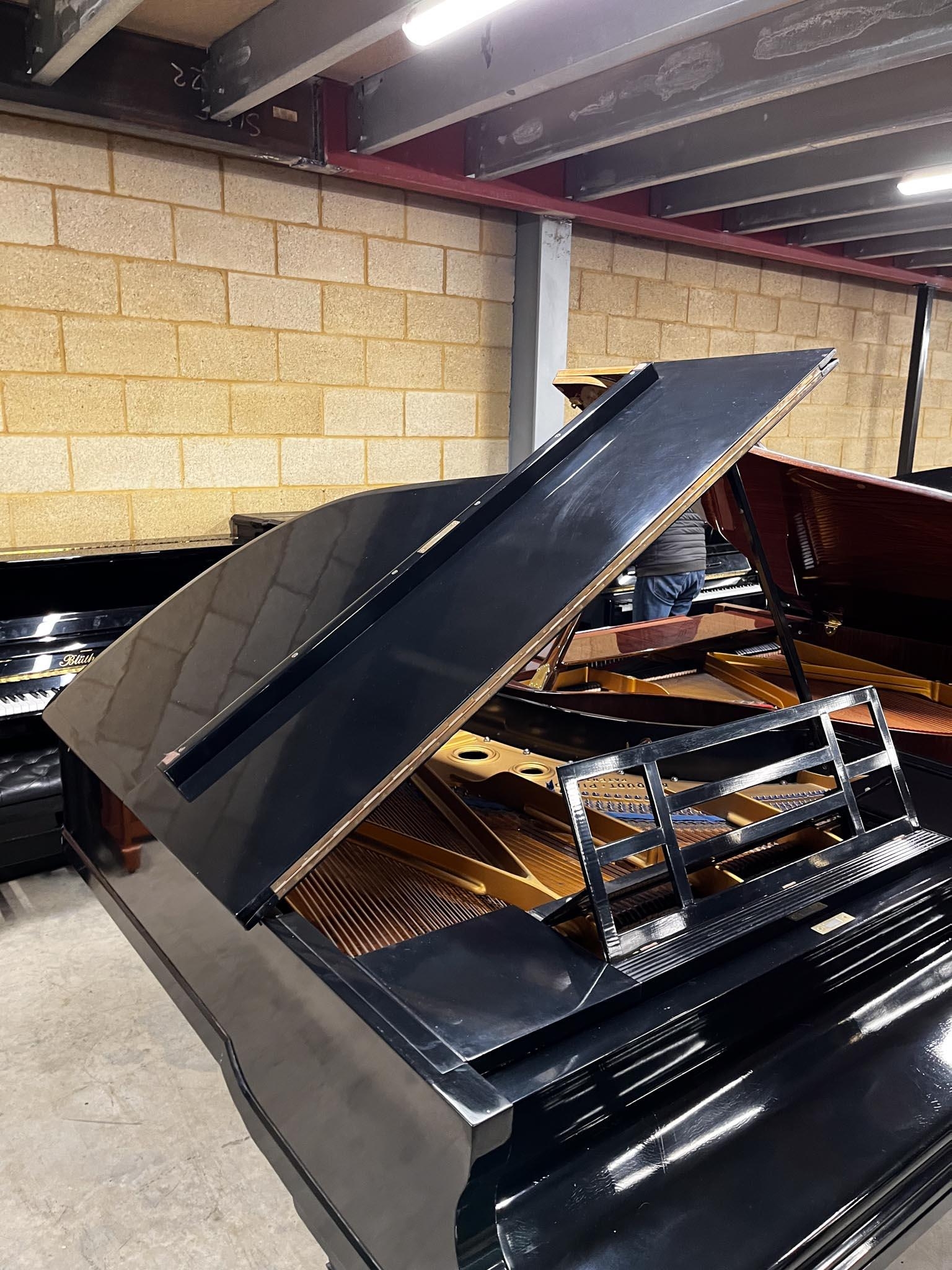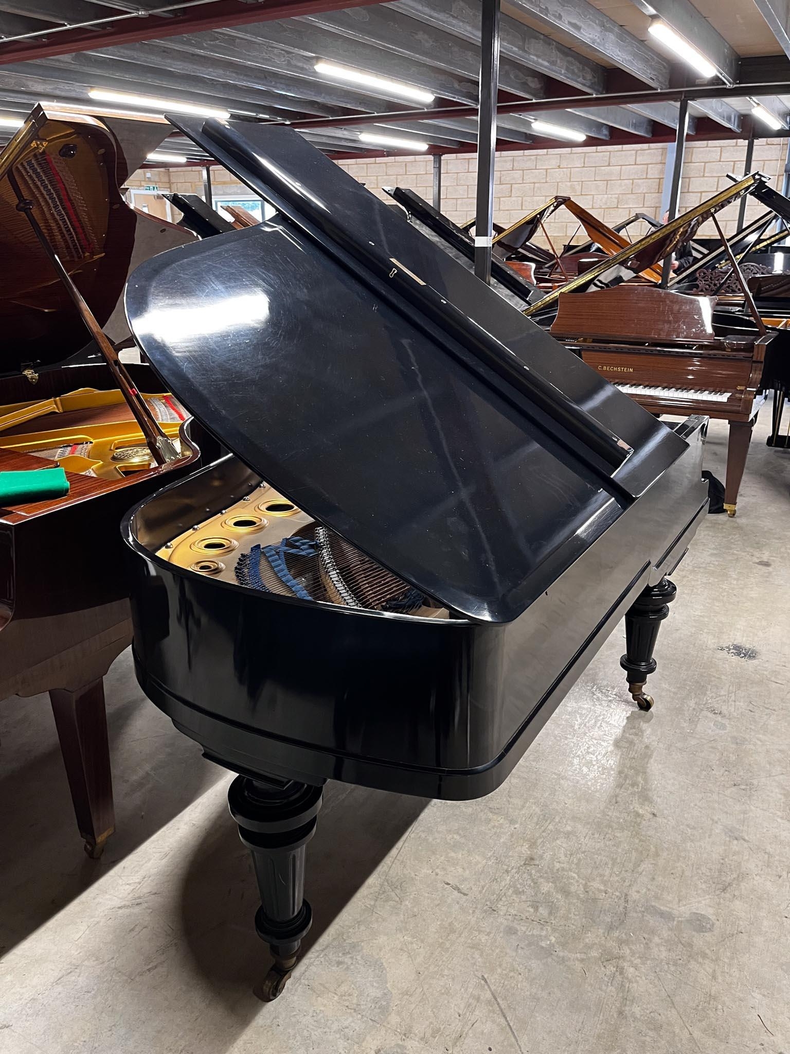 A 6ft 3in grand piano in an ebonised case on turned fluted legs. IRN: 289FFRPV