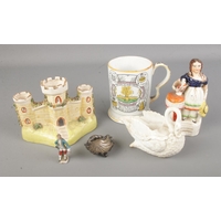 A collection of larger Goss crested ware pieces including tr...