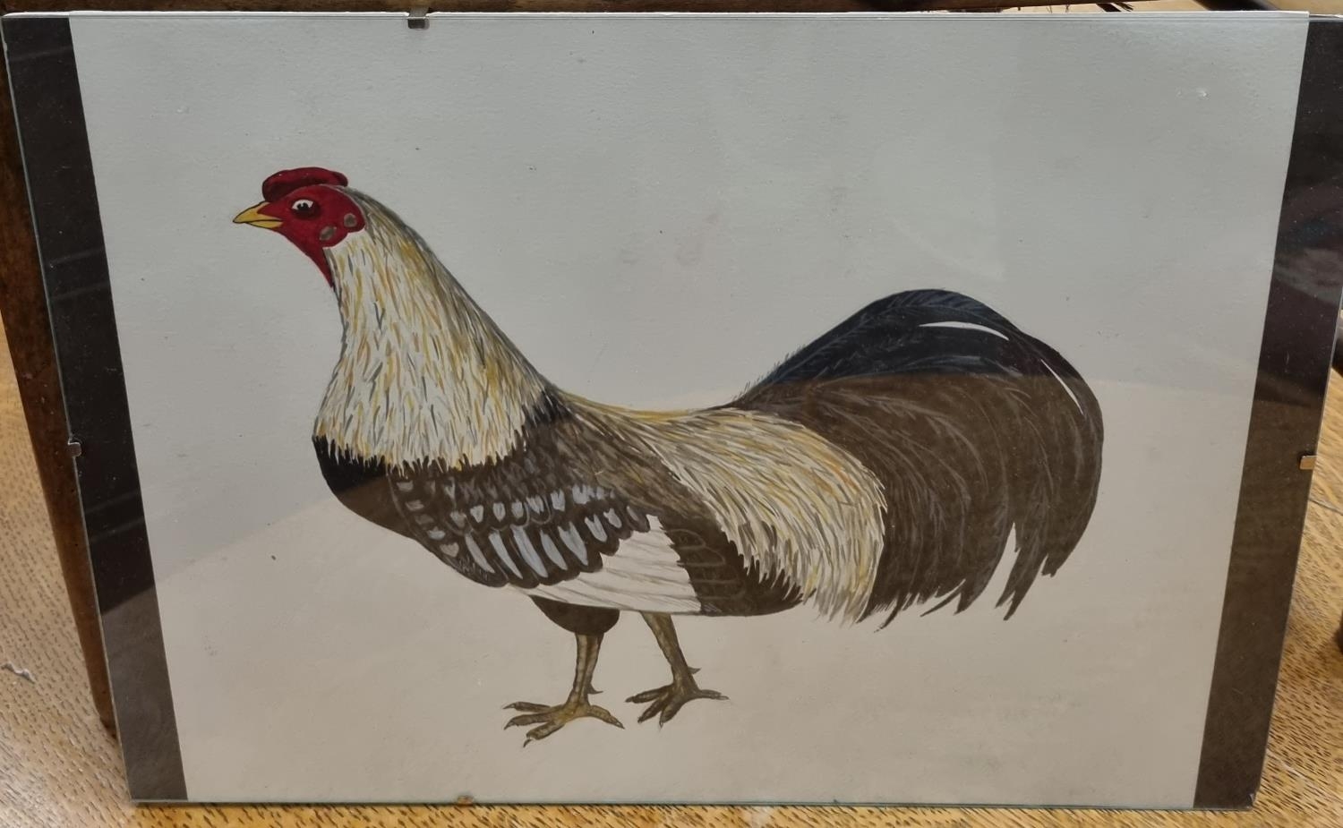 A late 19th early 20th Century Watercolour of a Cockerel, probably Continental along with two other pictures.